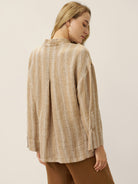 100% heavyweight European linen (180g/m²), creating a perfect tailored silhouette. Crafted using the yarn-dyeing technique, multiple colors of dyed yarns are woven into a specific pattern, resulting in a distinctive yarn-dyed linen fabric. The finished garment boasts a unique texture and feel, setting it apart from ordinary printed fabrics. Durable, breathable, and full of character.
