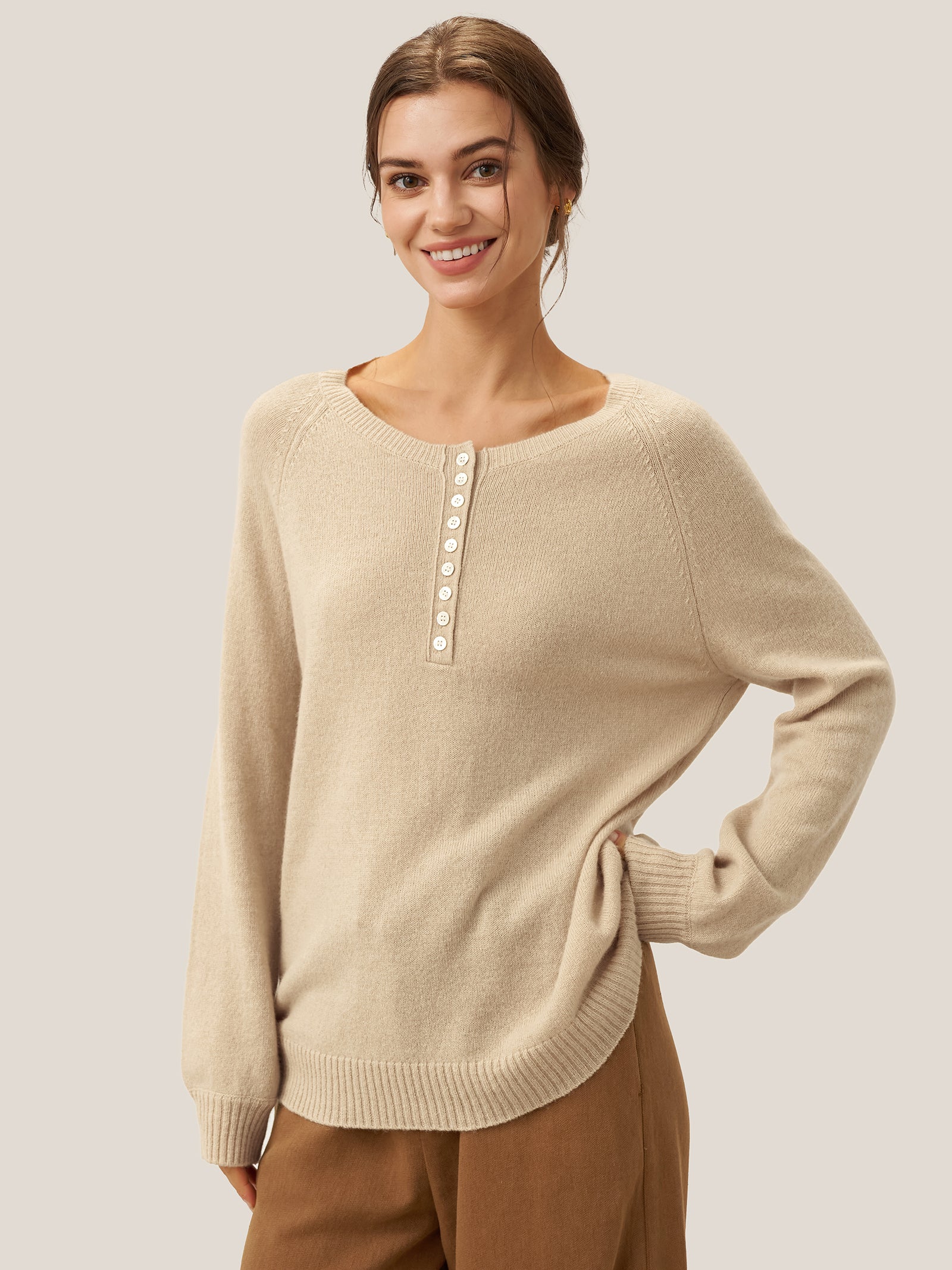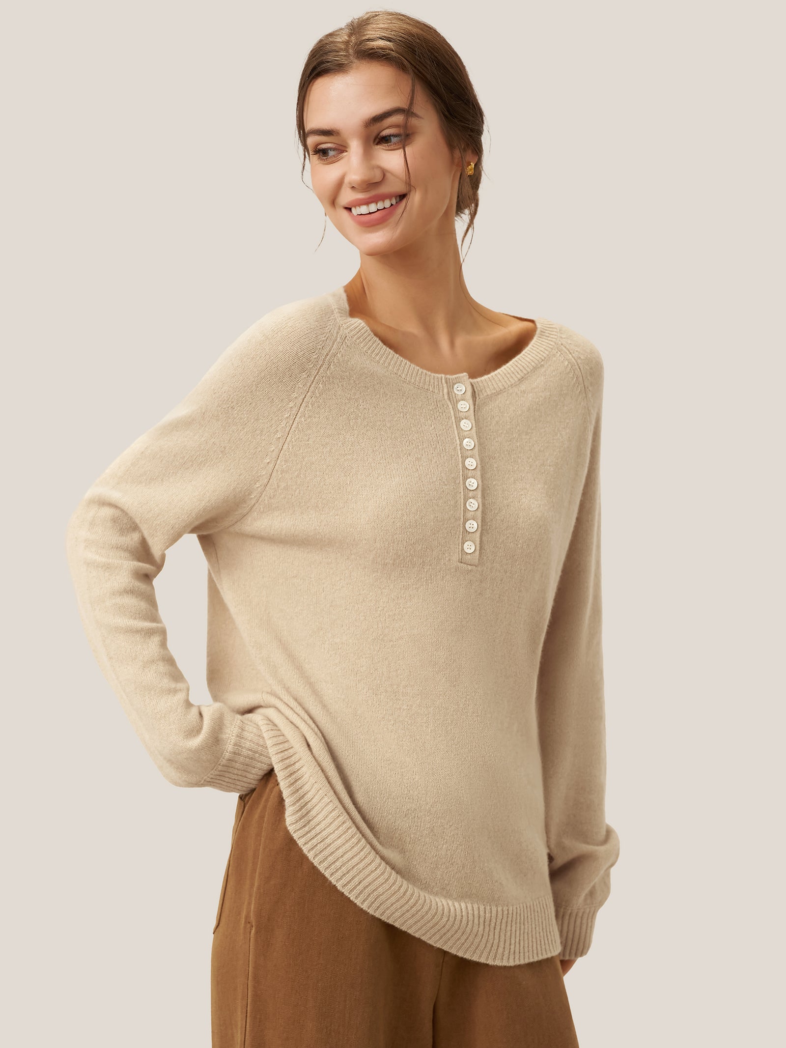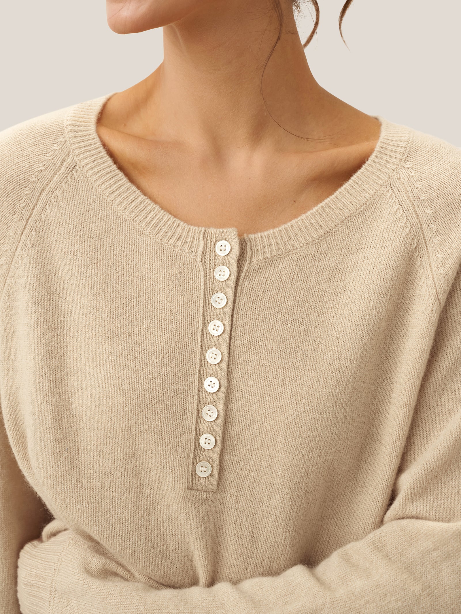100% Mongolia Cashmere Lightweight Henley Sweater ANNELISE