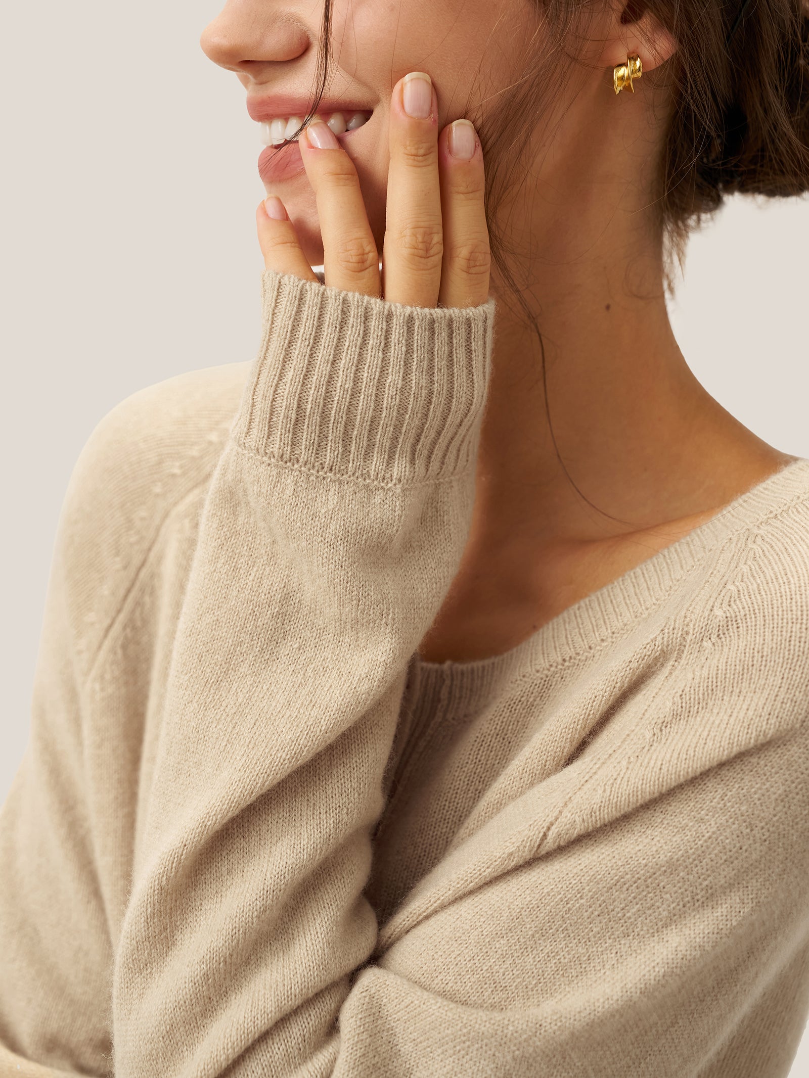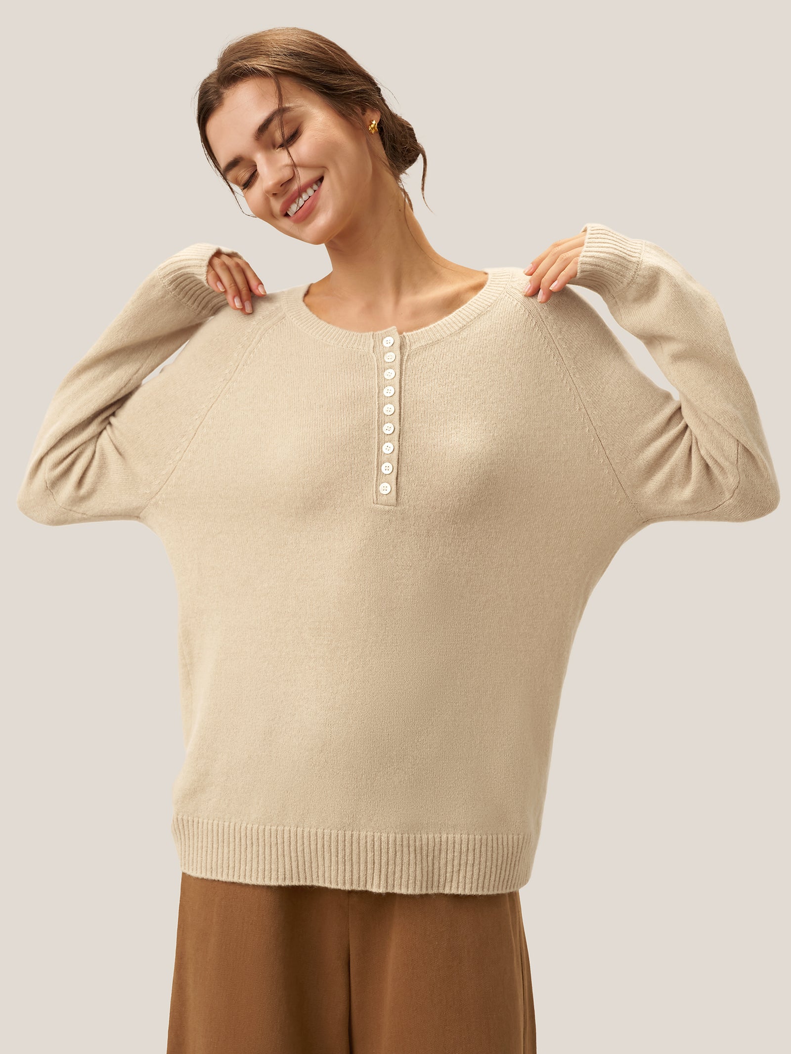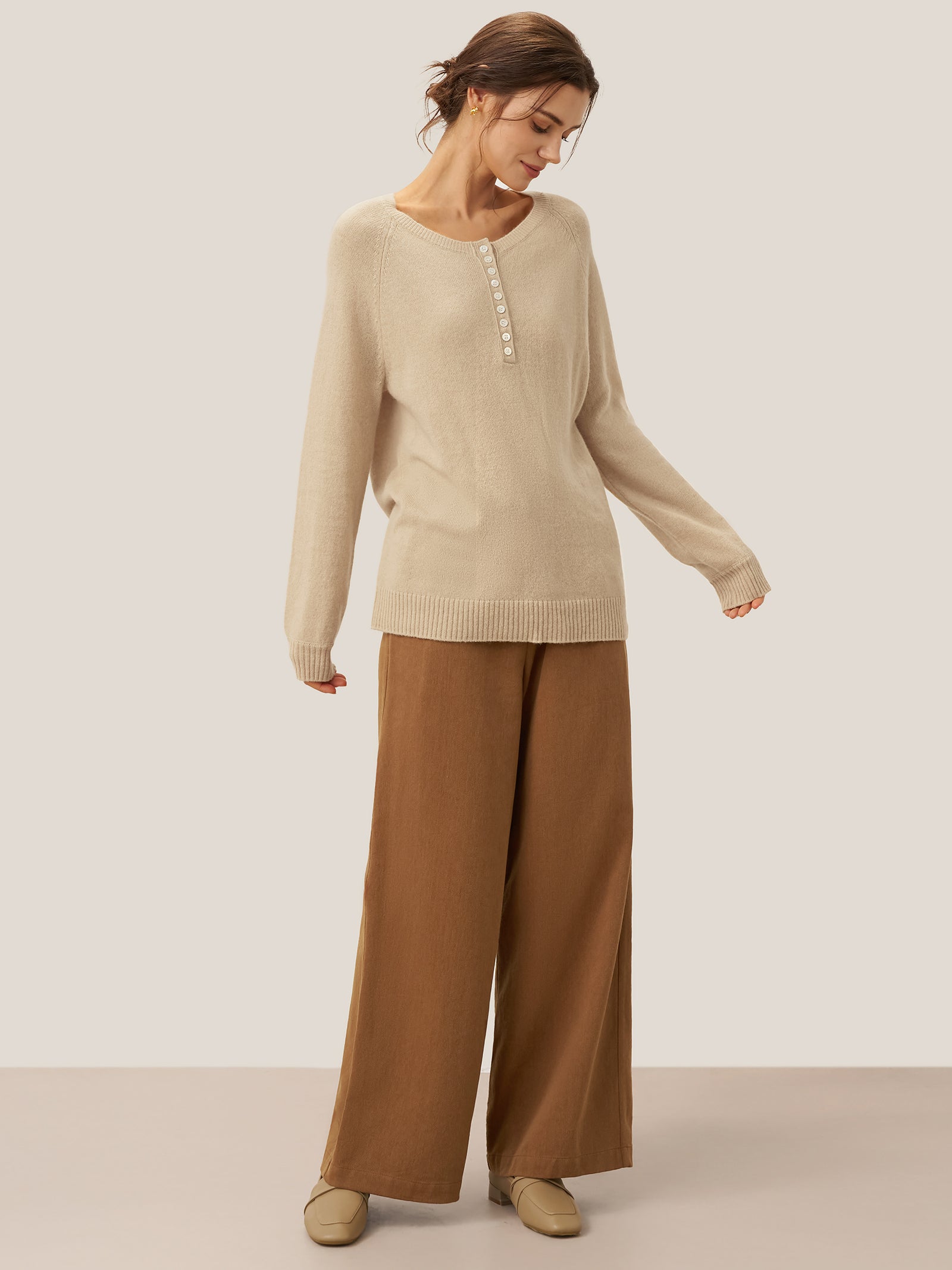 100% Mongolia Cashmere Lightweight Henley Sweater ANNELISE