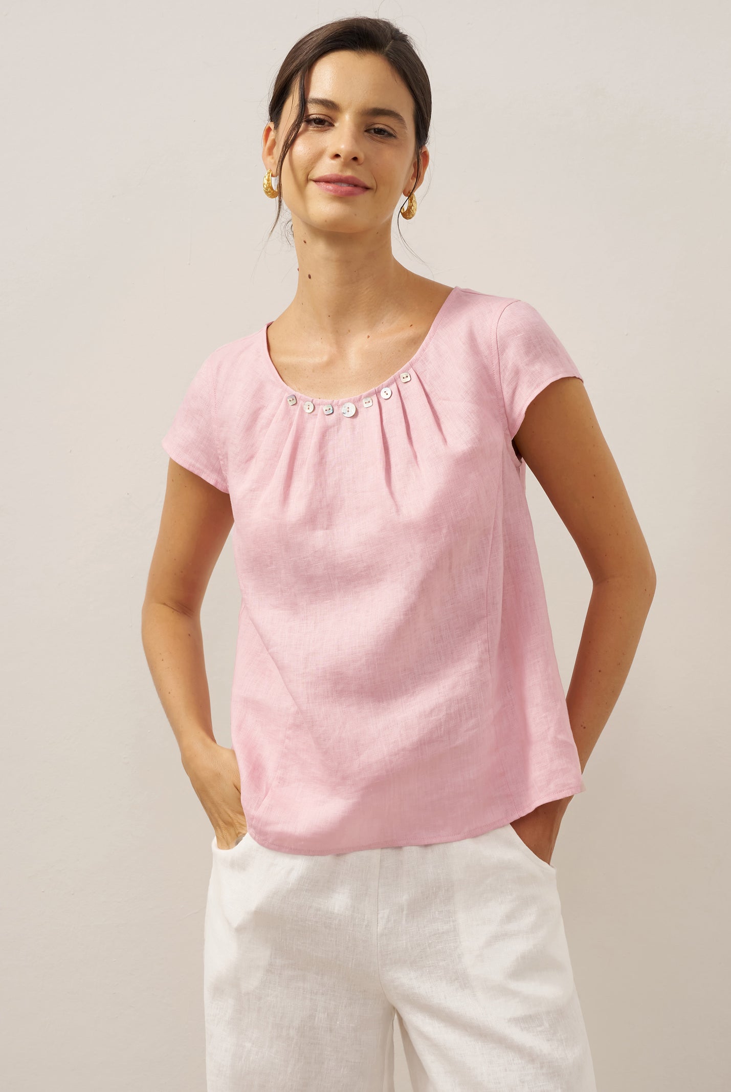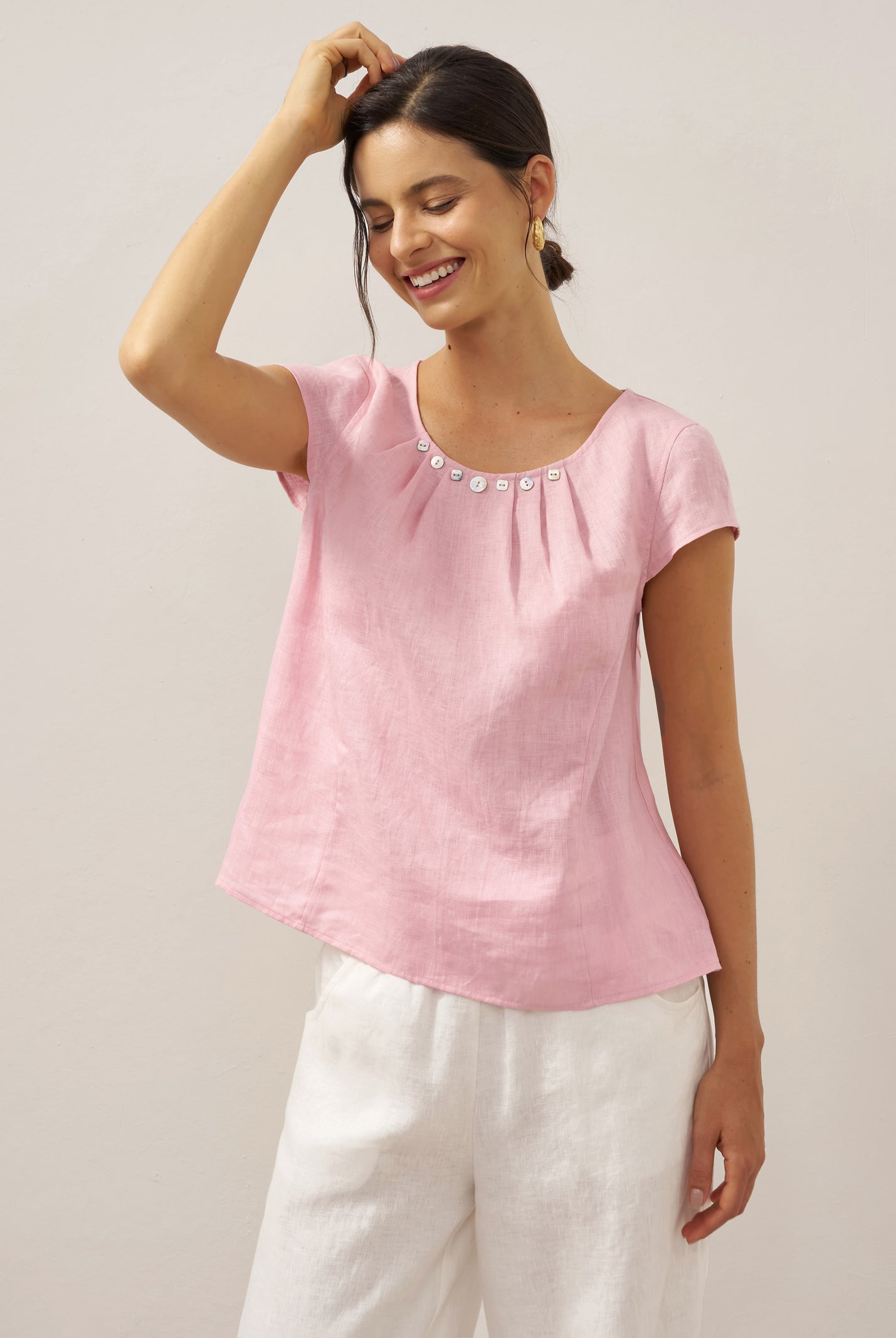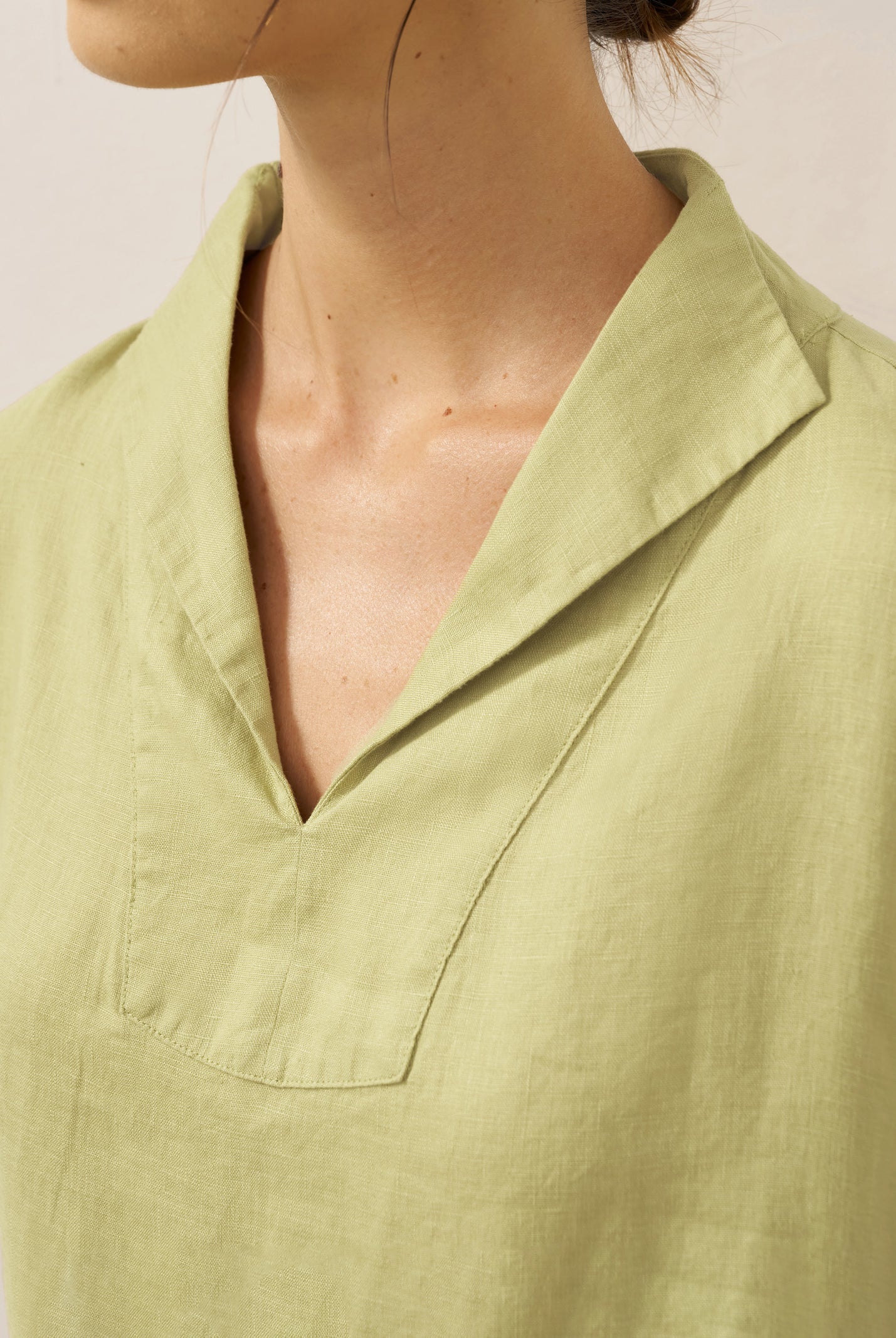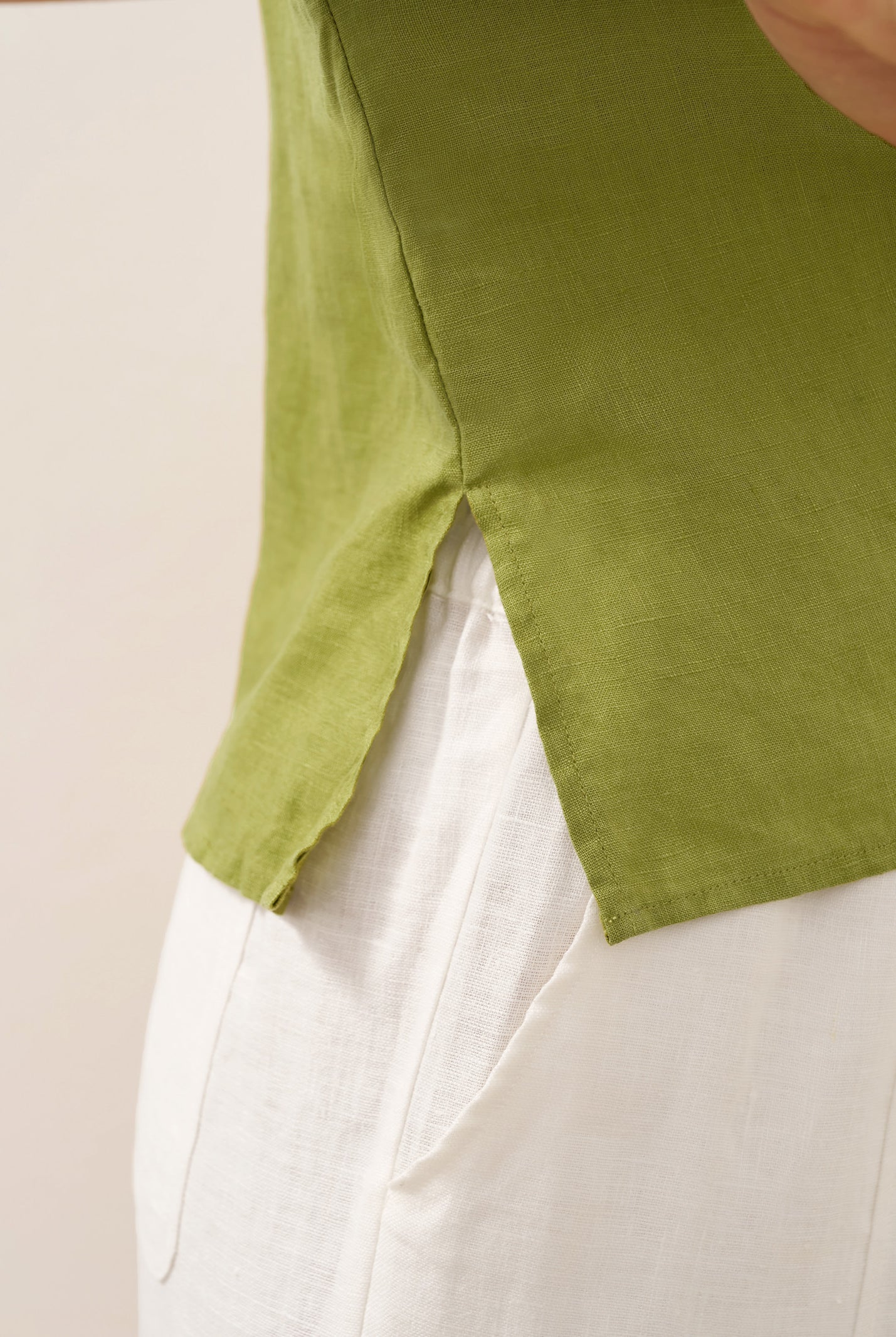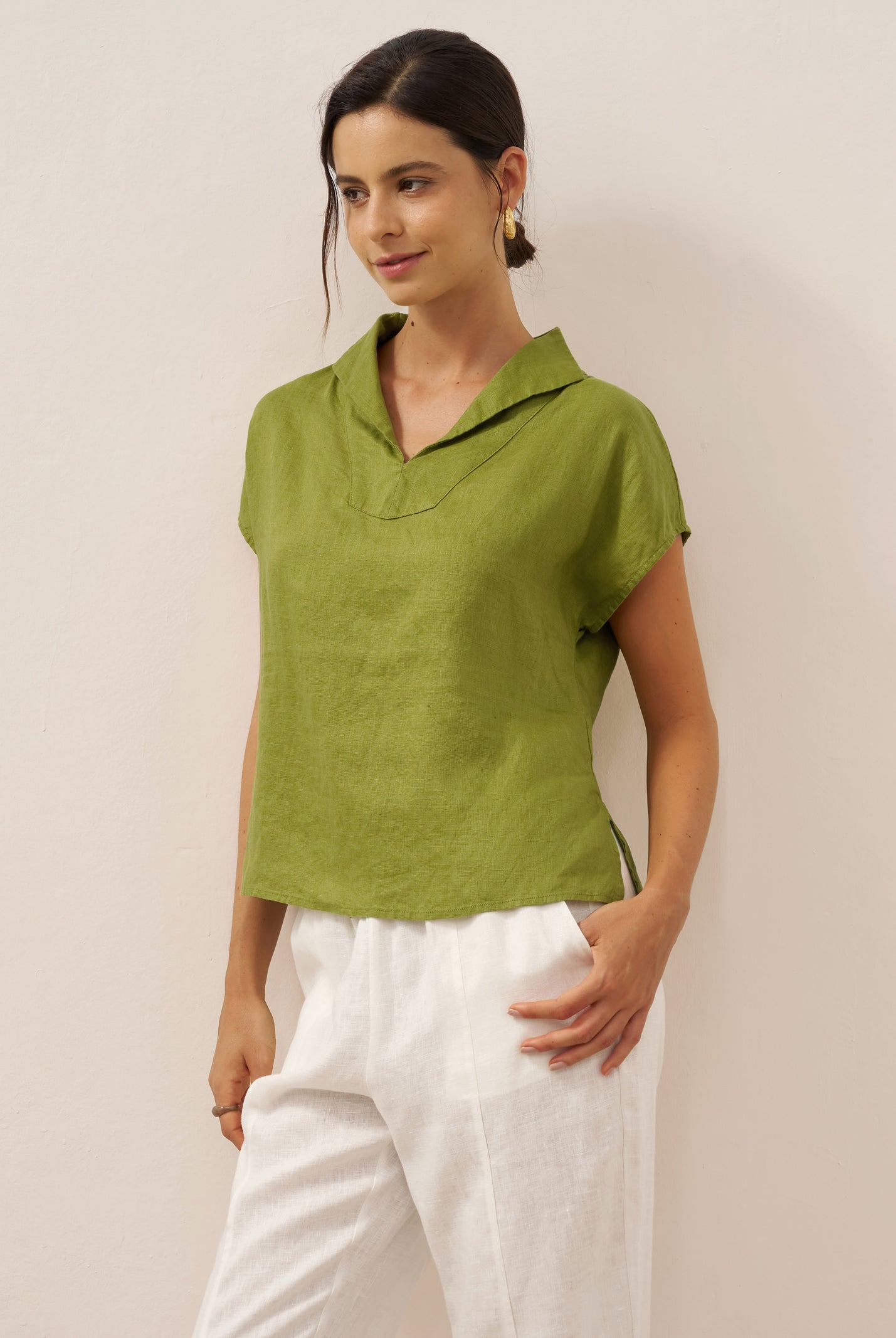 100% Linen Stripe Shawl V-Neck Half Sleeve Top