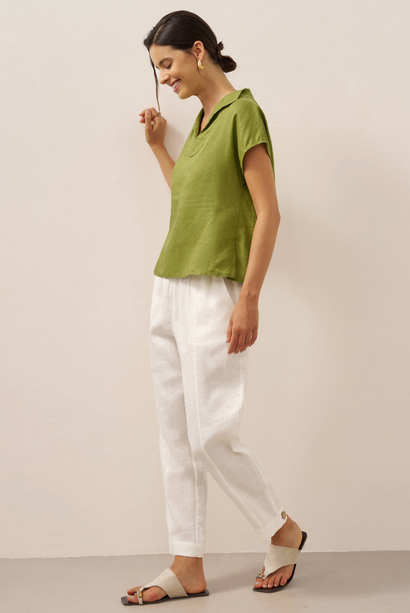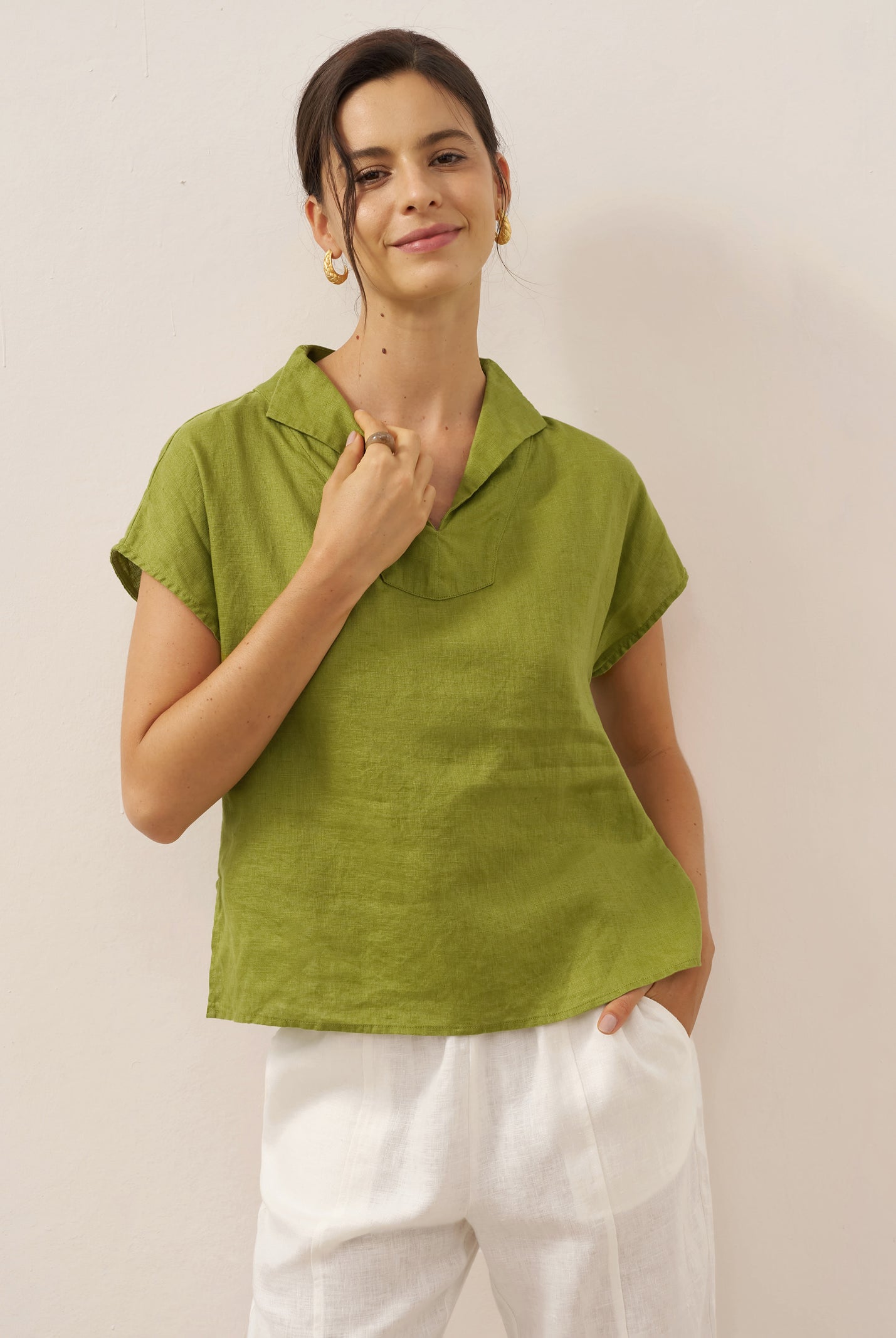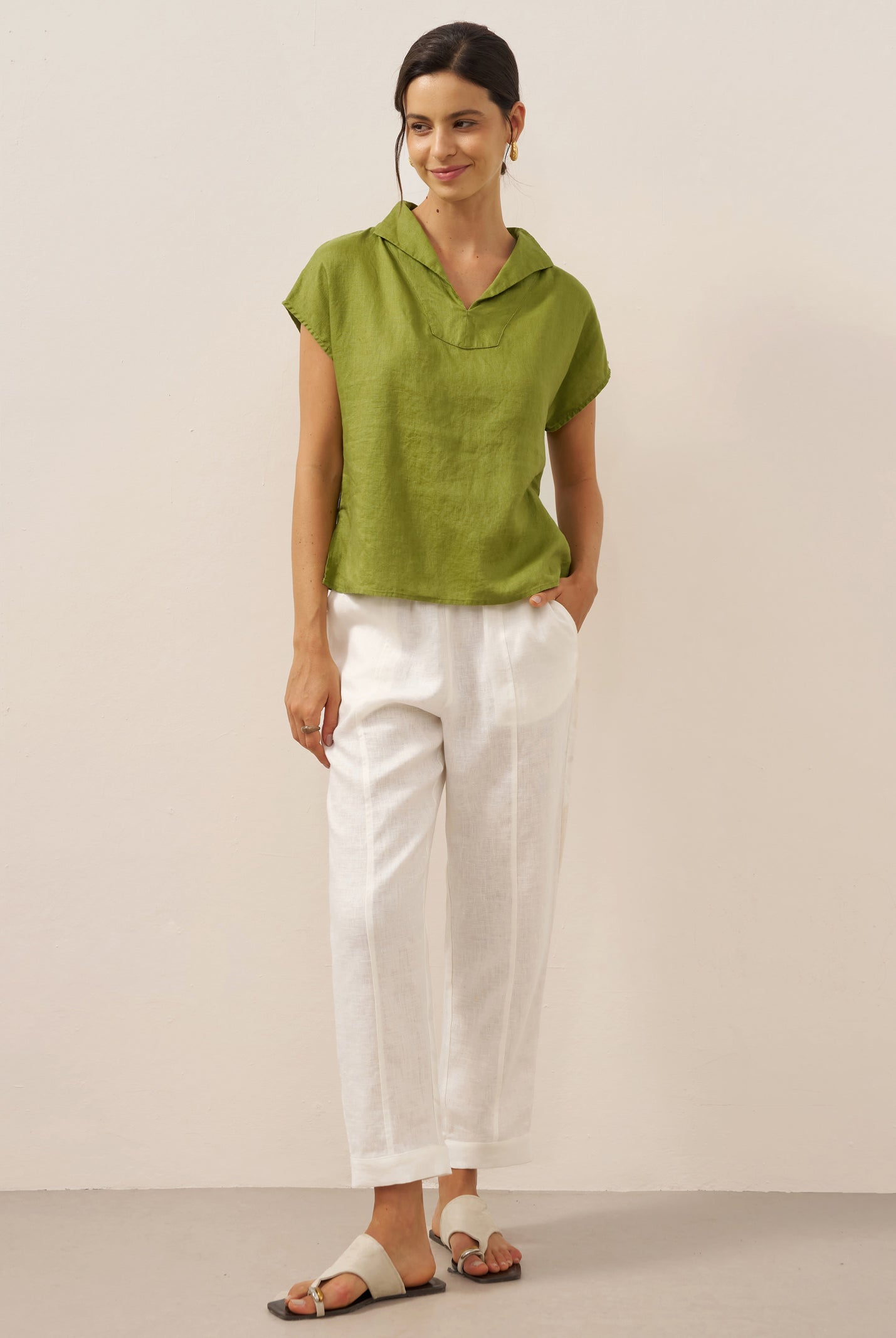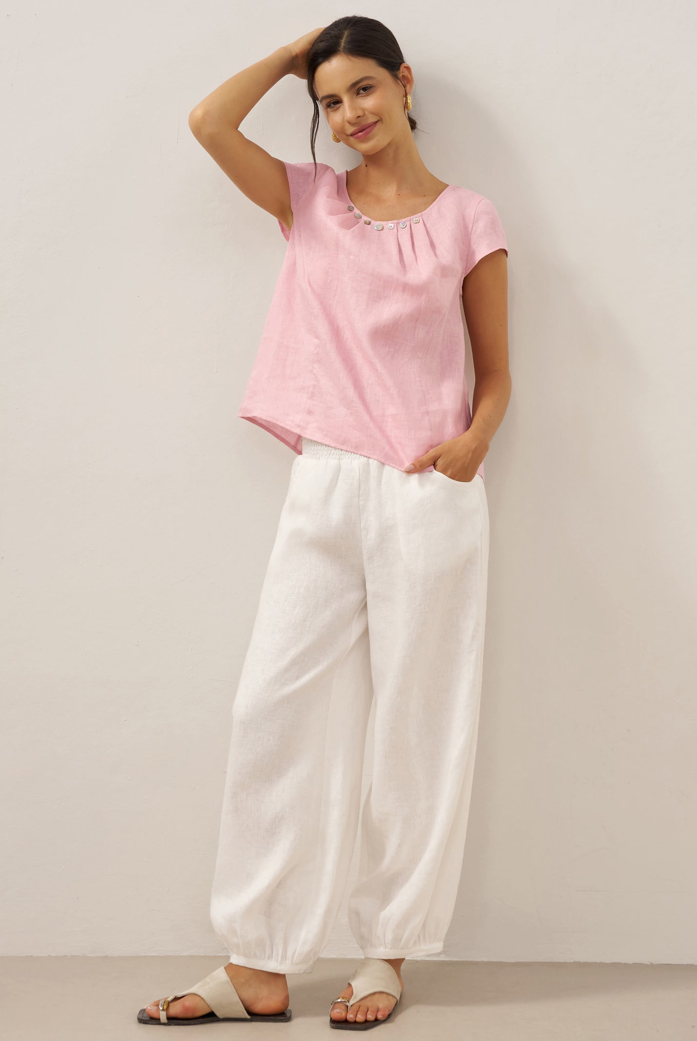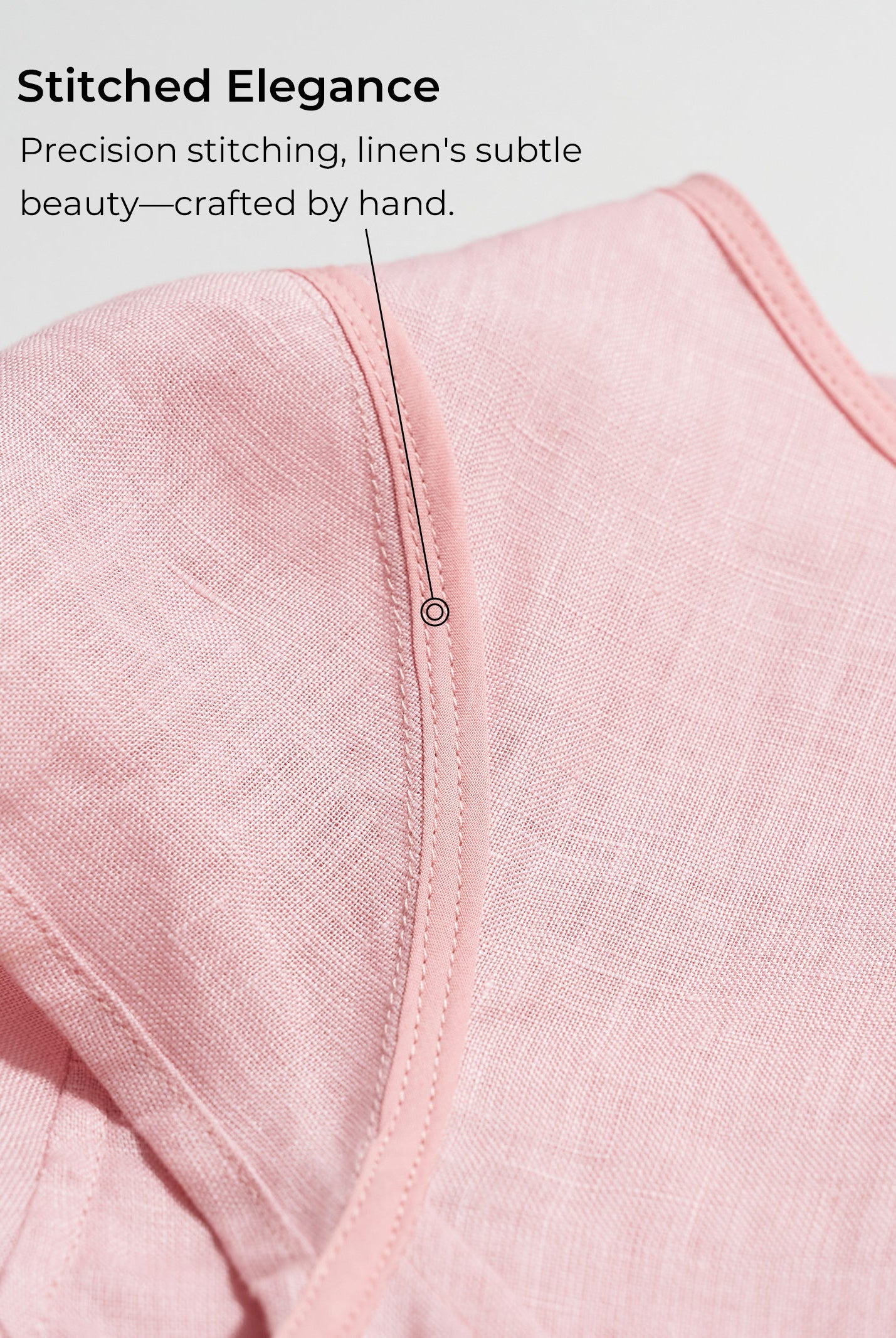 100% Linen Stripe Shawl V-Neck Half Sleeve Top
