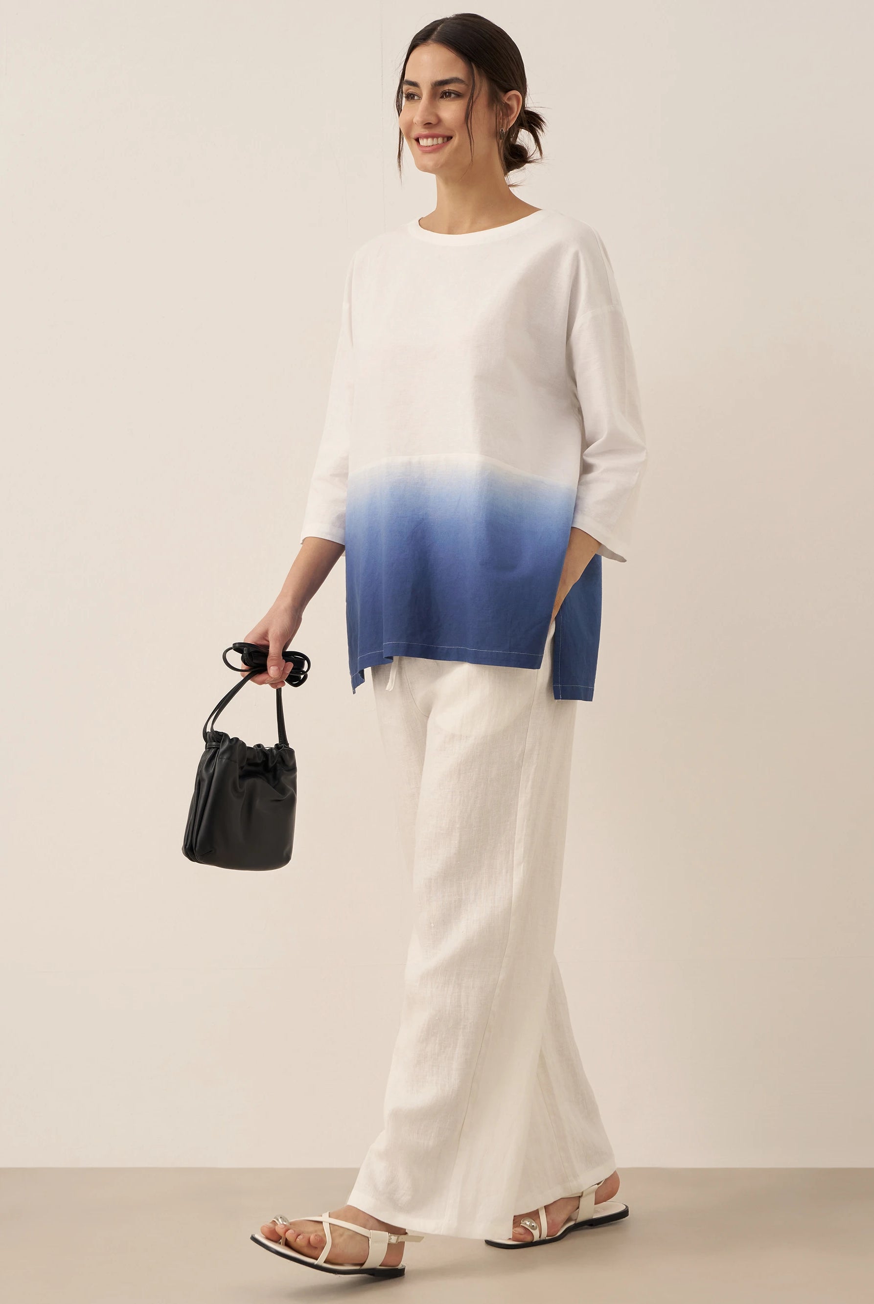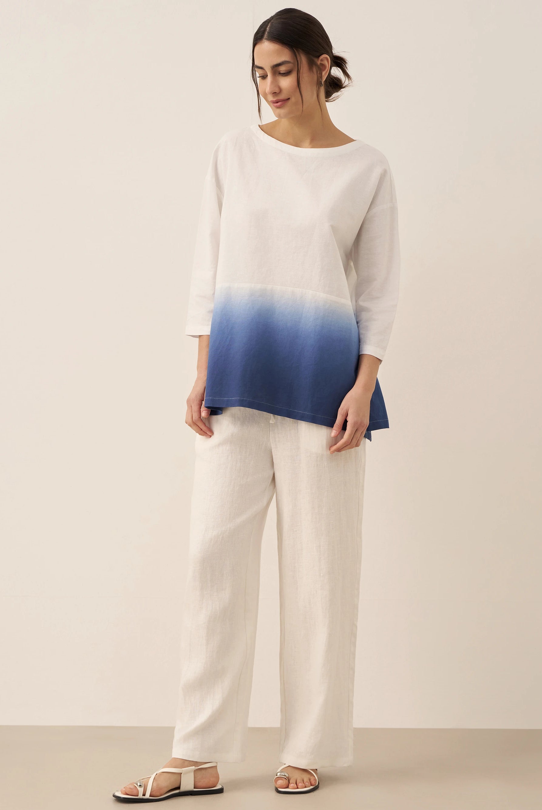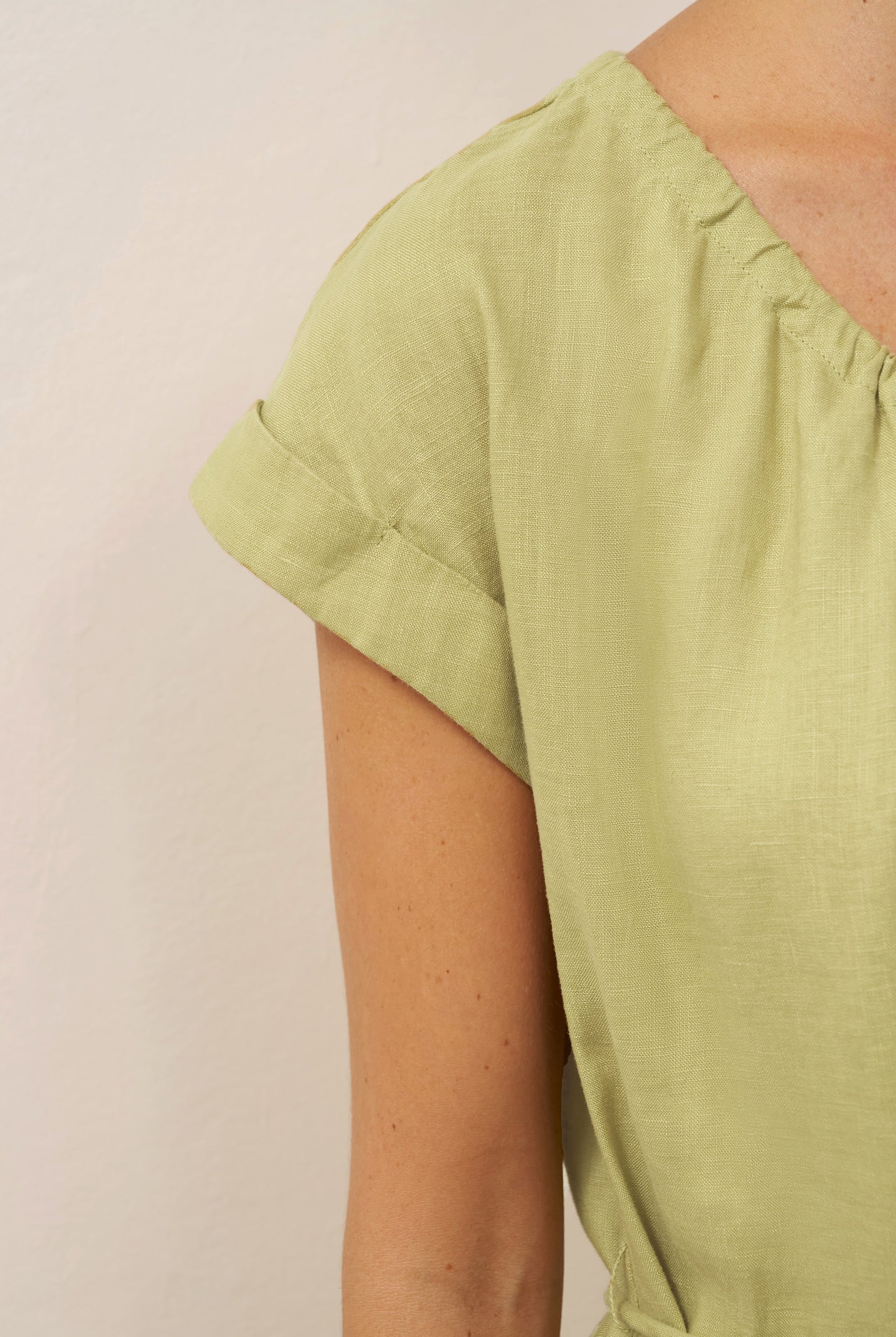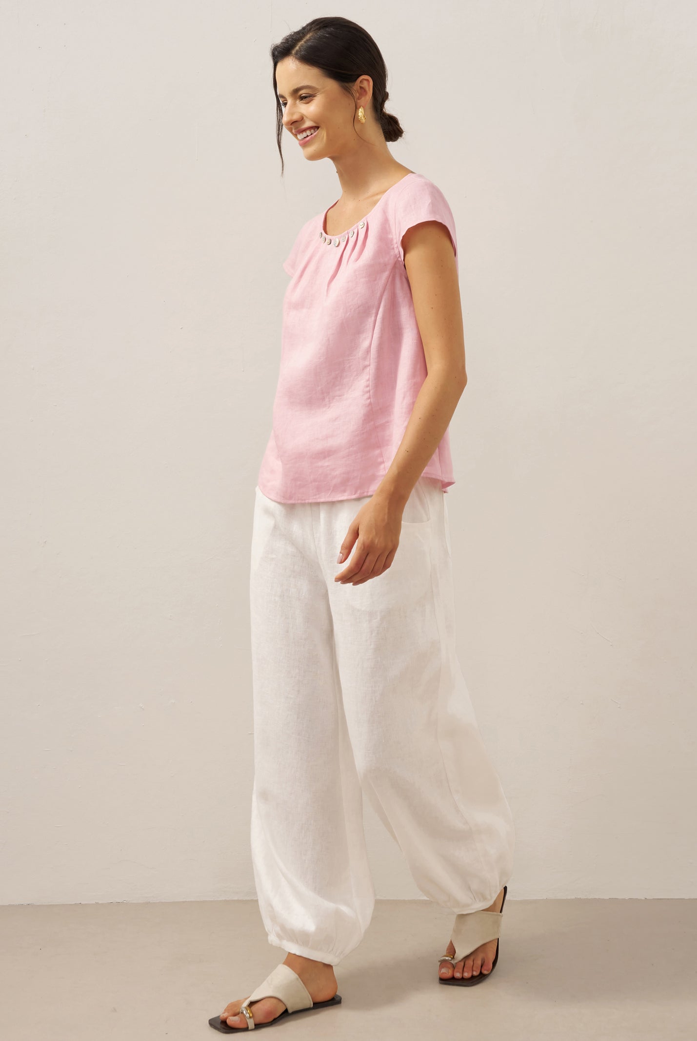 100% Linen Stripe Shawl V-Neck Half Sleeve Top