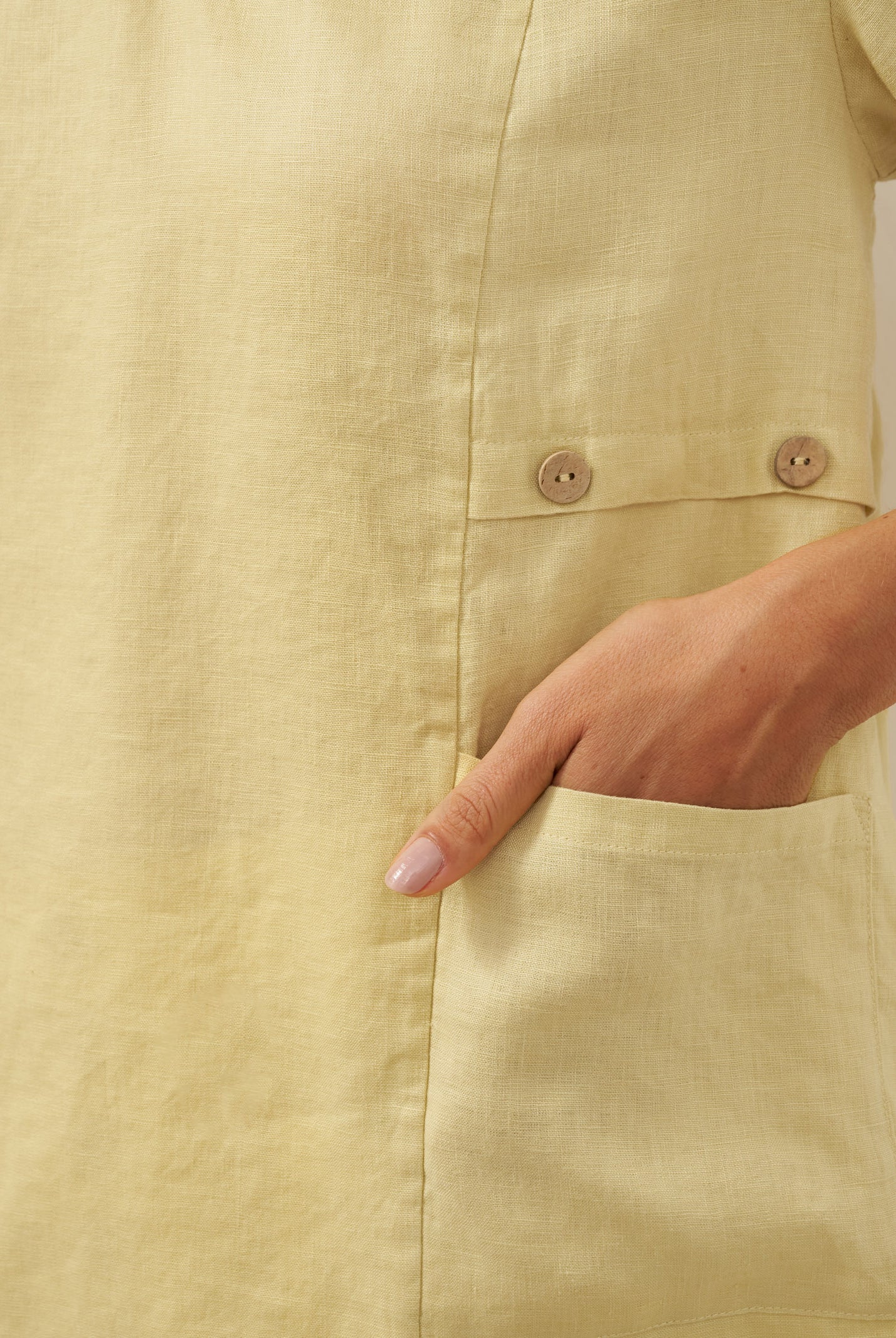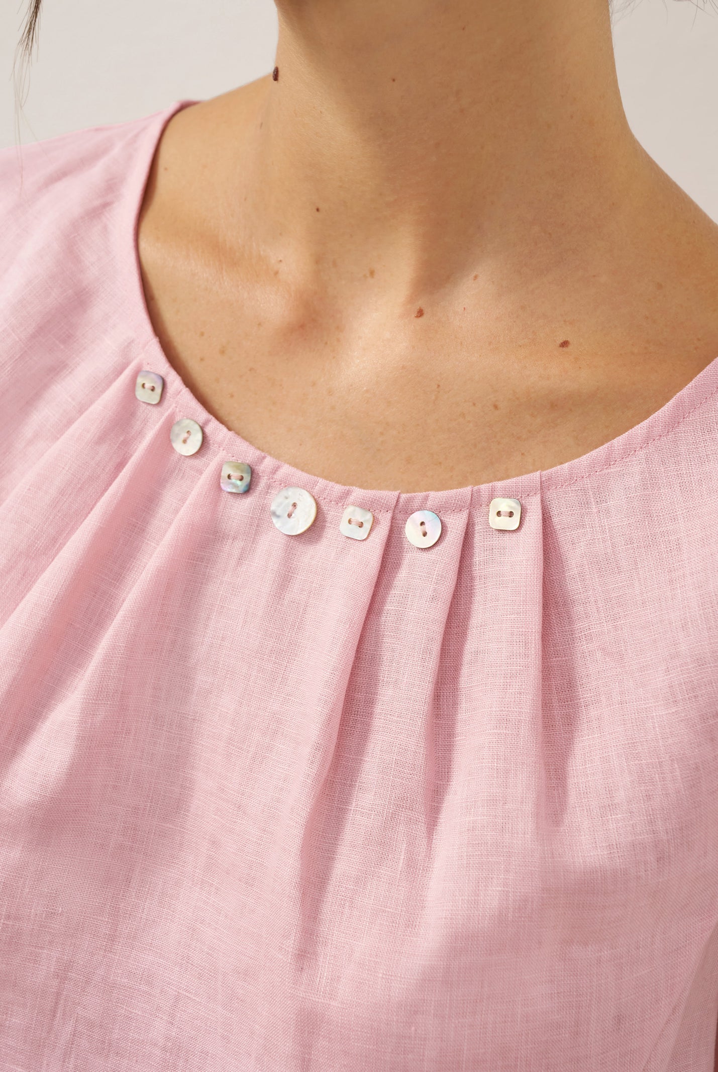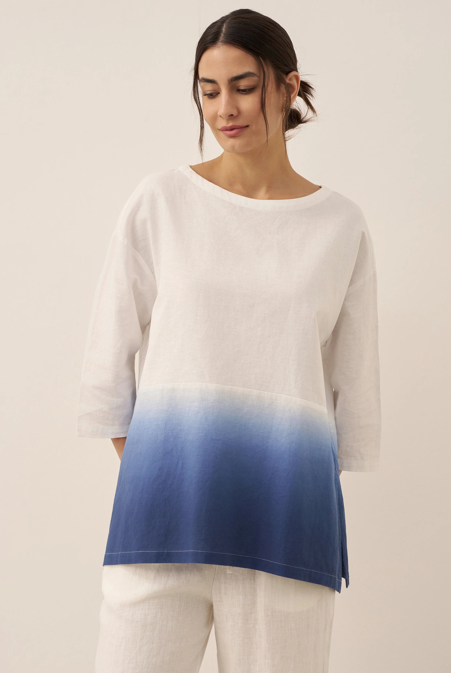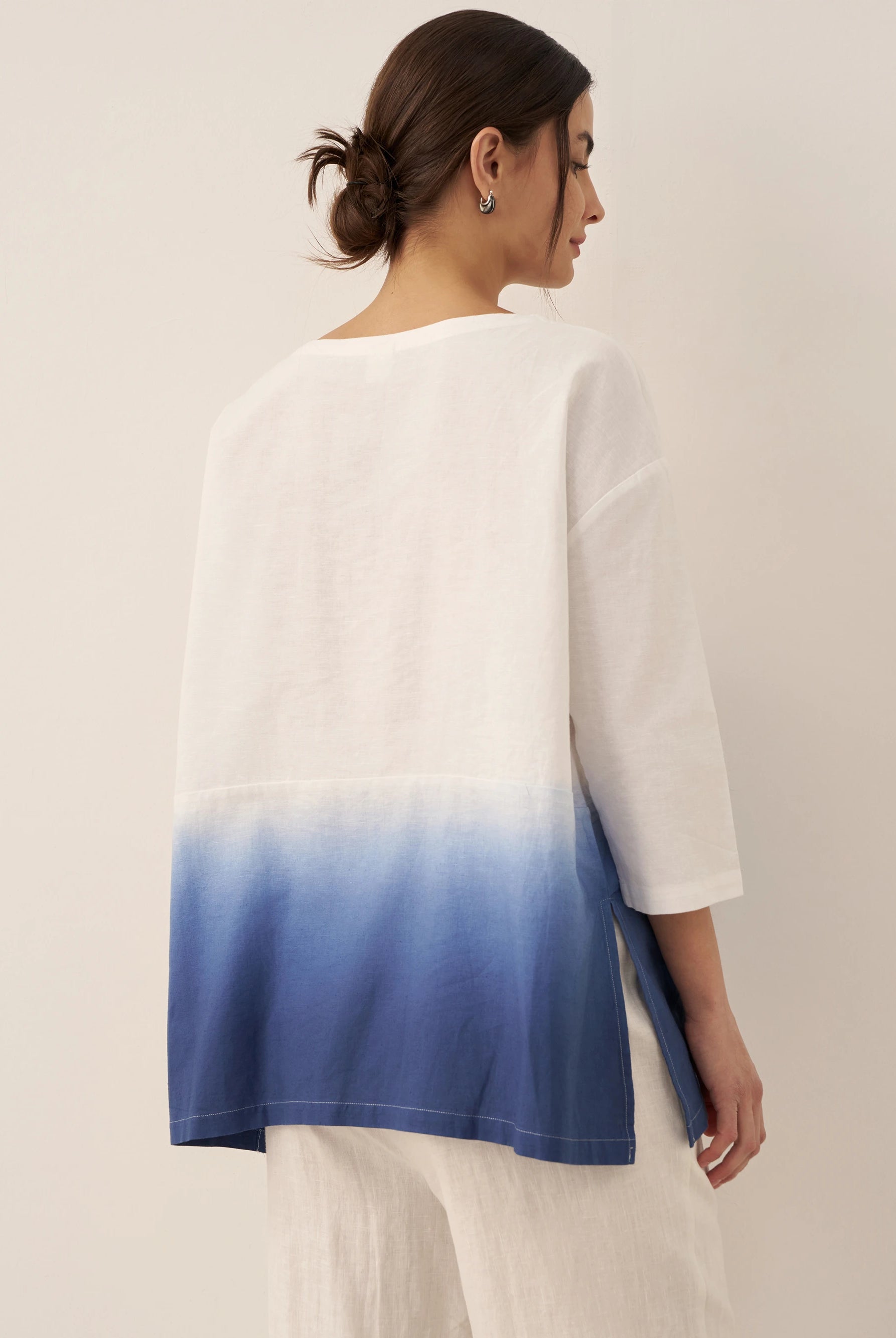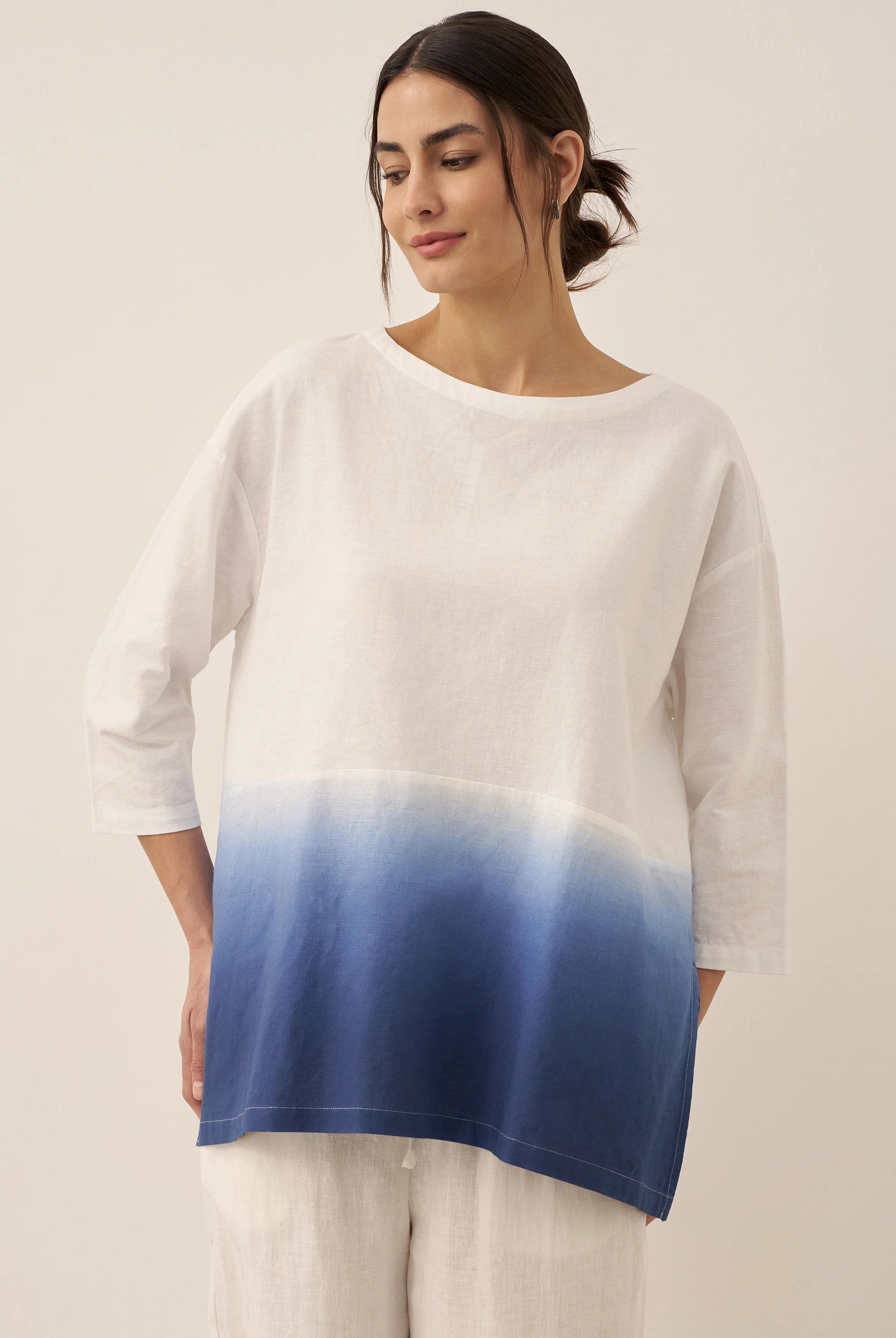 100% Linen Stripe Shawl V-Neck Half Sleeve Top