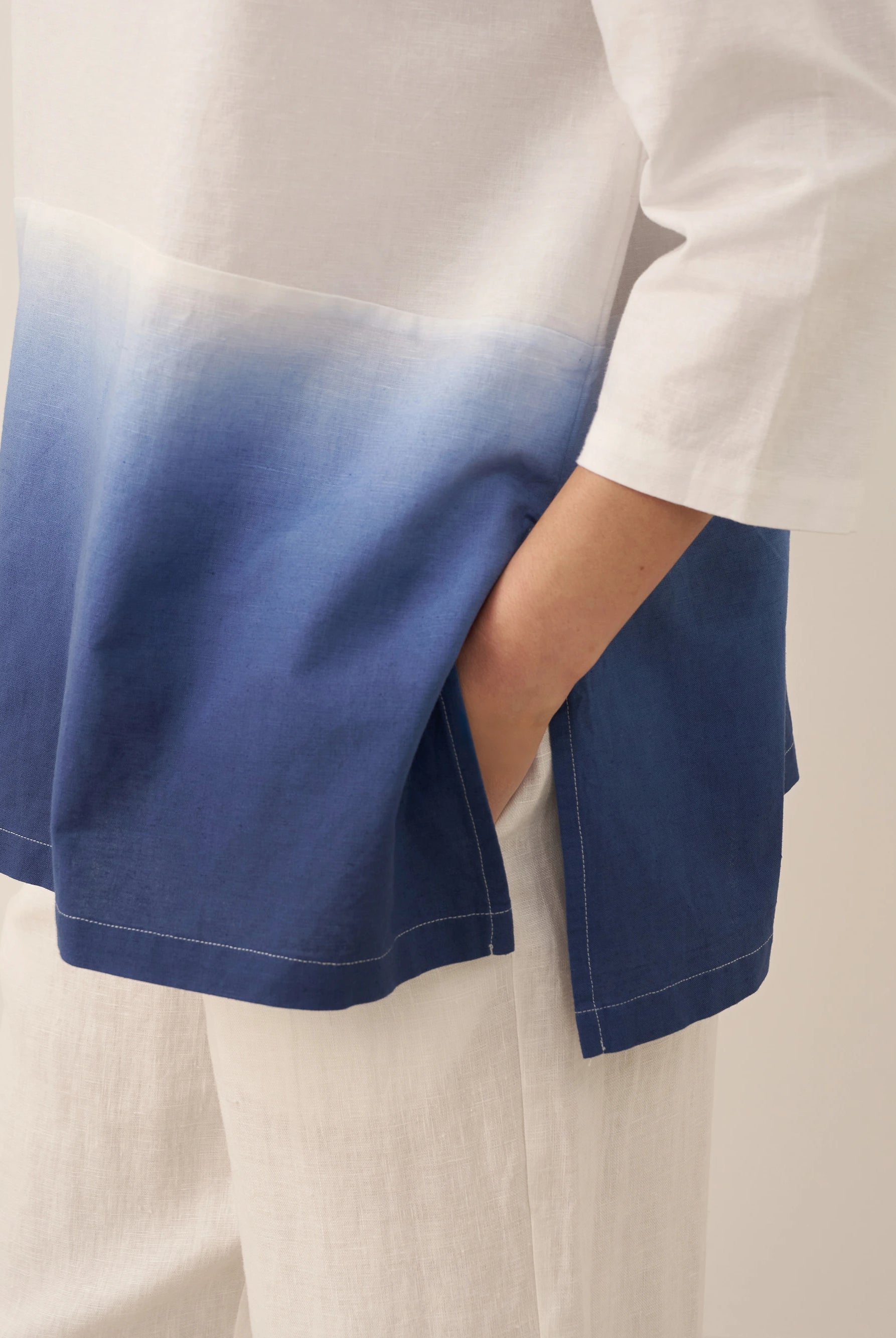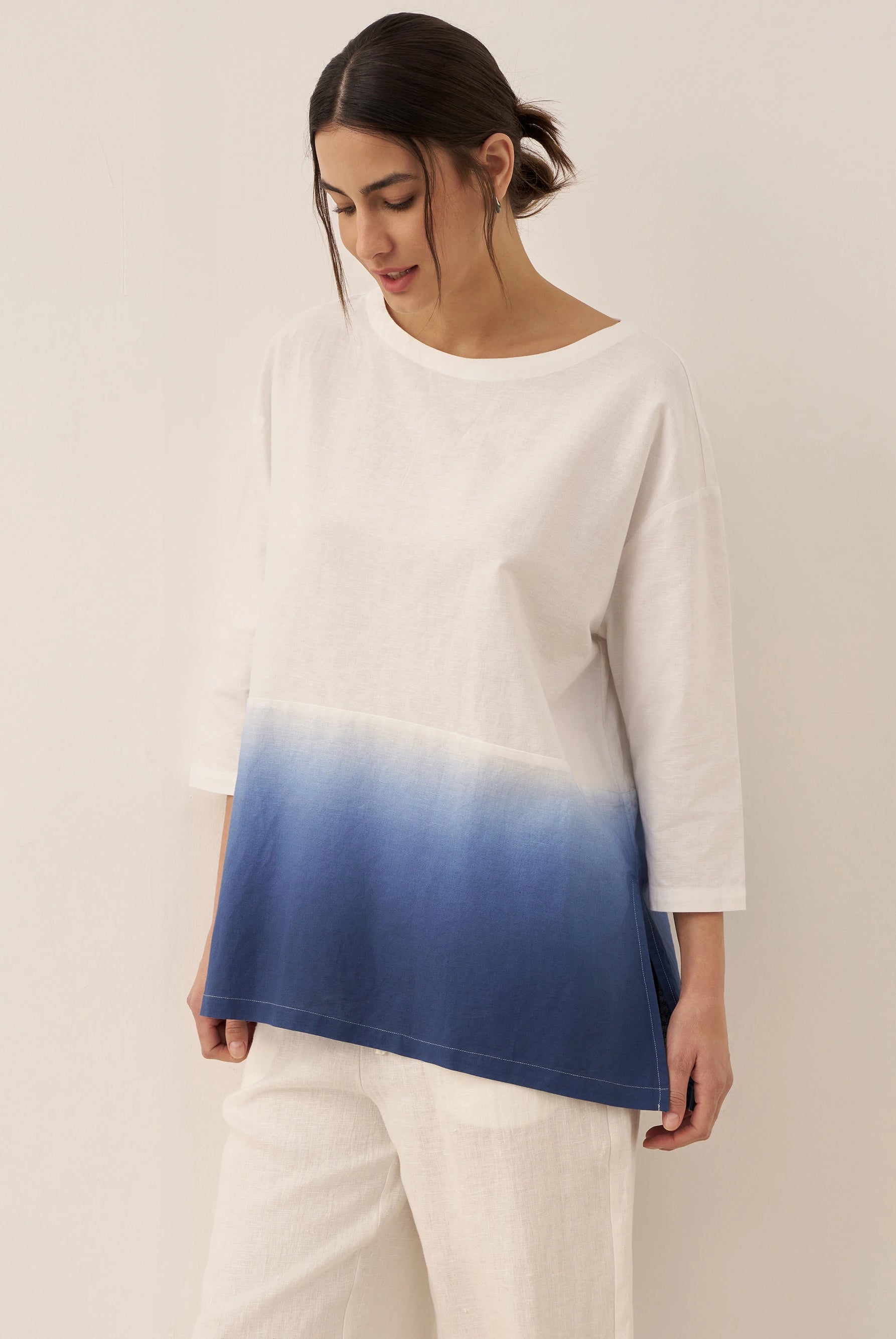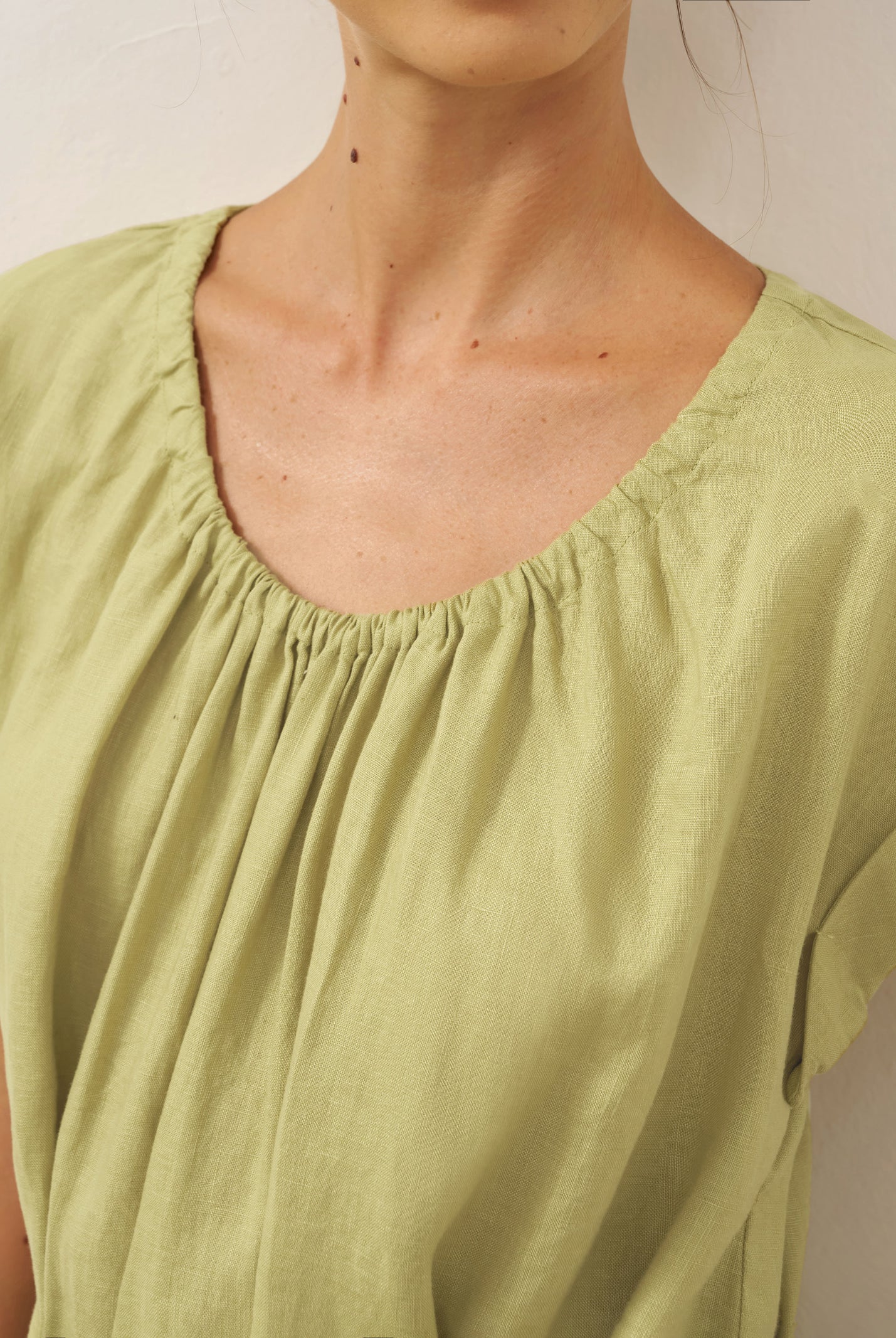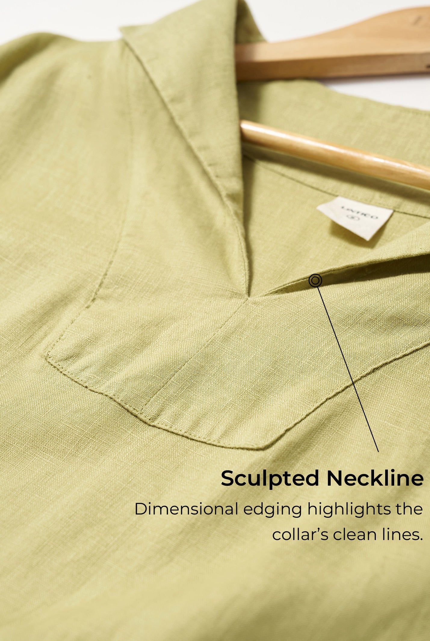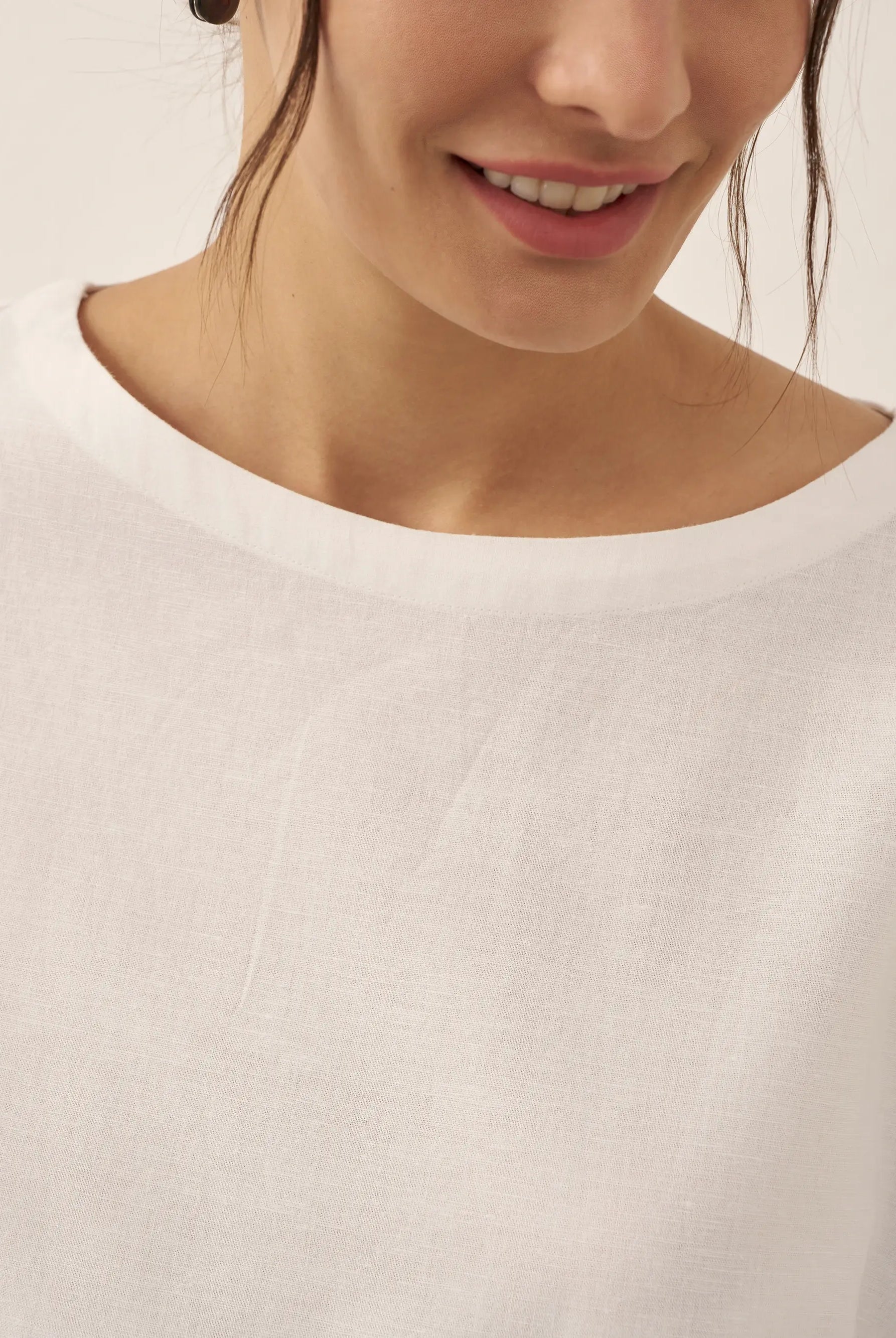 100% Linen Stripe Shawl V-Neck Half Sleeve Top