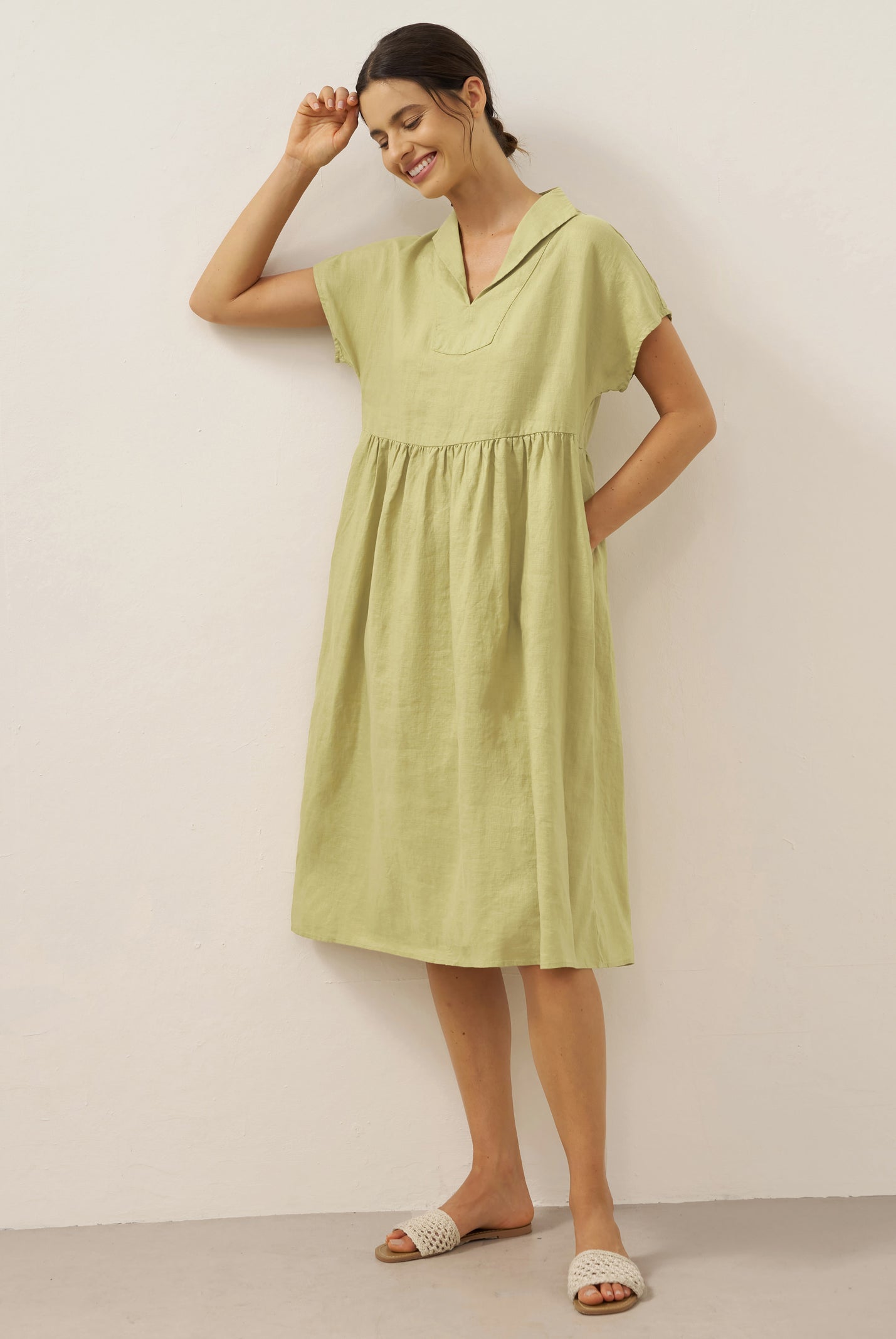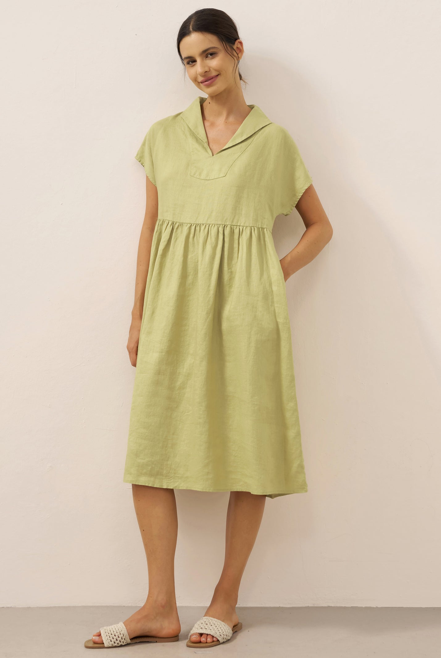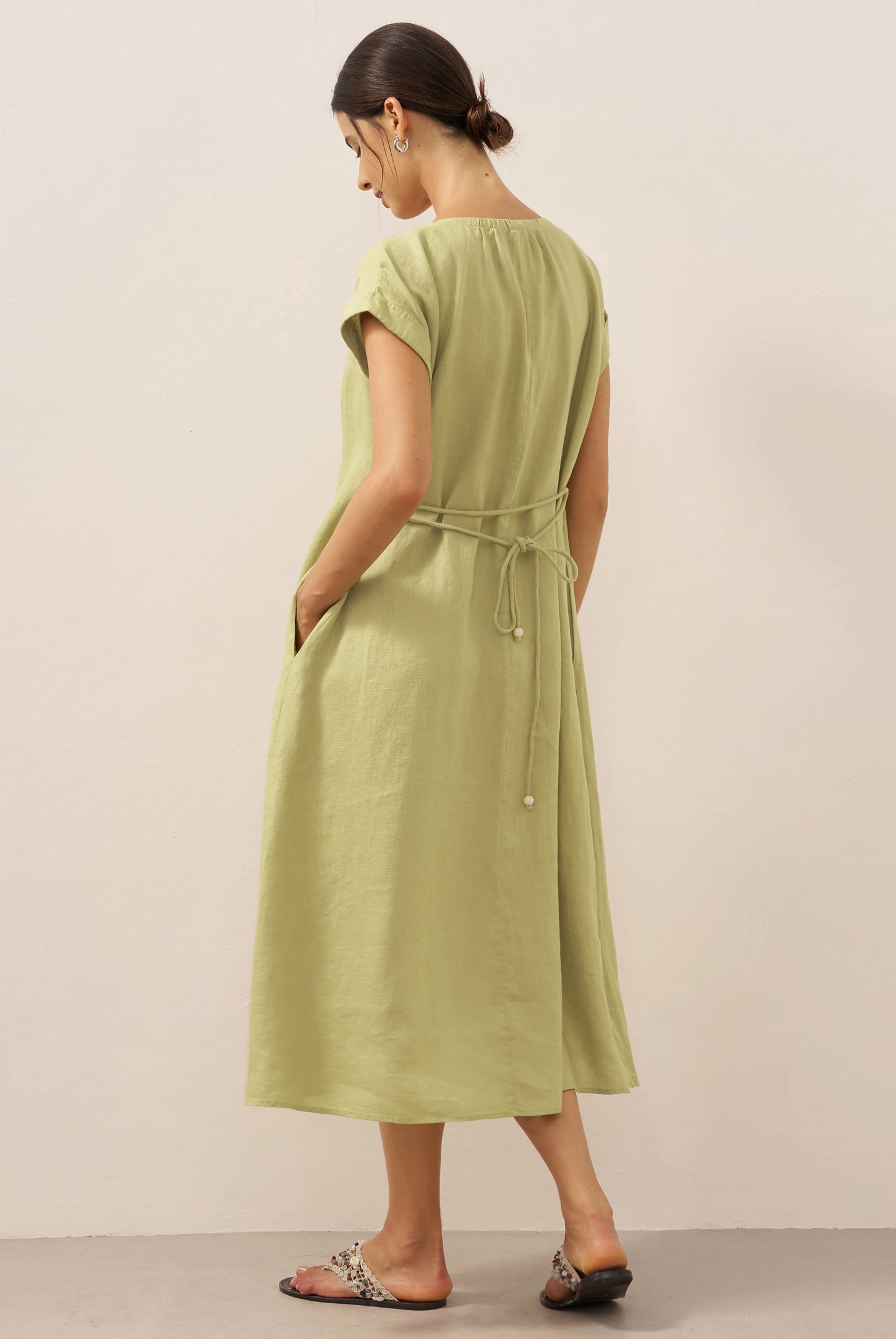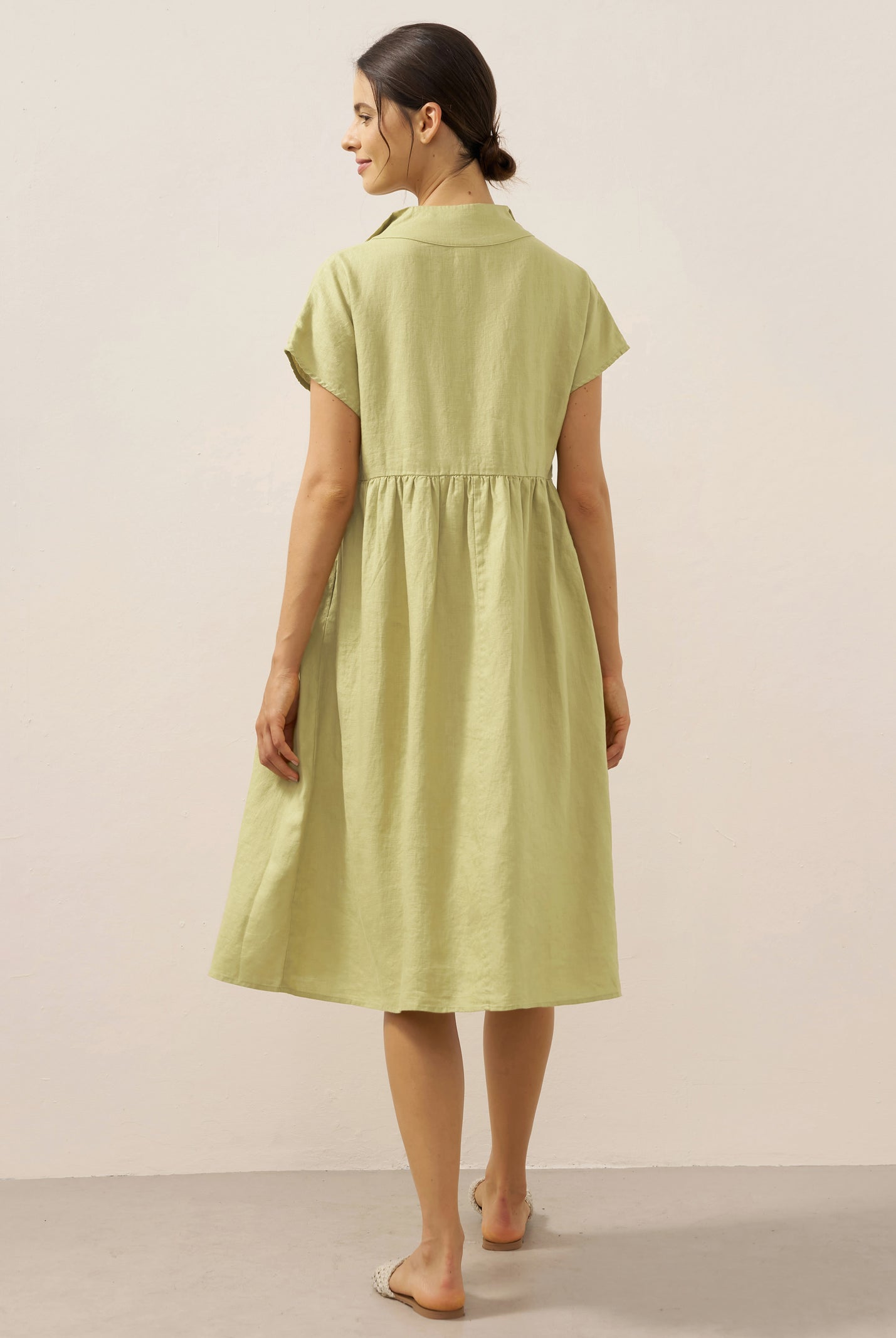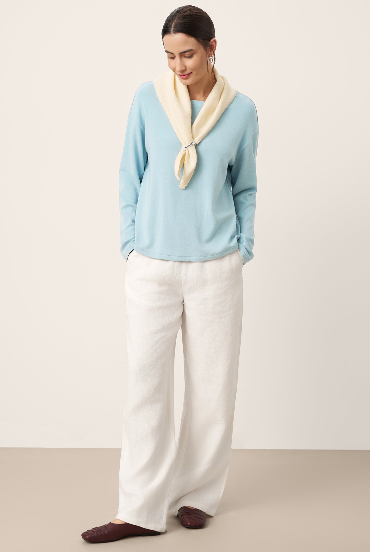 100% Linen Stripe Shawl V-Neck Half Sleeve Top