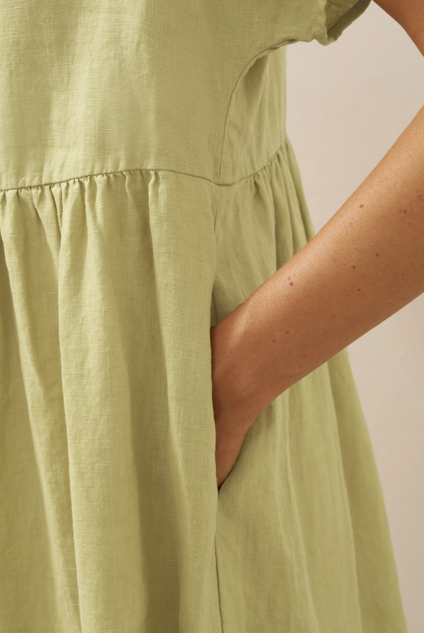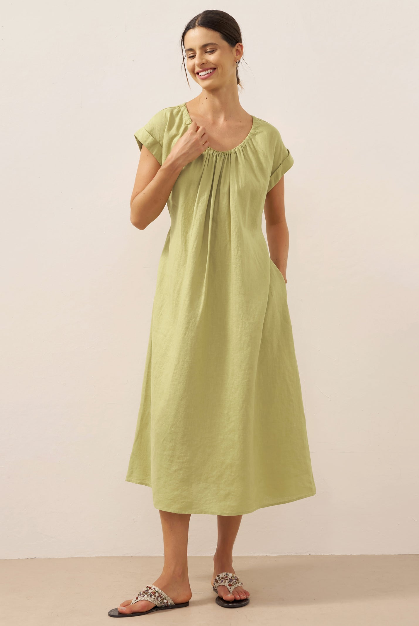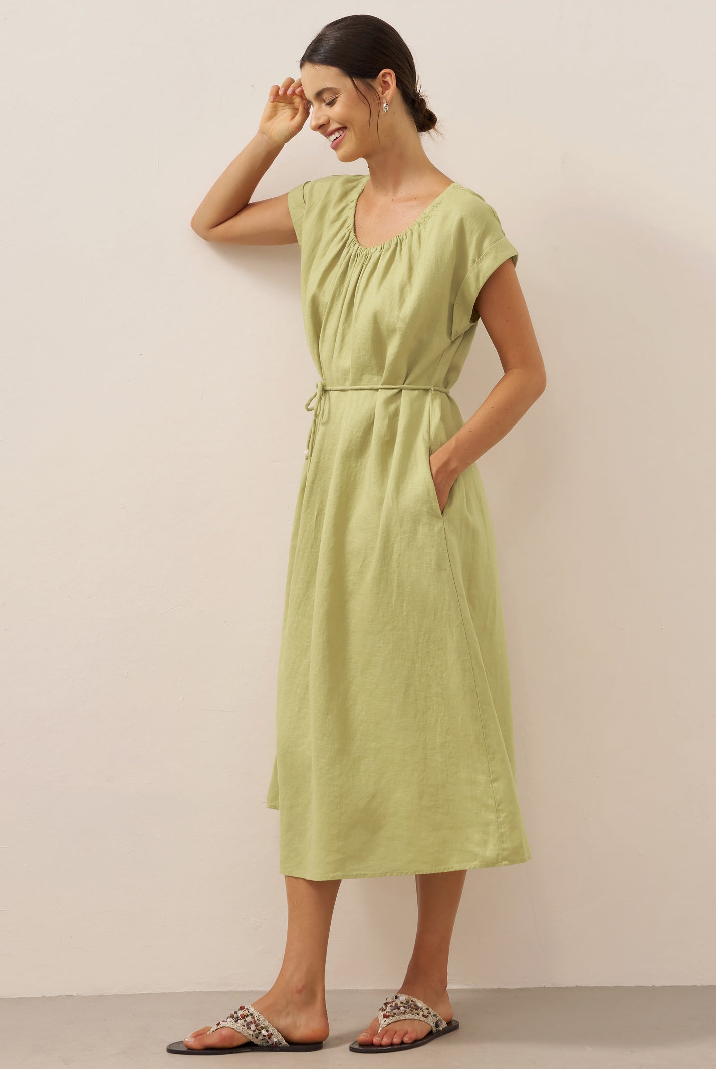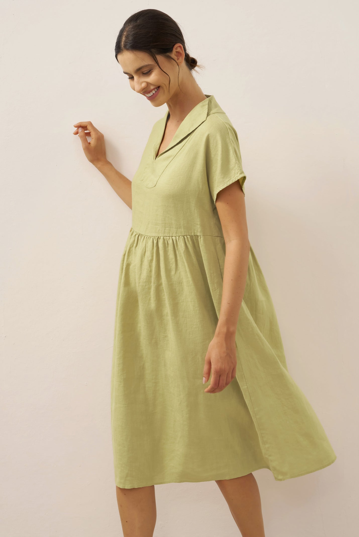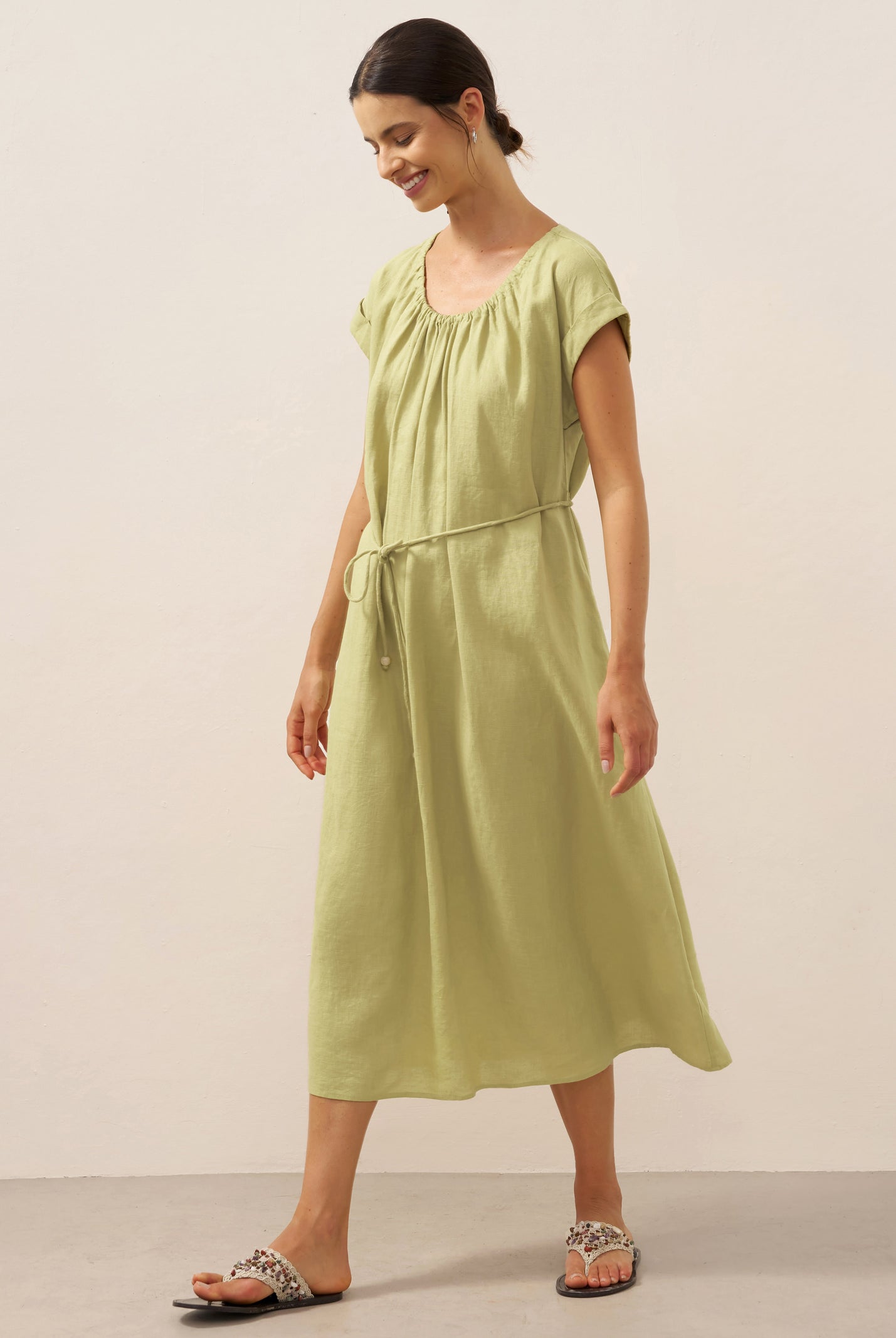 100% Linen Stripe Shawl V-Neck Half Sleeve Top
