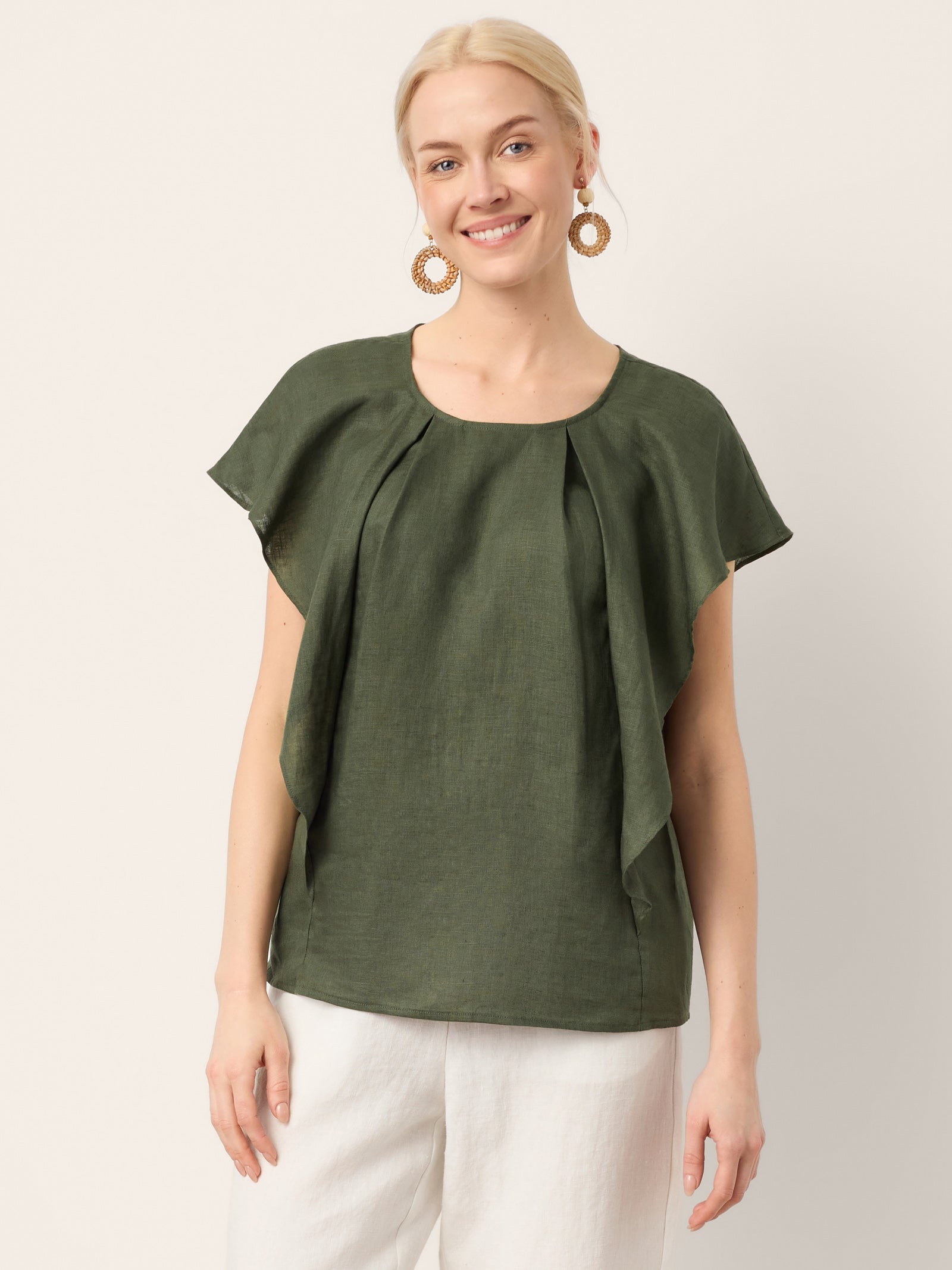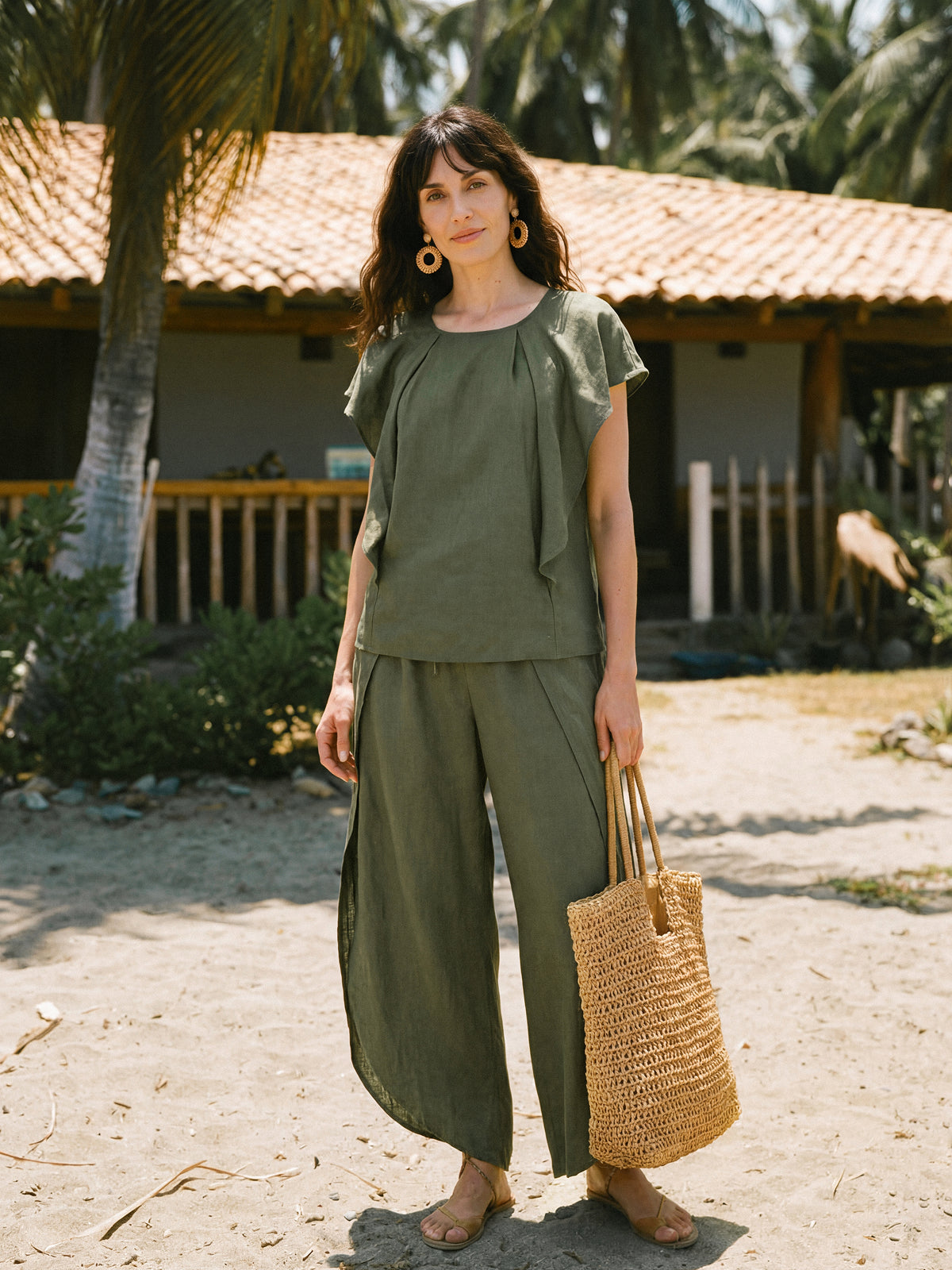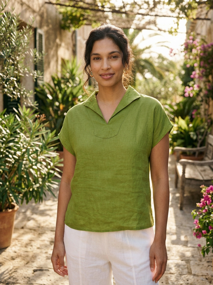 This linen top became an instant favorite, wore it to my regular coffee spot and felt comfortable all day. The fabric breathes beautifully, and the neckline adds subtle style. Fits true to size with a flattering drape that doesn't cling. Color and details match the website photos perfectly. Already planning next purchase!