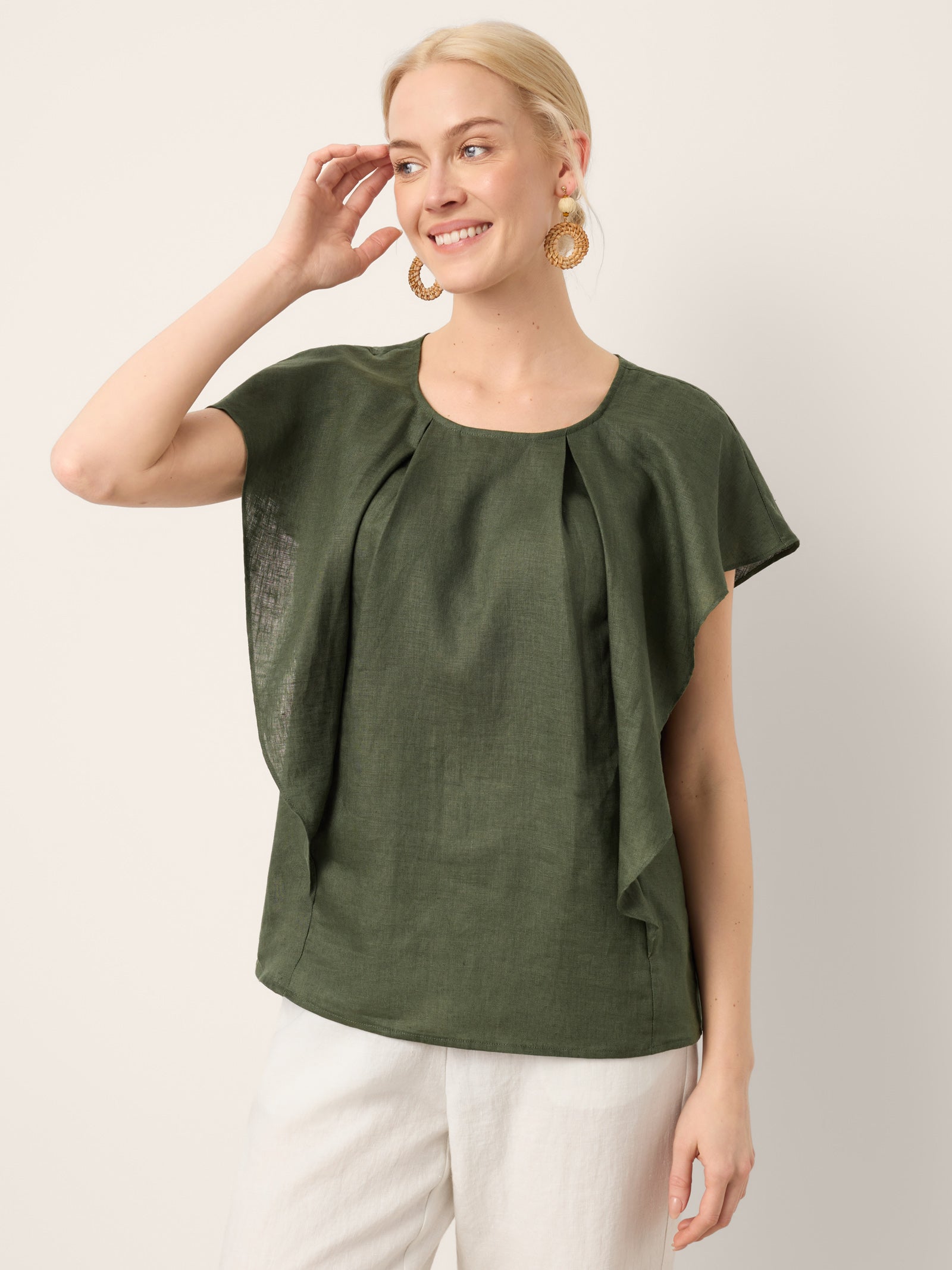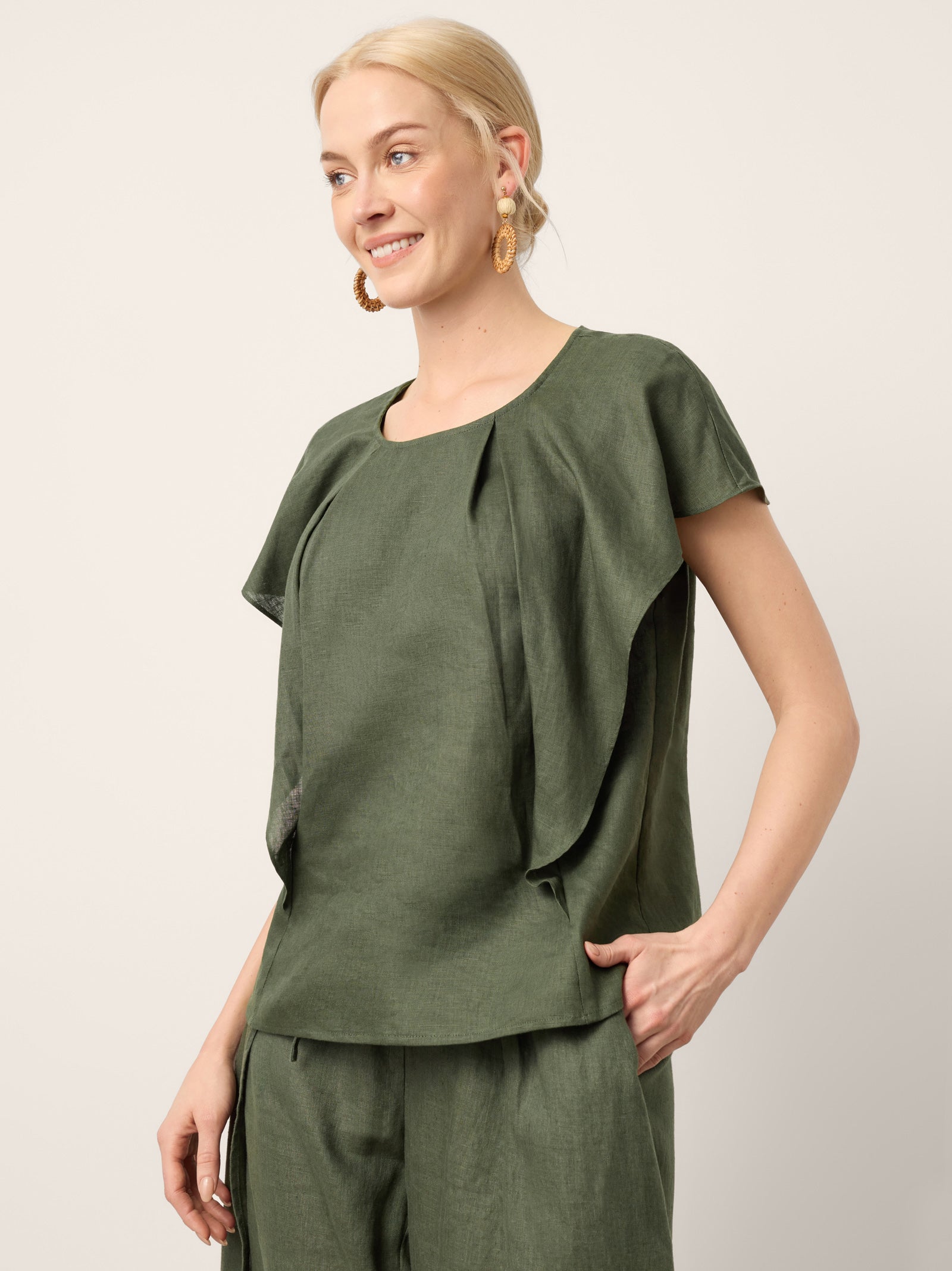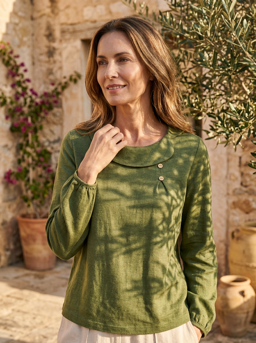 This linen top became an instant favorite, wore it to my regular coffee spot and felt comfortable all day. The fabric breathes beautifully, and the neckline adds subtle style. Fits true to size with a flattering drape that doesn't cling. Color and details match the website photos perfectly. Already planning next purchase!