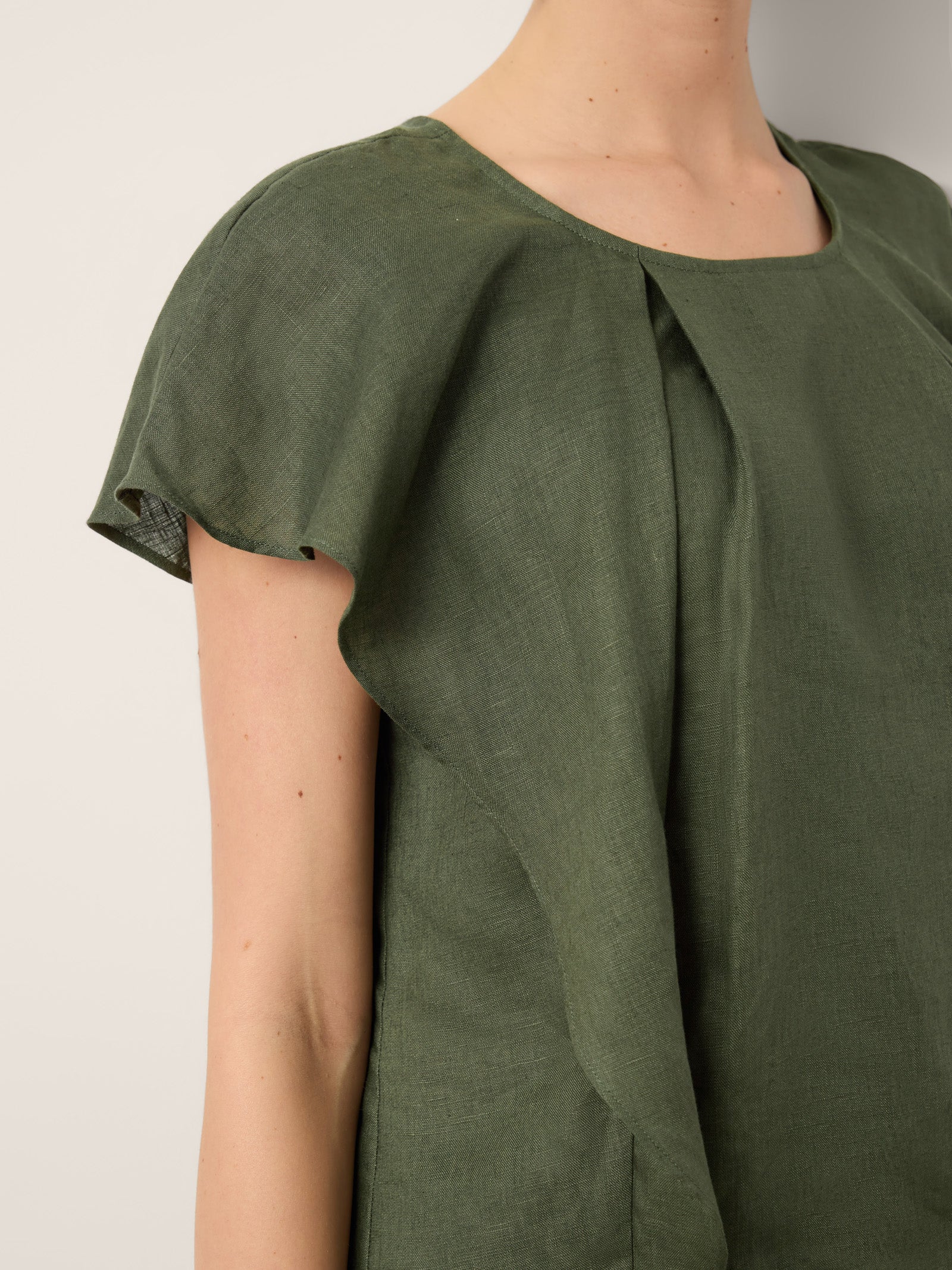 This linen dress feels light but still structured enough to look polished. The earthy green shade is so flattering and easy to style with sandals or flats. I love how comfortable it is while still looking put together.