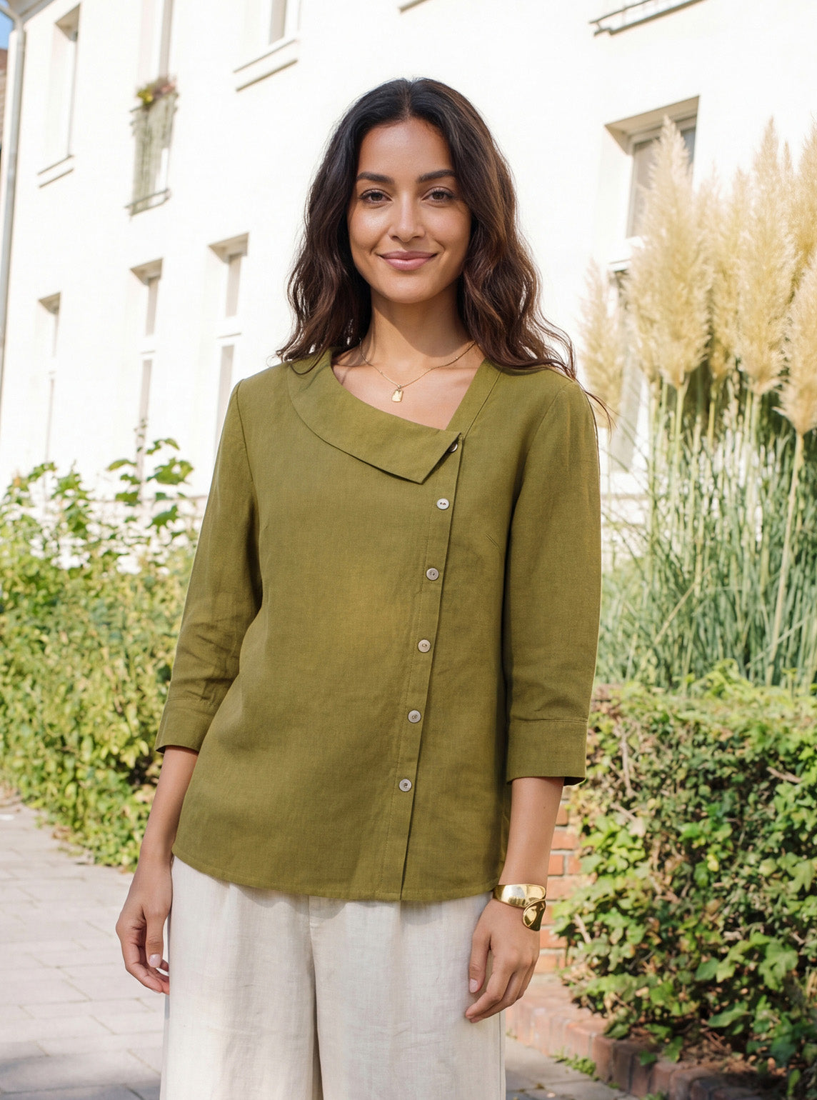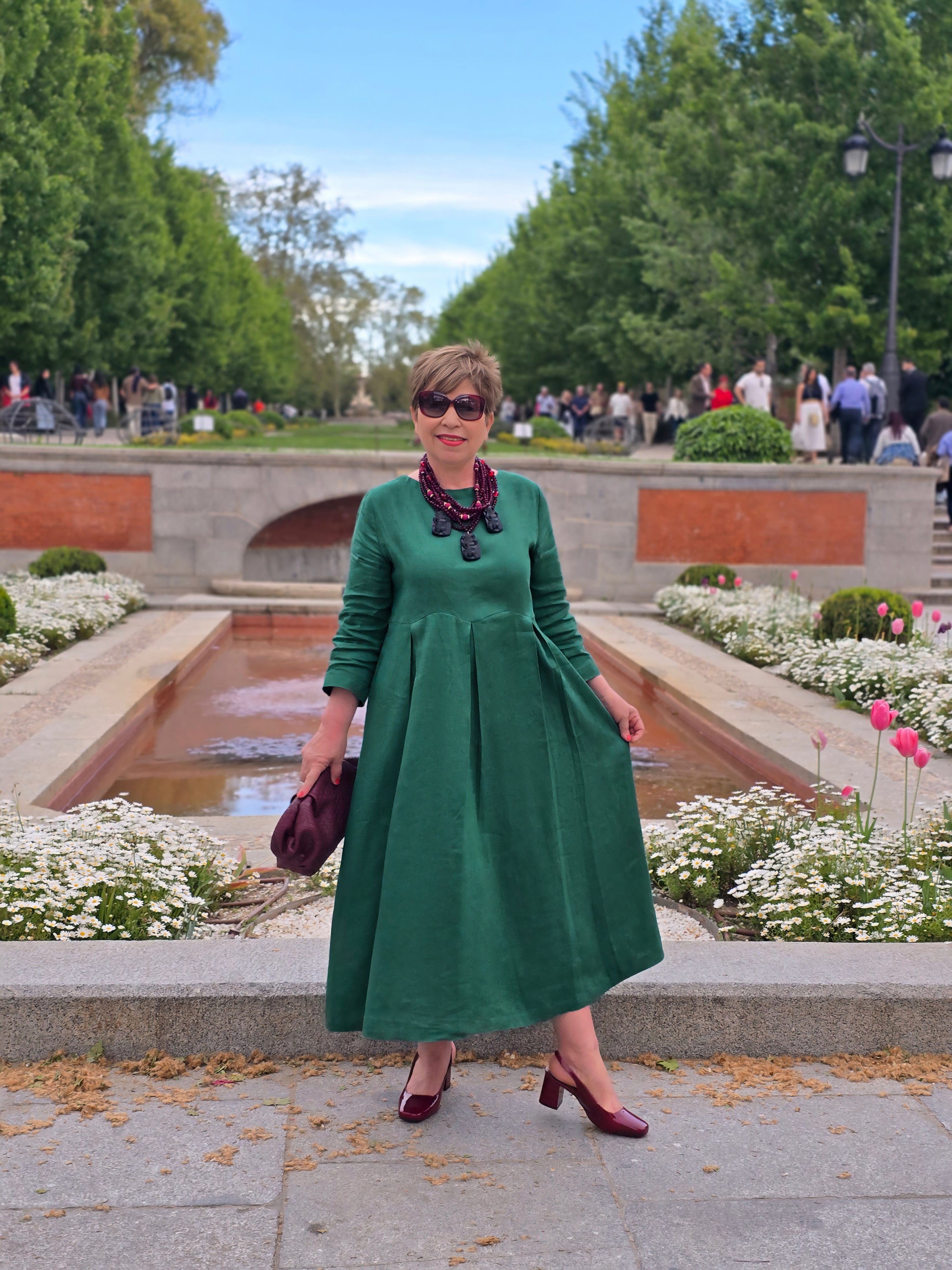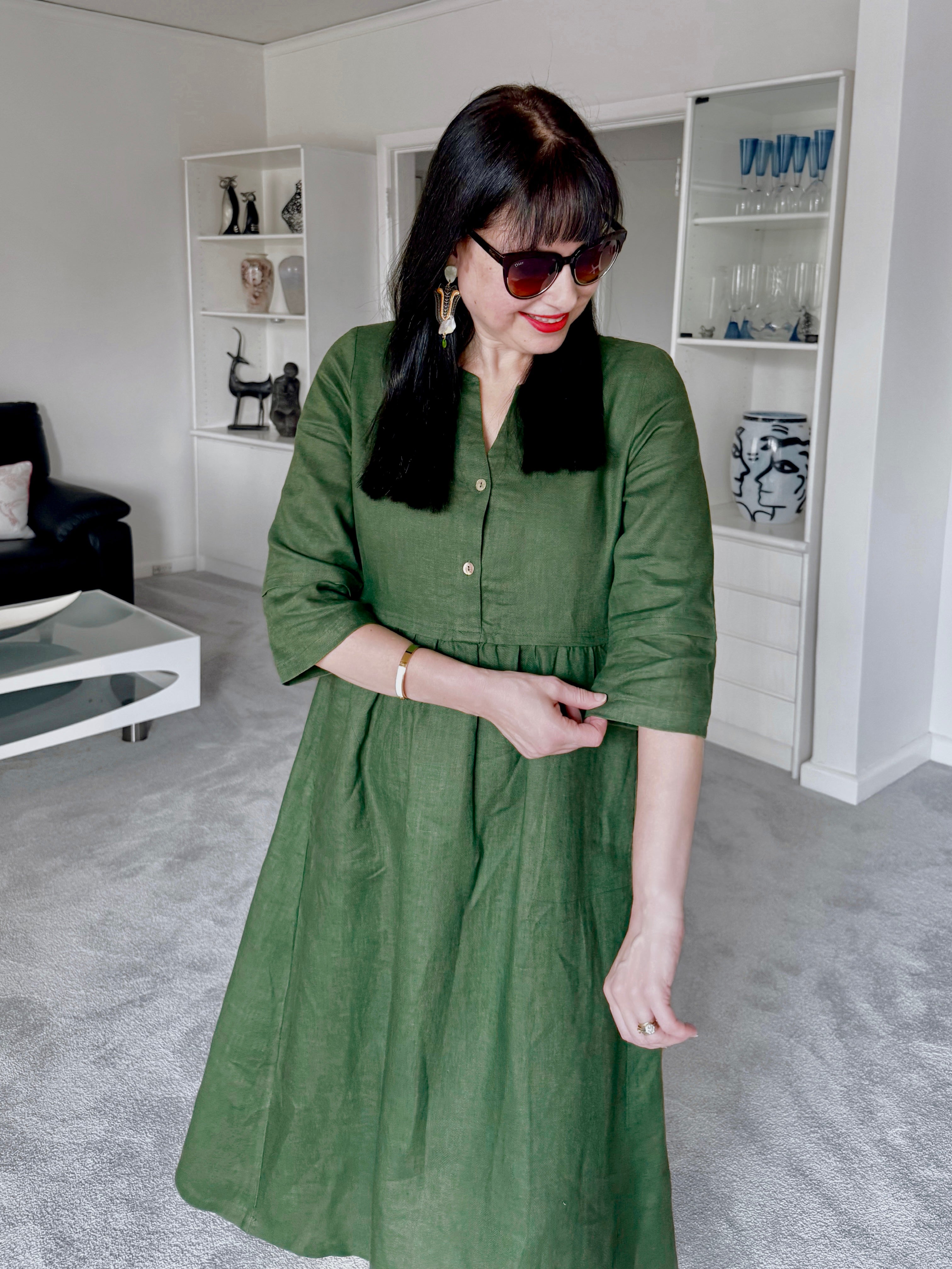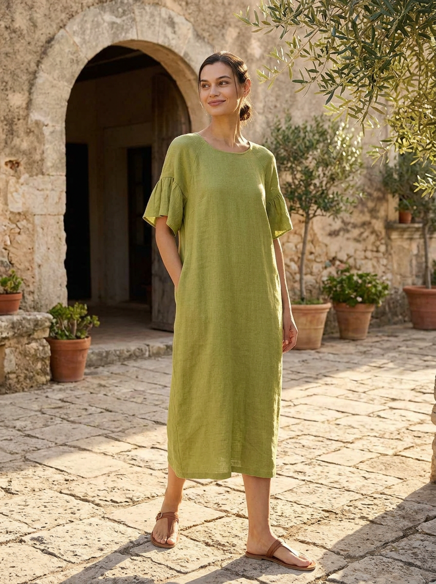 I didn’t expect a linen dress to feel this easy to wear. The deep green color is beautiful and the fabric is breathable even on warm days. The pockets are a lovely bonus, and the relaxed silhouette makes it perfect for walking around the city or meeting friends for coffee.