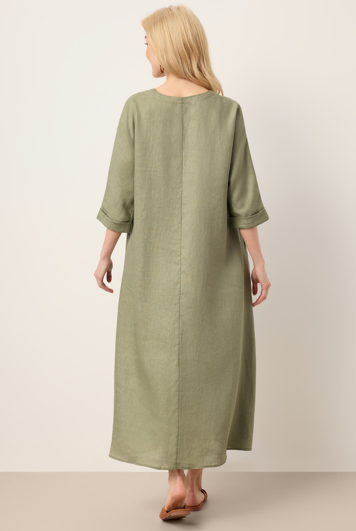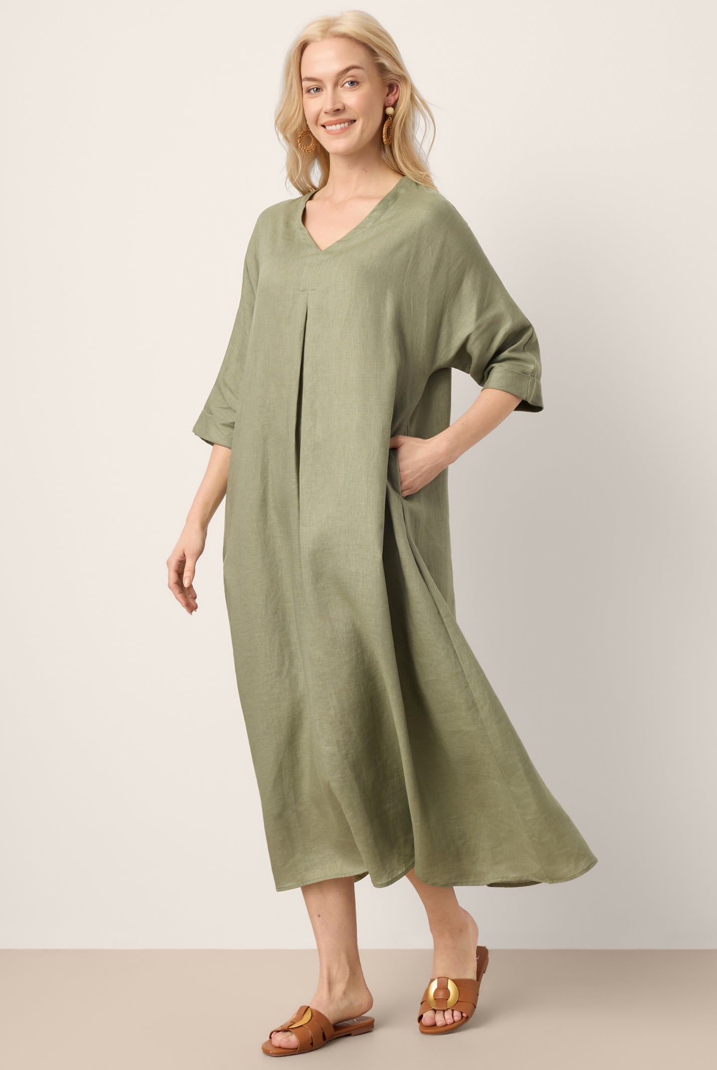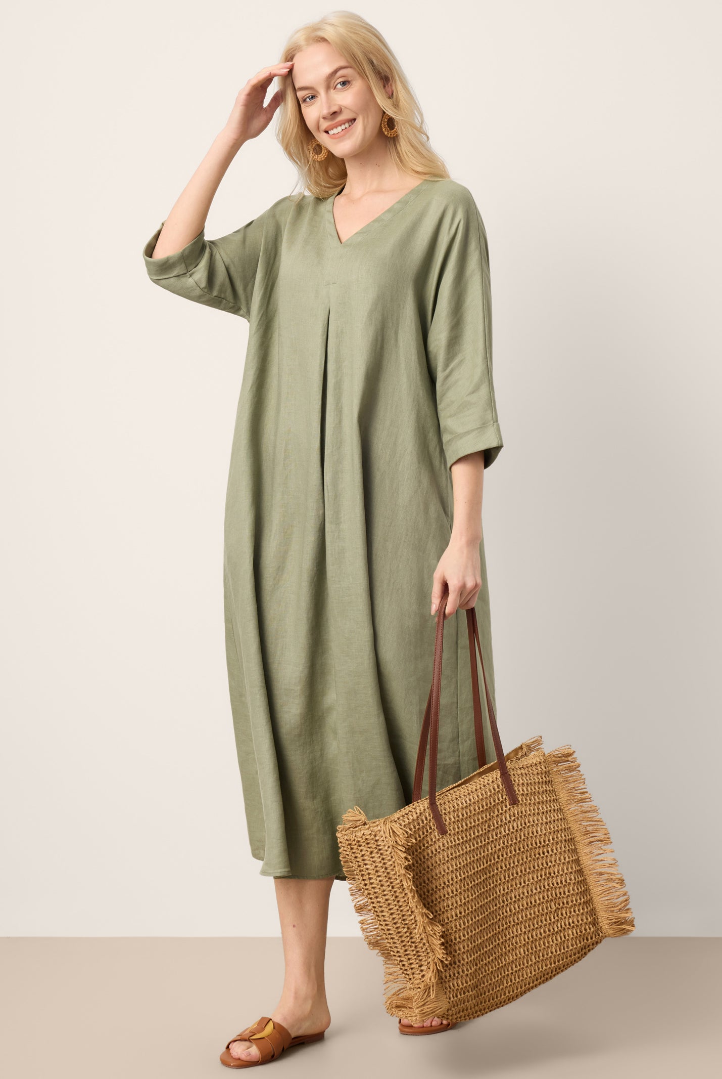 I didn’t expect a linen dress to feel this easy to wear. The deep green color is beautiful and the fabric is breathable even on warm days. The pockets are a lovely bonus, and the relaxed silhouette makes it perfect for walking around the city or meeting friends for coffee.