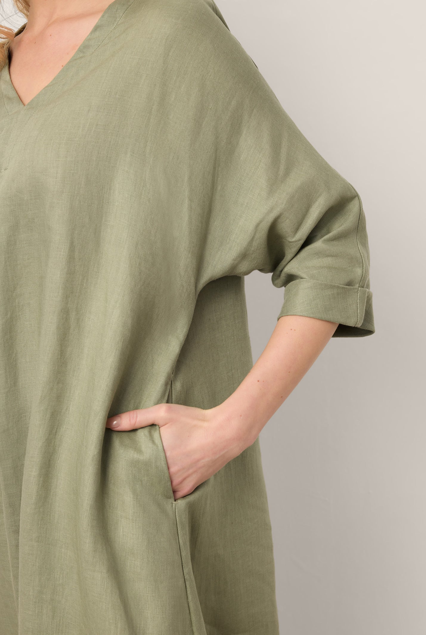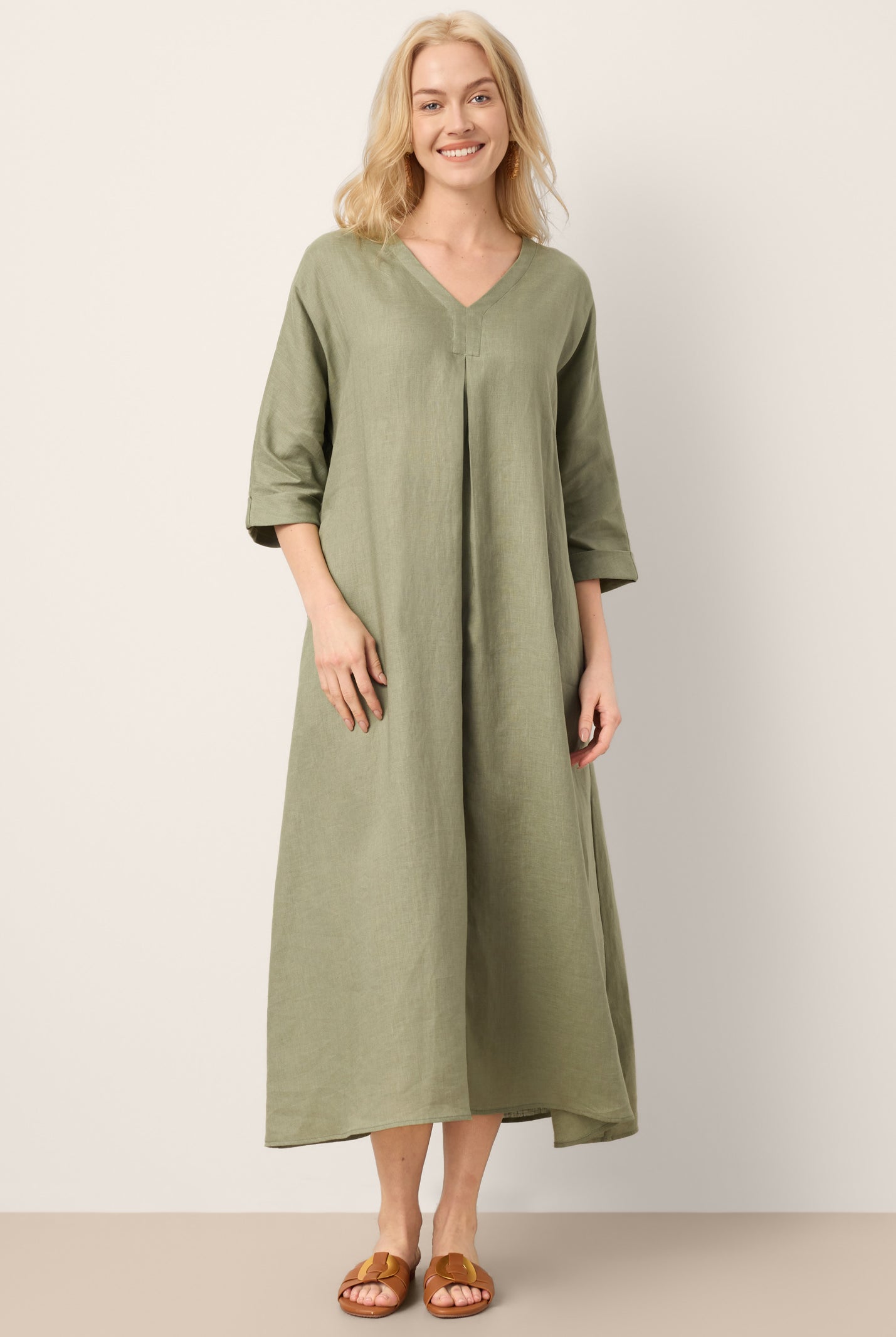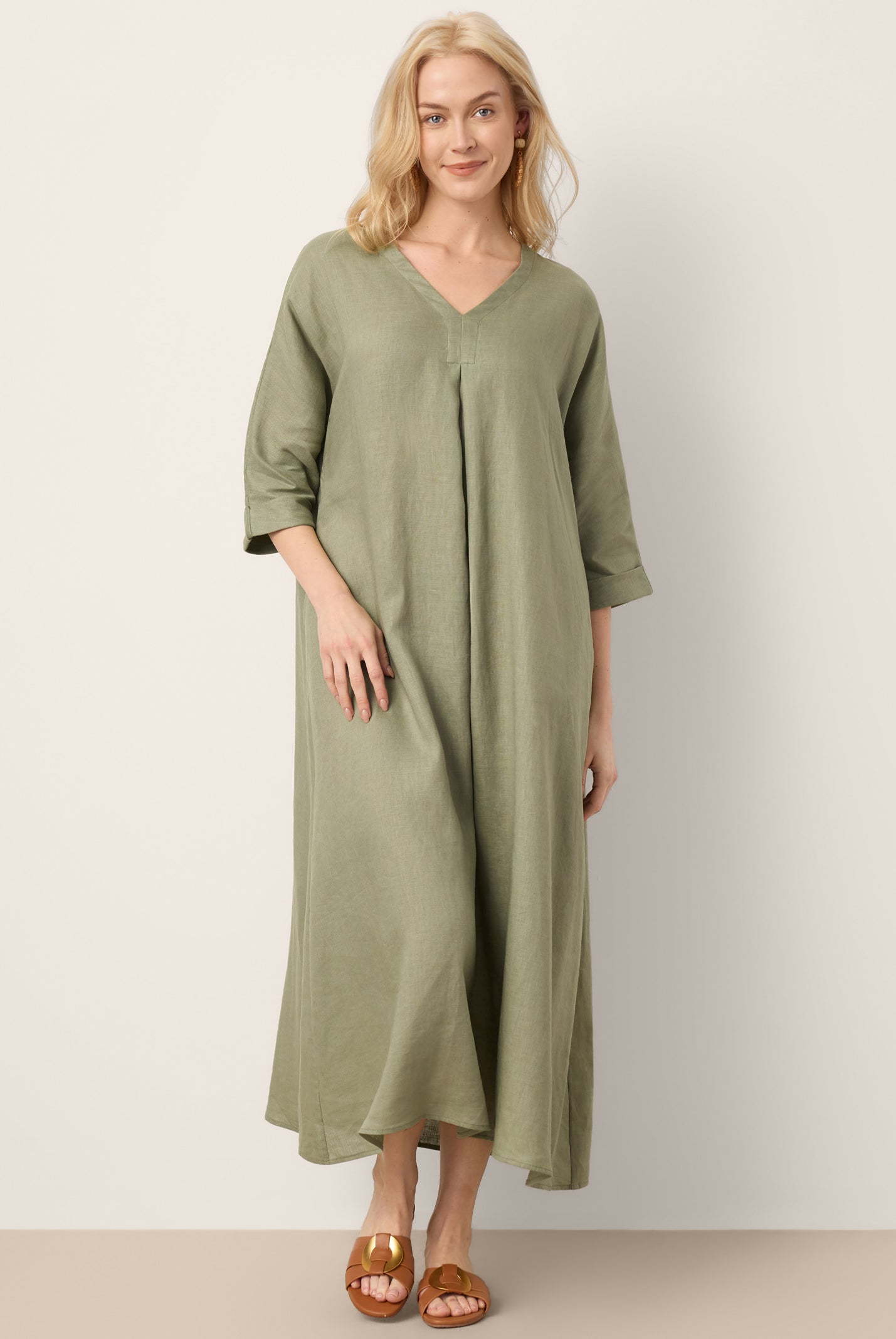 I didn’t expect a linen dress to feel this easy to wear. The deep green color is beautiful and the fabric is breathable even on warm days. The pockets are a lovely bonus, and the relaxed silhouette makes it perfect for walking around the city or meeting friends for coffee.