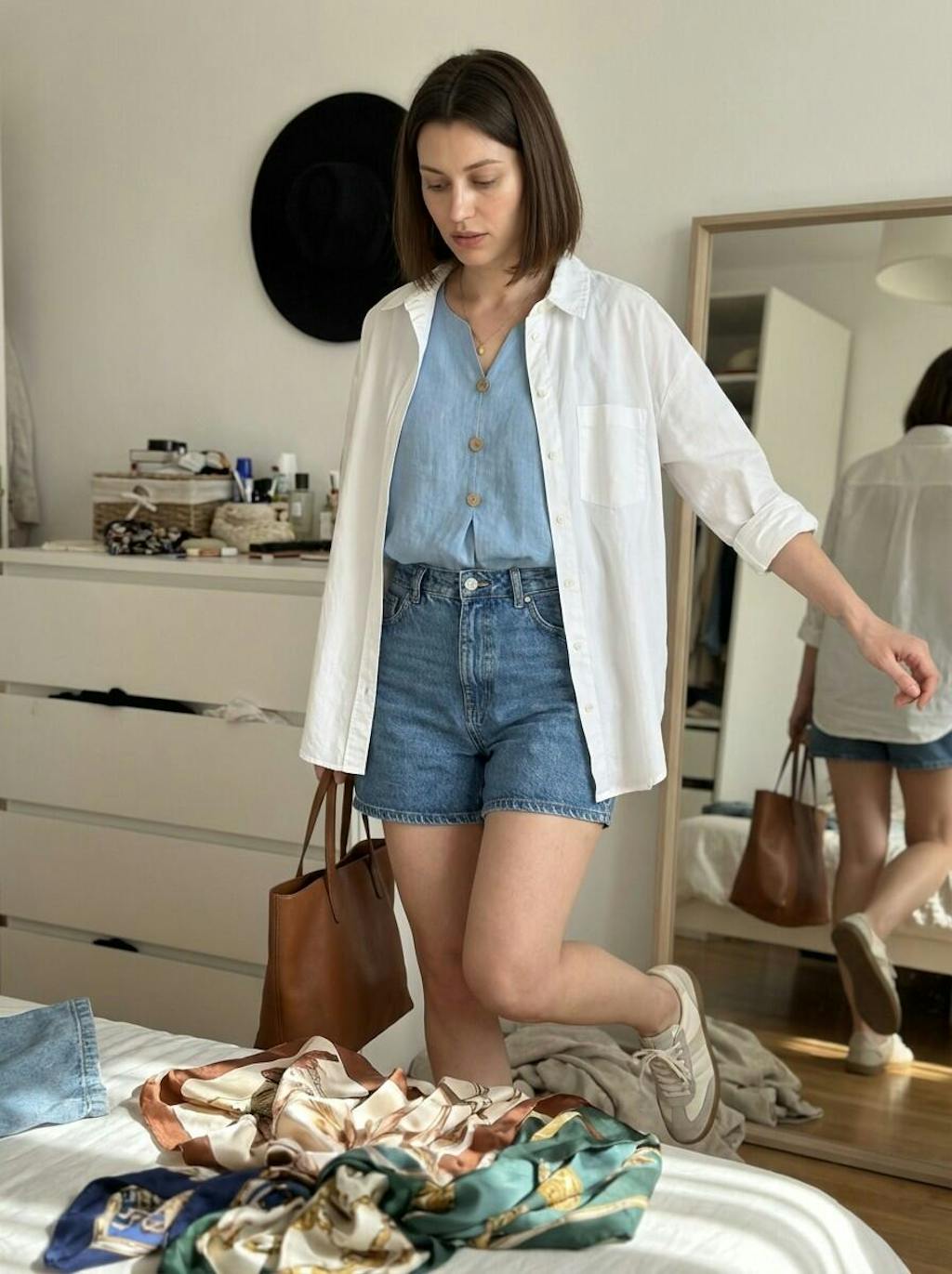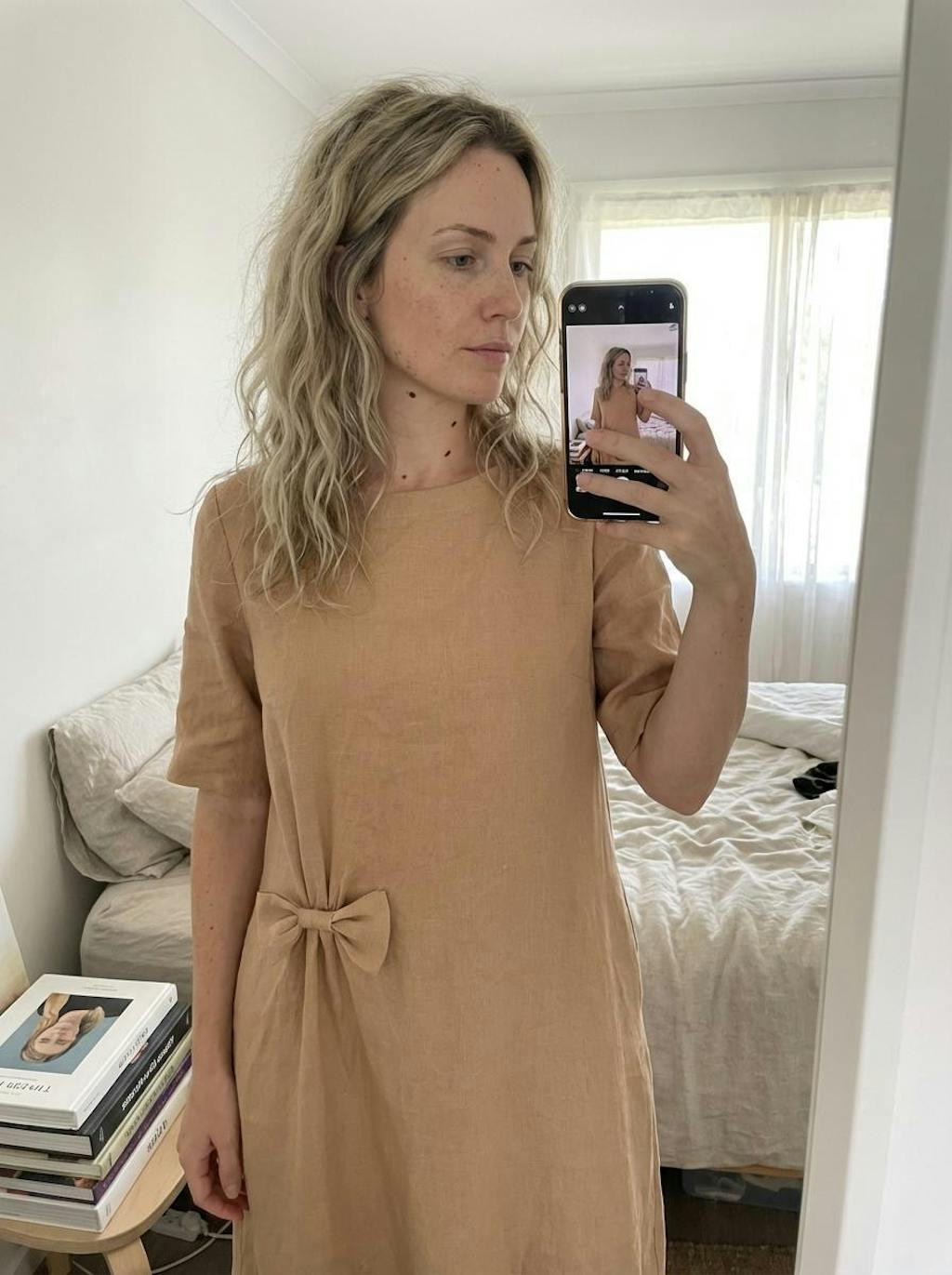 Obsessed is an understatement! Even in my messy bedroom mirror, this linen-textured beauty looks incredibly high-end. The bow detail is the perfect feminine touch to the relaxed silhouette. It's breathable, chic, and fits my medium frame perfectly. Total stunning quality for an effortless, trendy look!