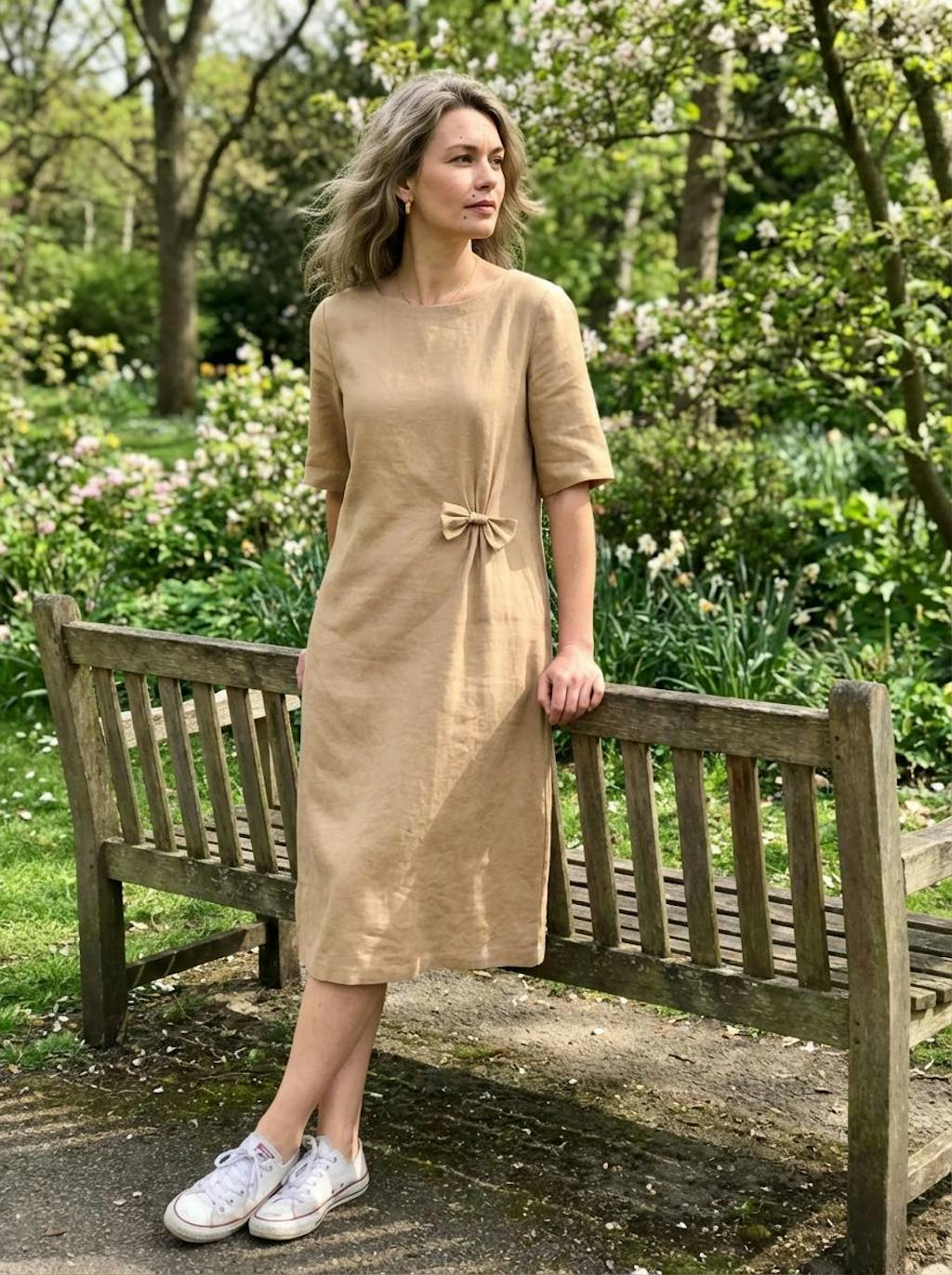 This sand-colored linen dress is perfect for peaceful park walks. The A-line shape flows beautifully and the hidden pockets are so convenient. The fabric is lightweight and breathable - kept me cool even on warmer days.