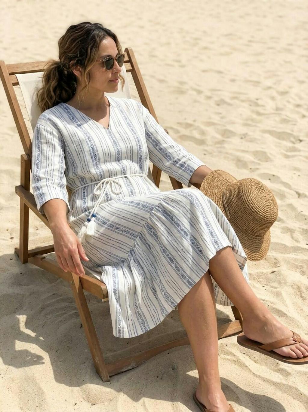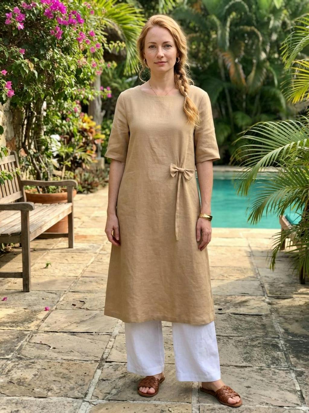 Perfect for slow afternoons at the resort. The sand linen feels breathable and authentic, though the color is a tiny bit darker than my screen showed. The M fits true to size, skimming my frame beautifully without being tight. Love the hidden pockets! It feels very healing and natural, exactly what I wanted for this trip.