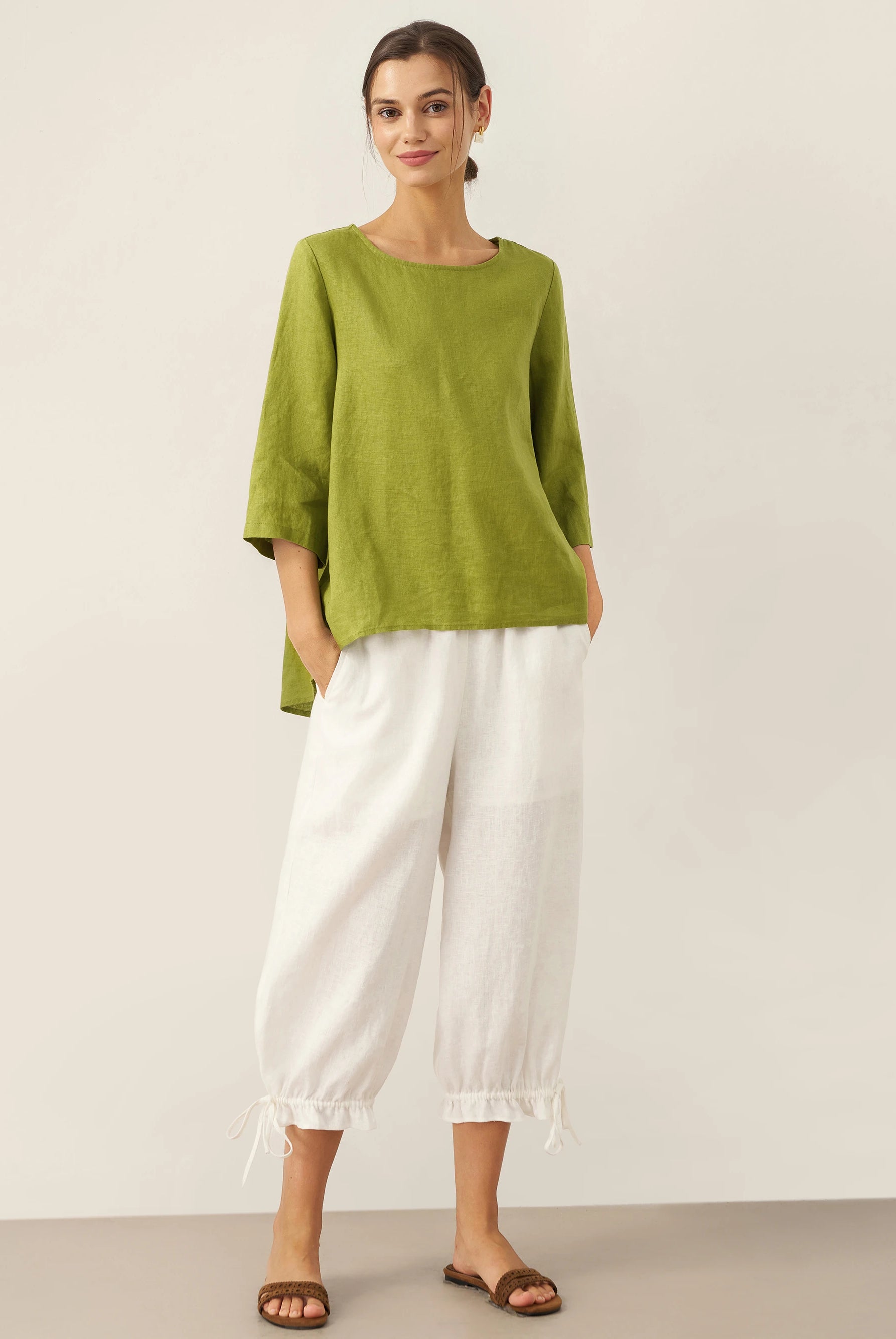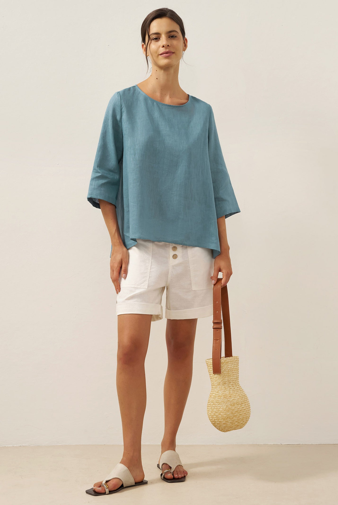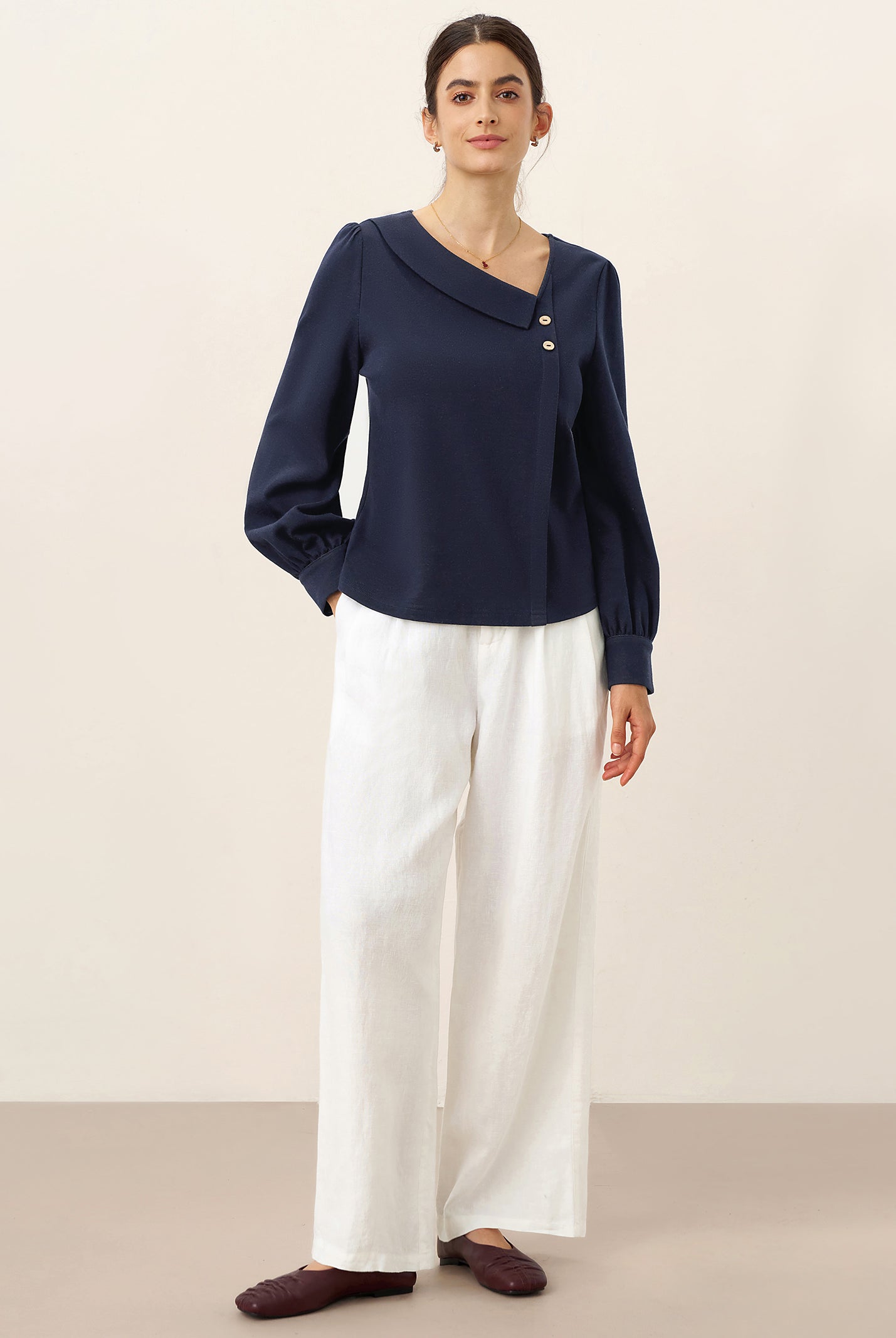 I paired my blue blouse with these brown linen trousers and loved the look. The color contrast feels very chic and on-trend, while the fit is comfortable and flattering. Definitely a versatile piece in my wardrobe. Height: 165cm, Bust: 95cm, Waist: 81cm, Hips: 99cm, Size: M