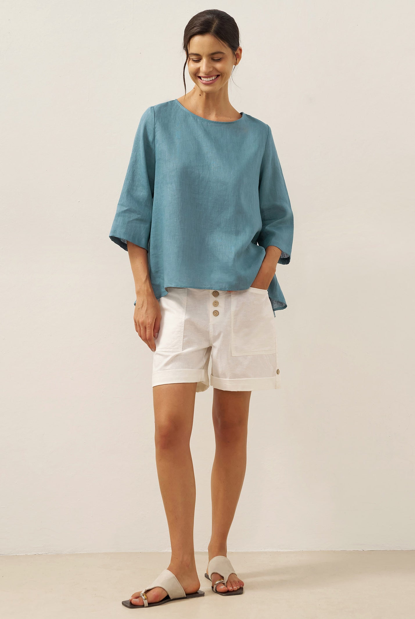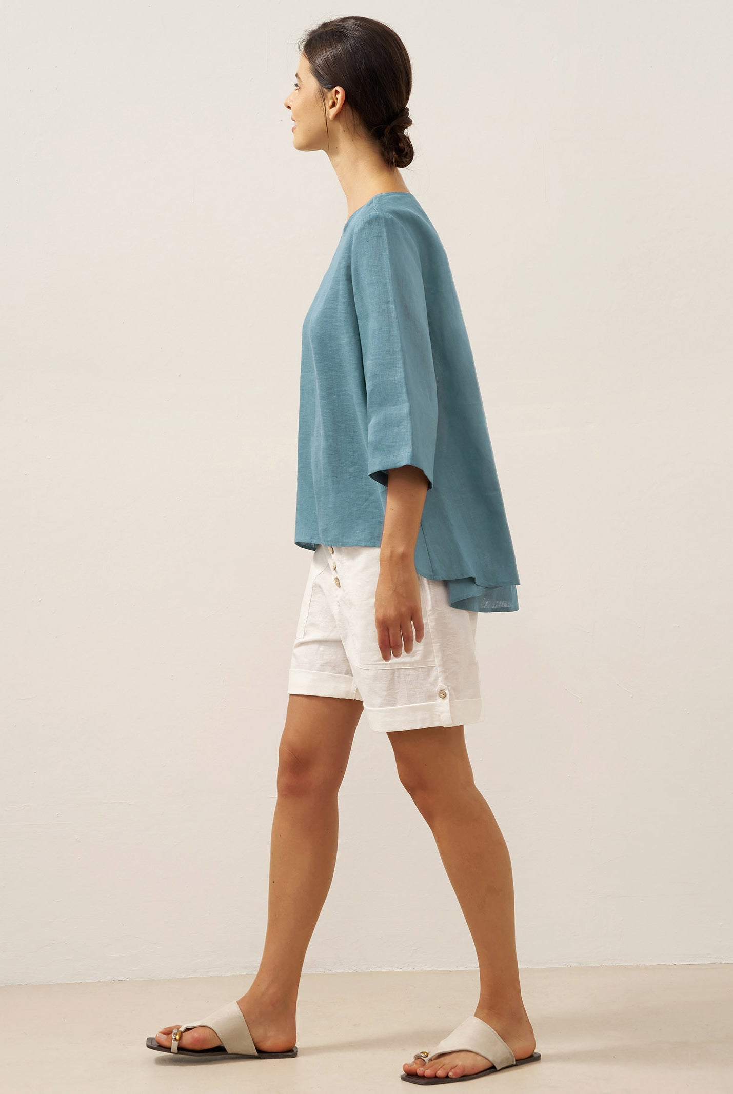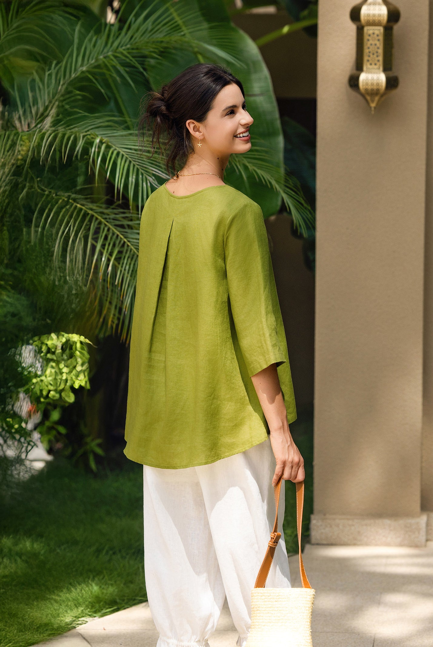 I paired my blue blouse with these brown linen trousers and loved the look. The color contrast feels very chic and on-trend, while the fit is comfortable and flattering. Definitely a versatile piece in my wardrobe. Height: 165cm, Bust: 95cm, Waist: 81cm, Hips: 99cm, Size: M