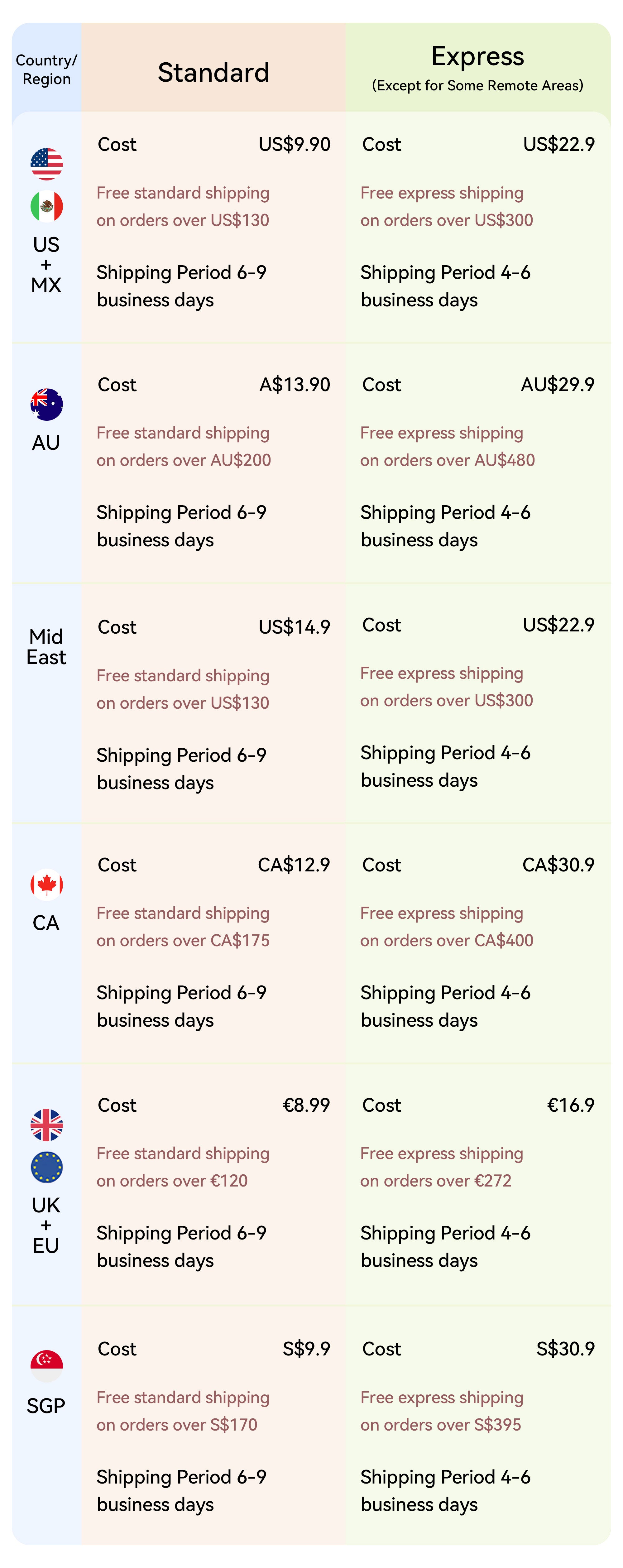 *Please note that At checkout, we'll determine your eligibility for standard or express free shipping based on your total order amount. Free shipping calculations exclude shipping insurance and additional fees.