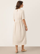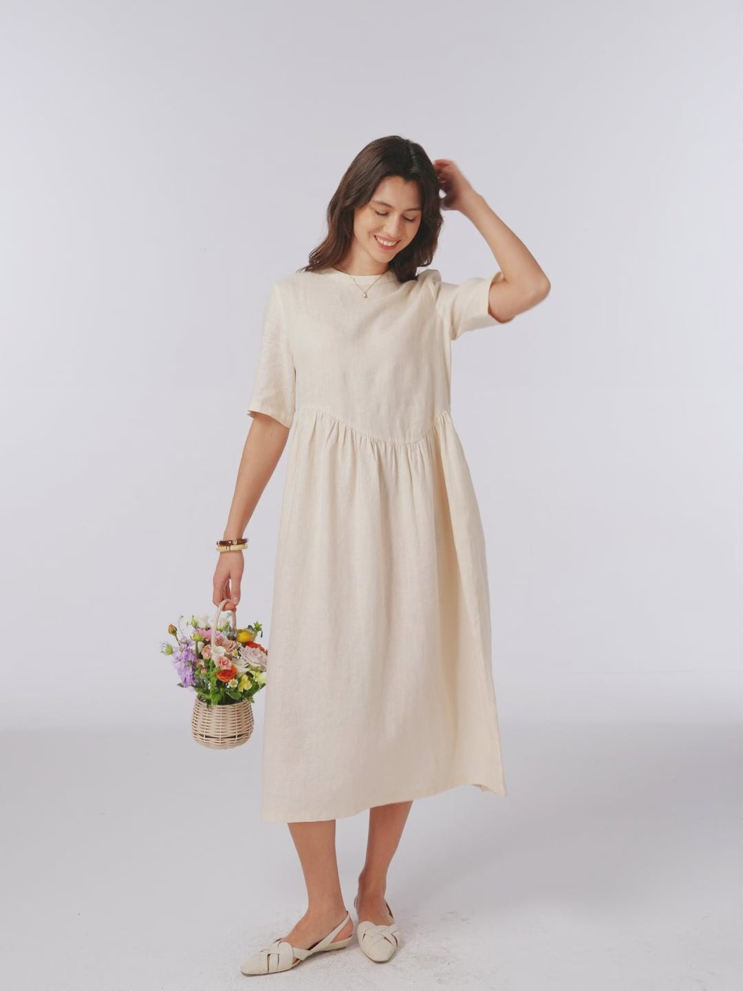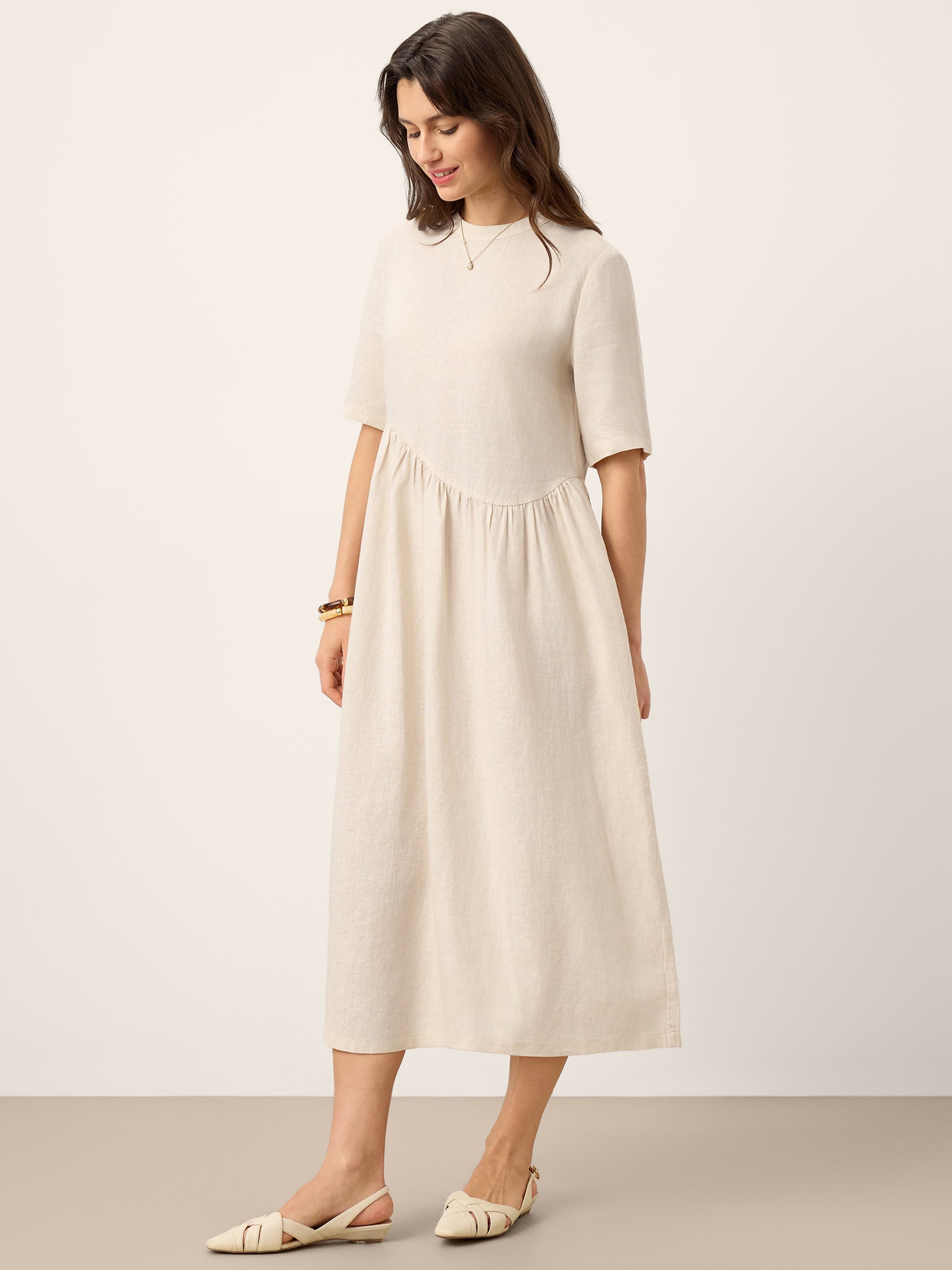 100% Linen Arch-Seam Fluid Midi Dress EUDORA