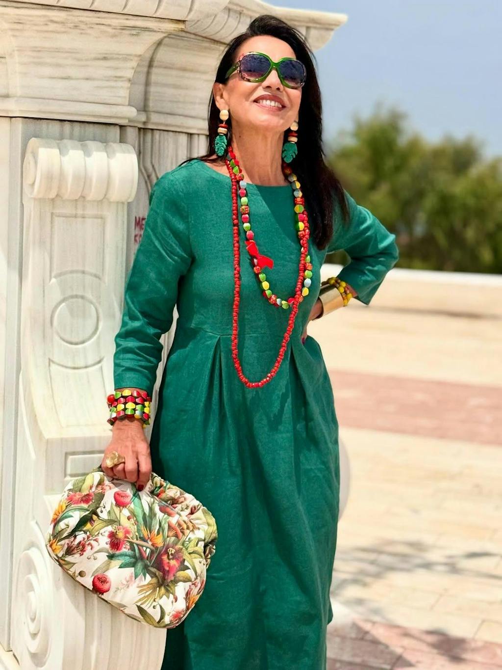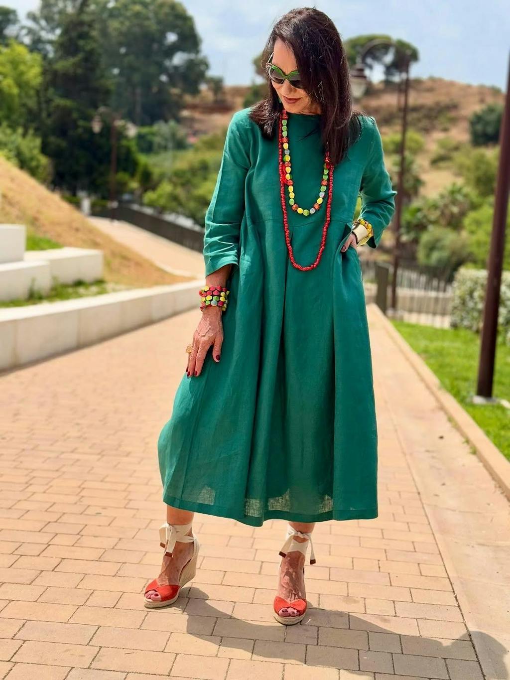 100% Linen Bateau Neck Pleated Maxi Dress ABIGAIL