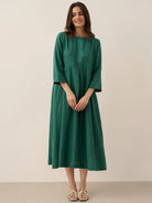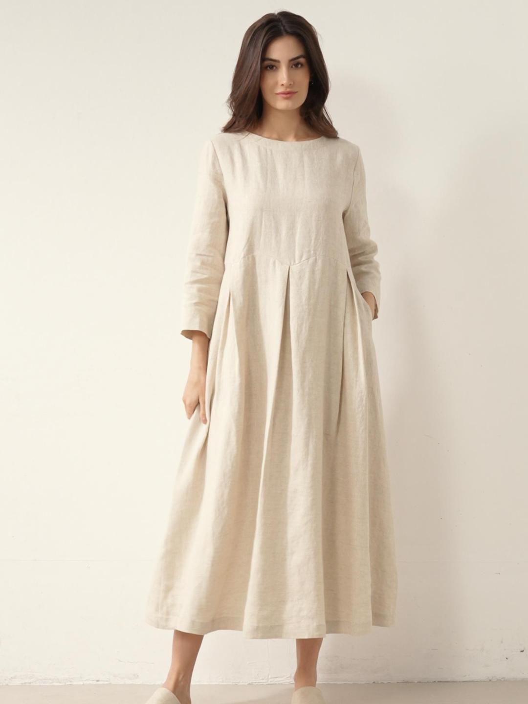 100% Linen Bateau Neck Pleated Maxi Dress ABIGAIL