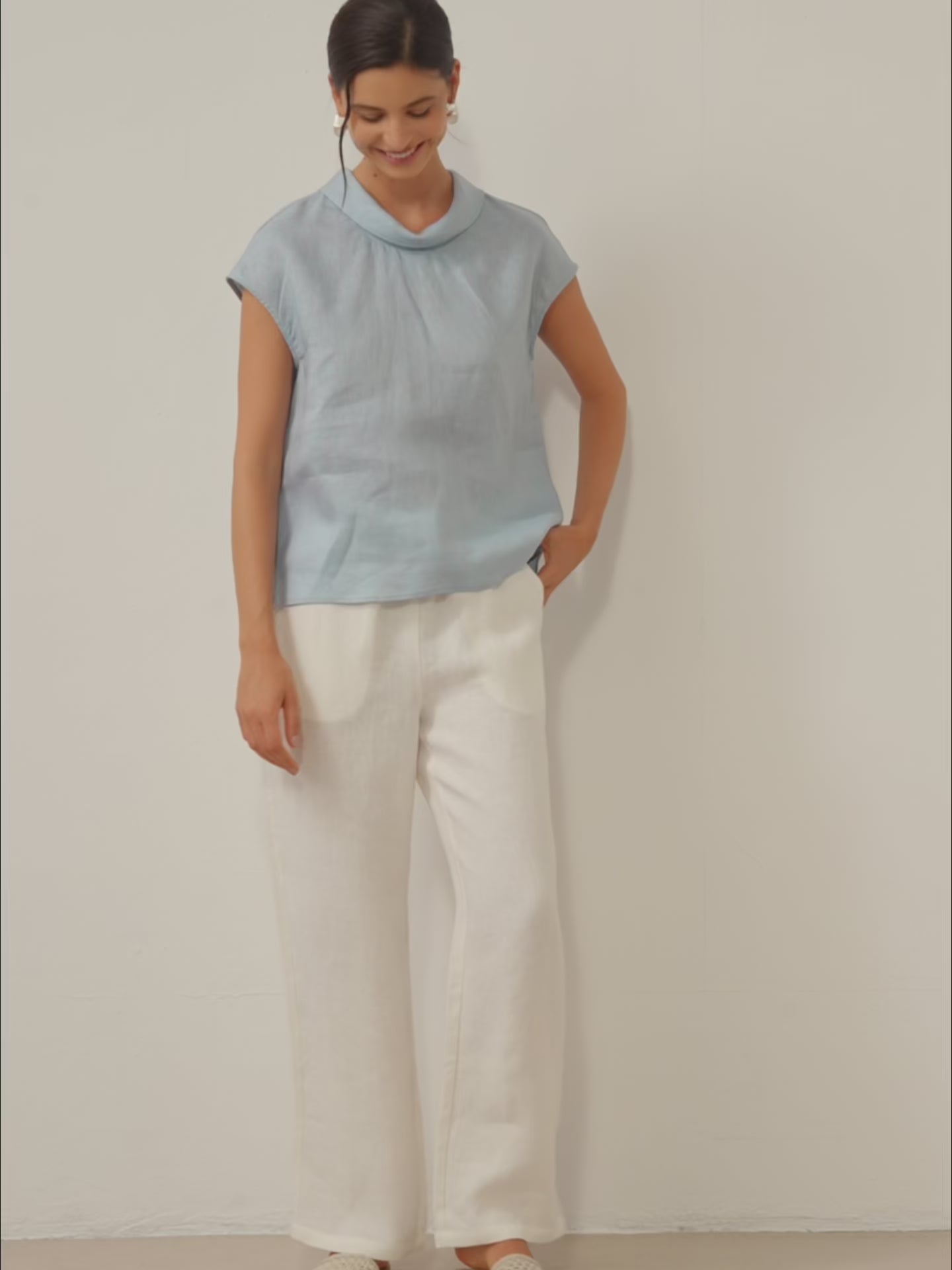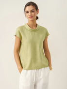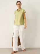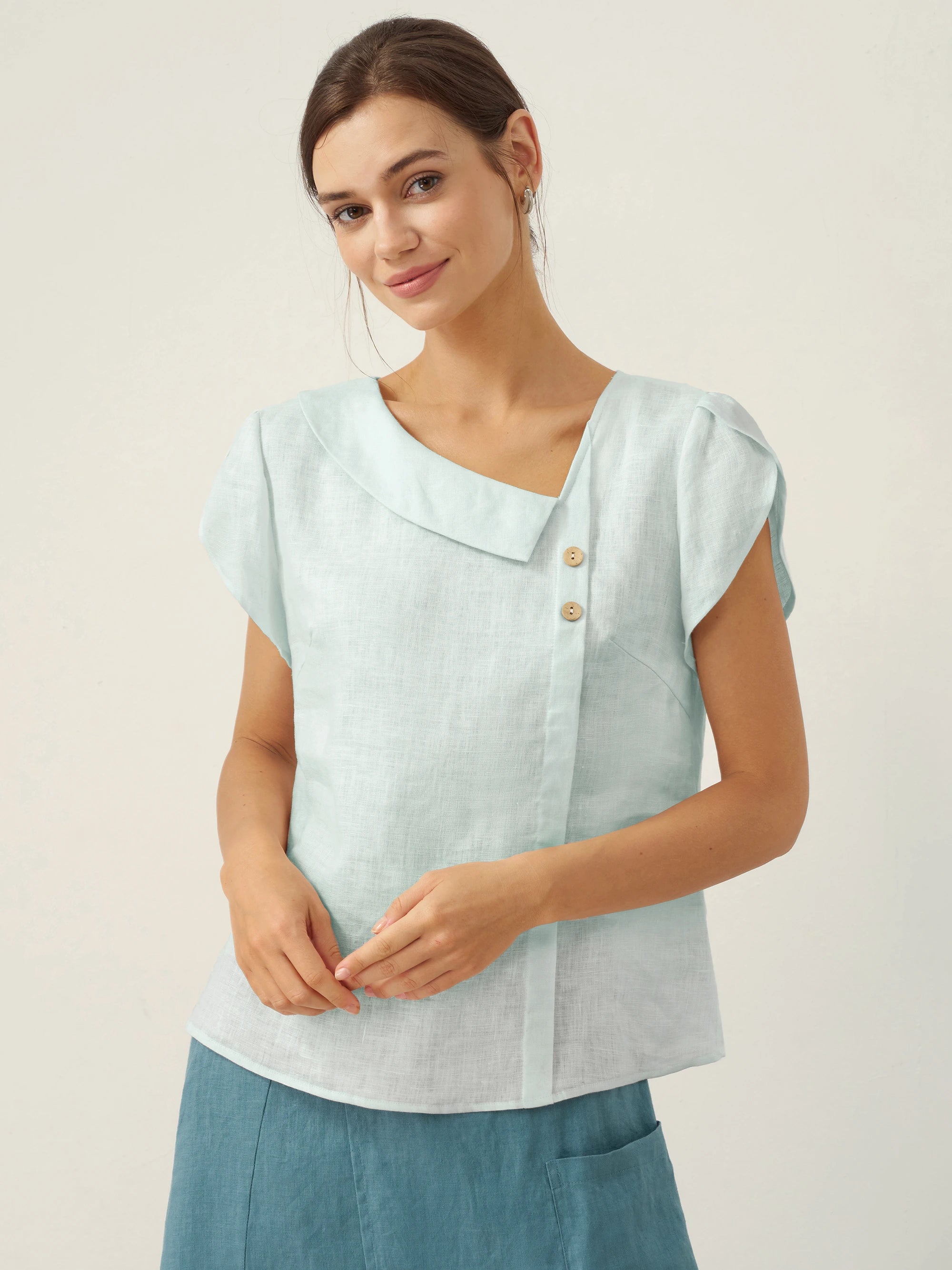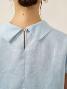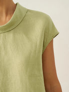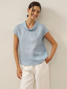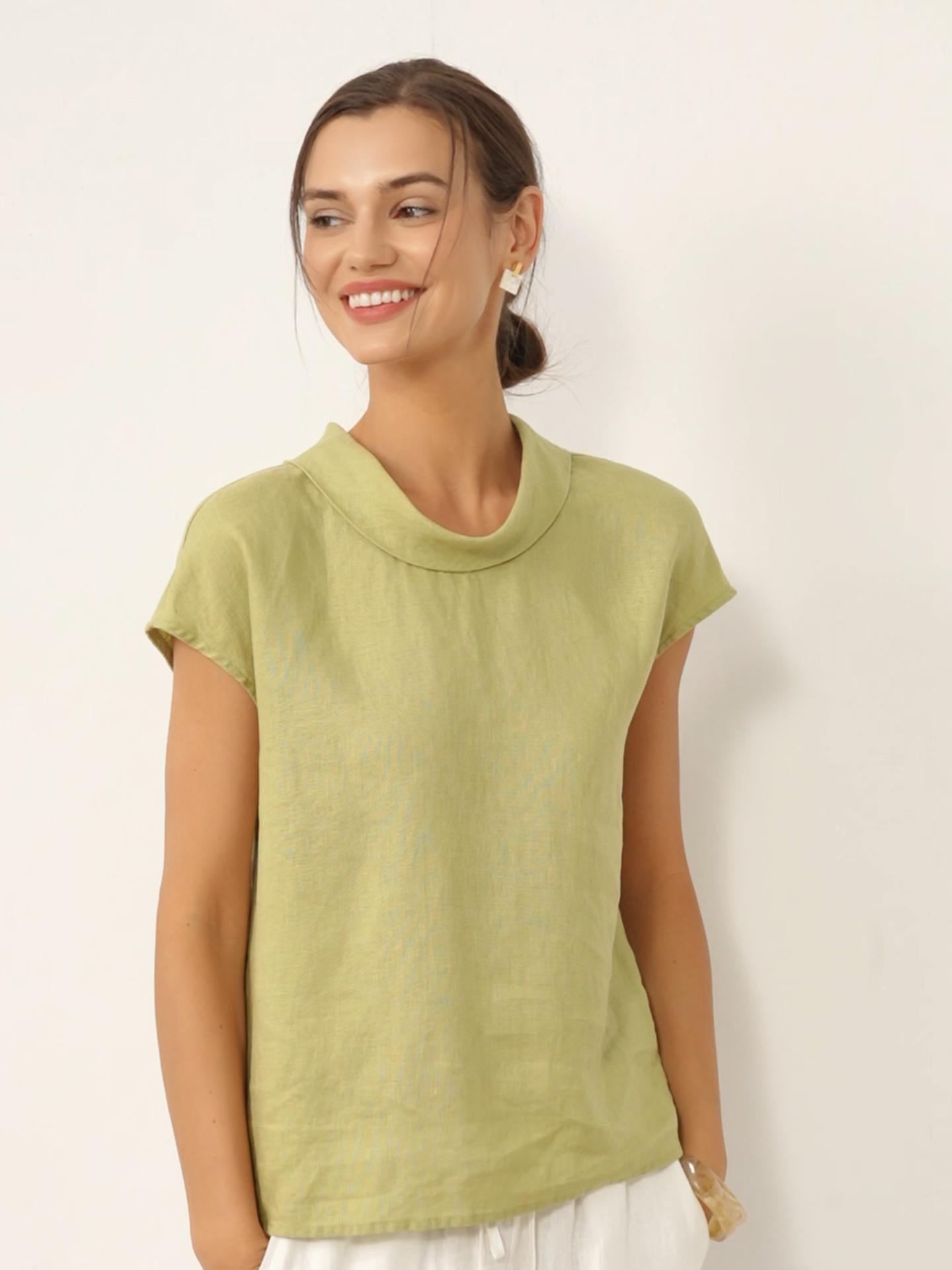 100% Linen Cap Sleeve Soft-Fold Collar Top YVONNE
