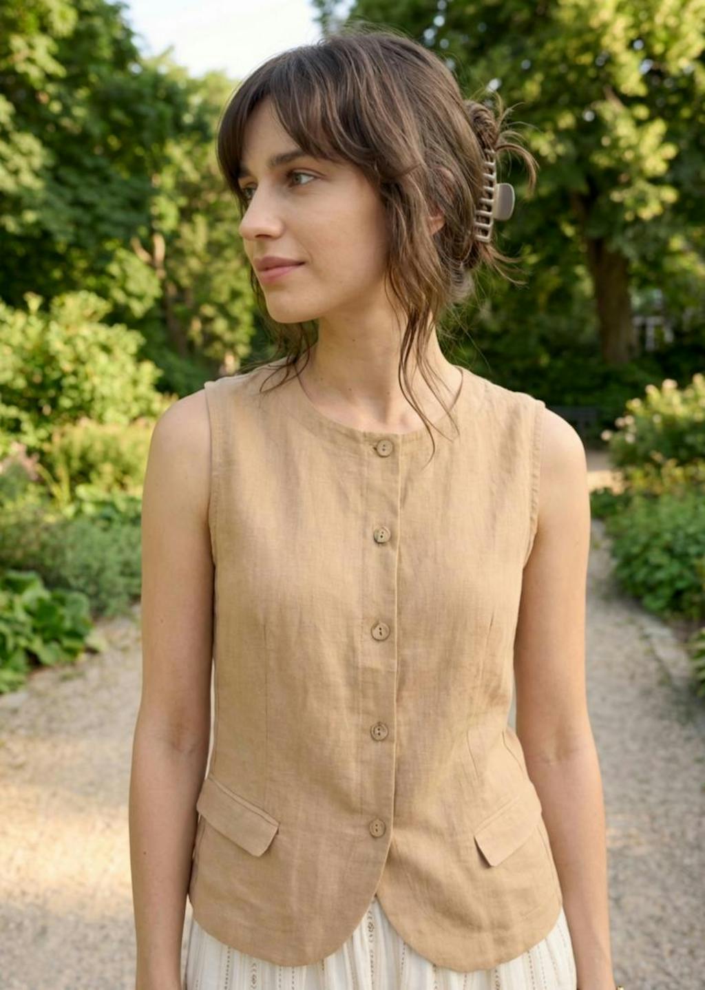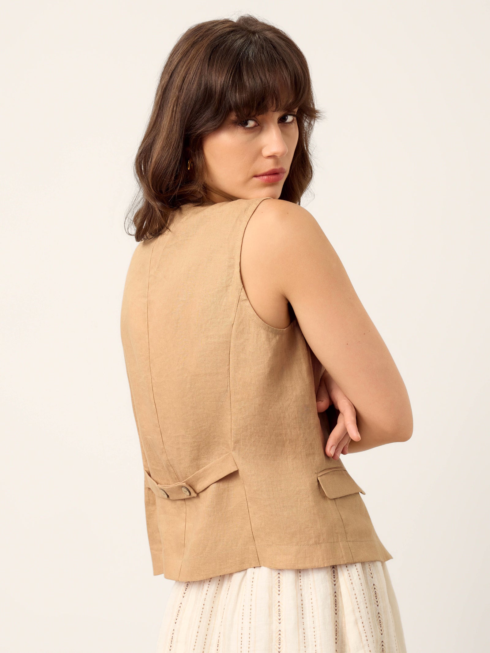 100% Linen Cinch-Back Sleeveless Tailored Top BRONWYN
