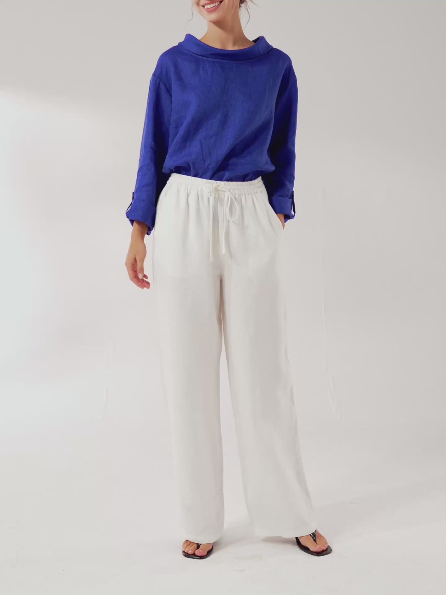 Made from pure flax, our linen lacks elasticity, resulting in natural wrinkles when worn or slept in. Embrace the 'lived-in luxe' aesthetic — a deliberate, carefree rumpled look that exudes quality. Our linen is garment-washed before it gets to you though, so you should experience minimal shrinkage.