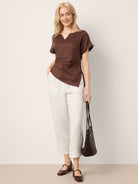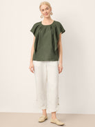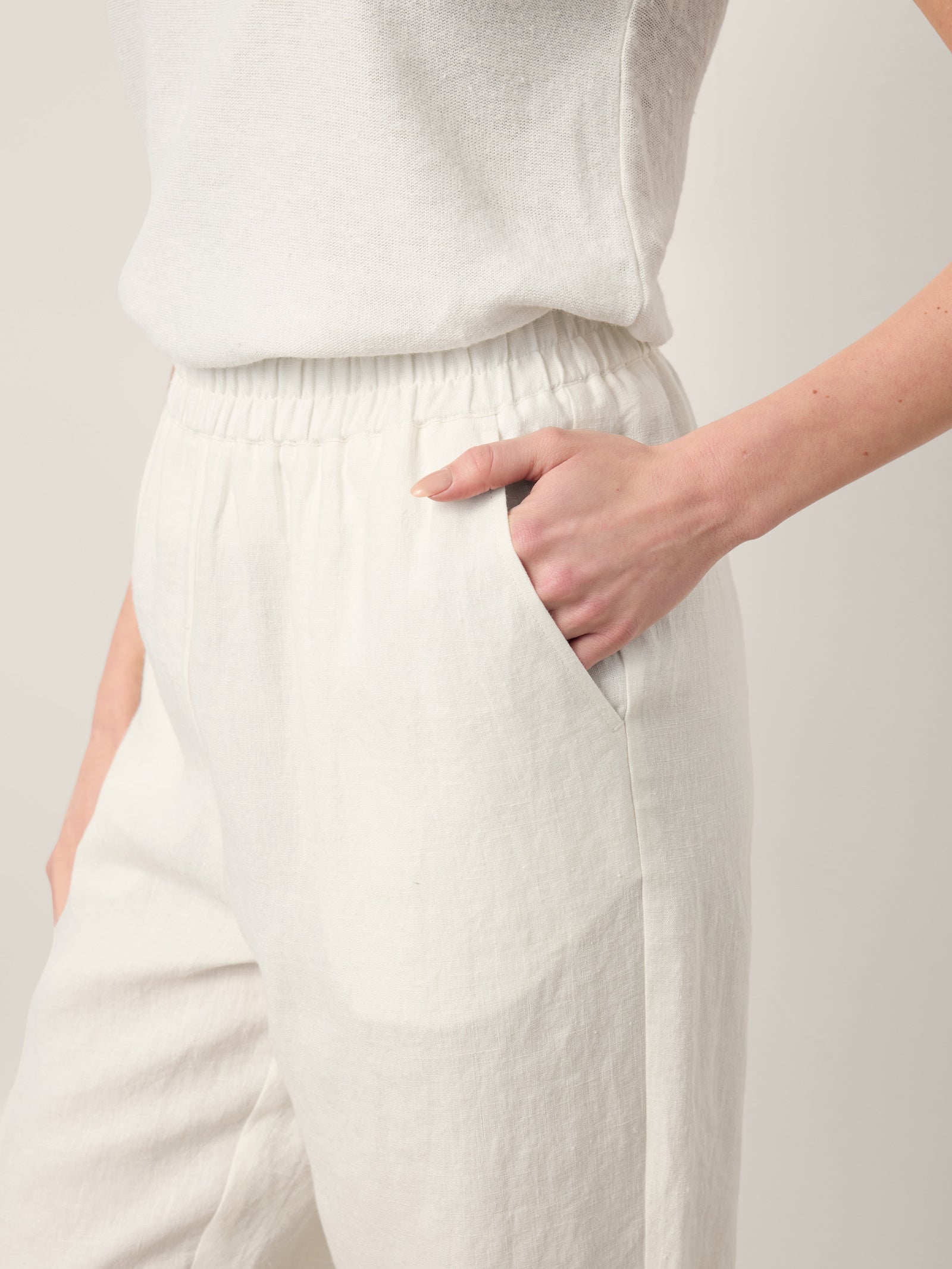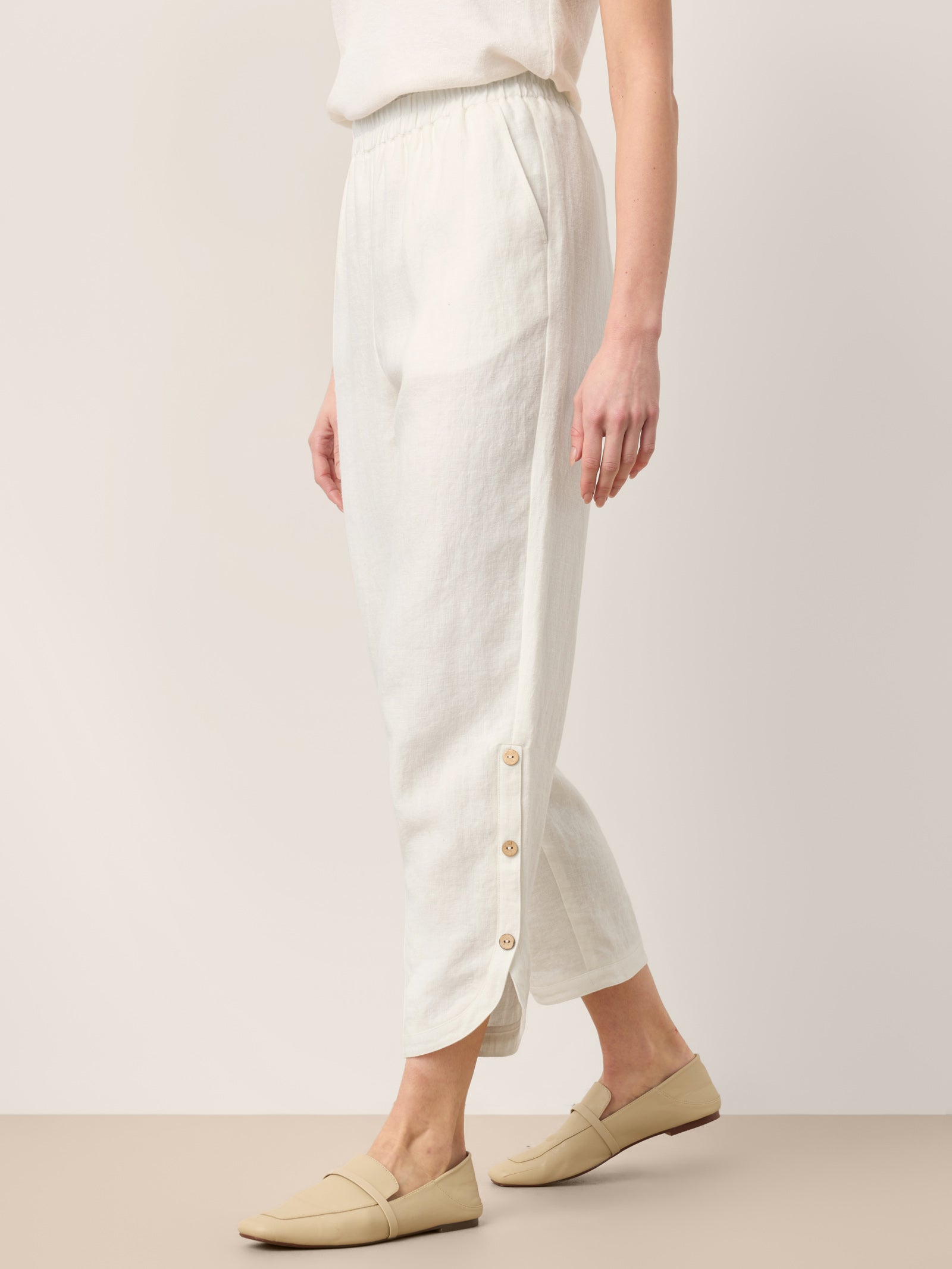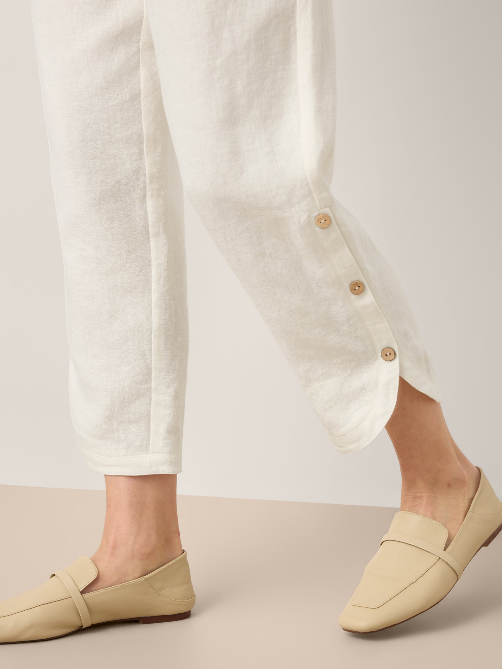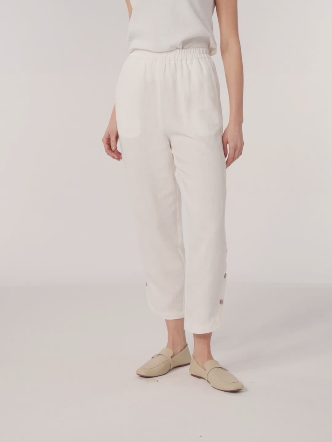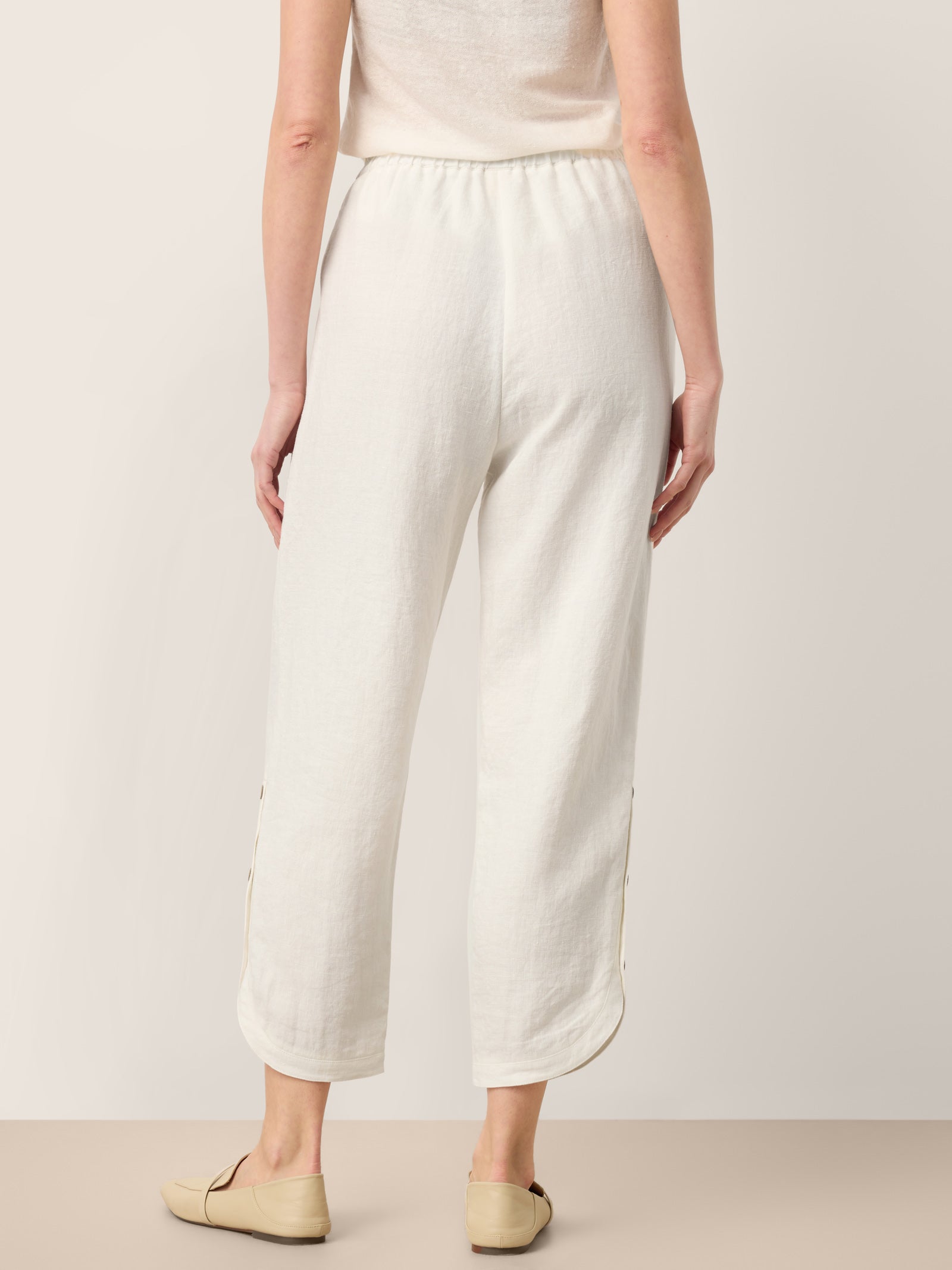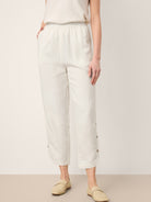 100% Linen Double Pleat Button Hem Pull-On Pants LINDSEY