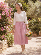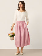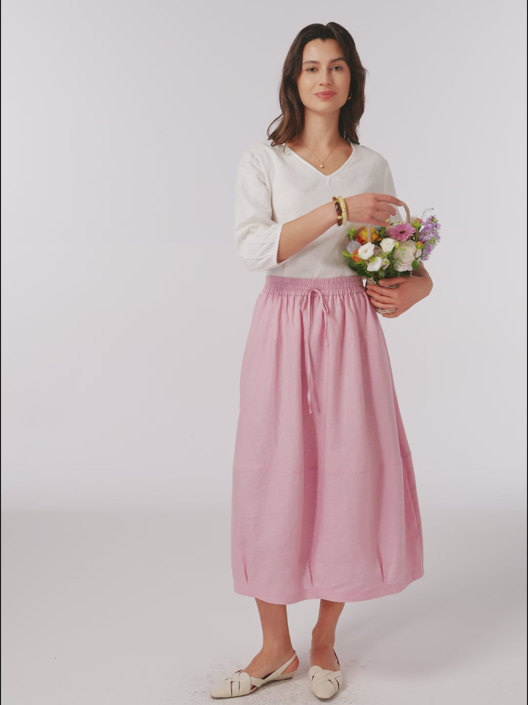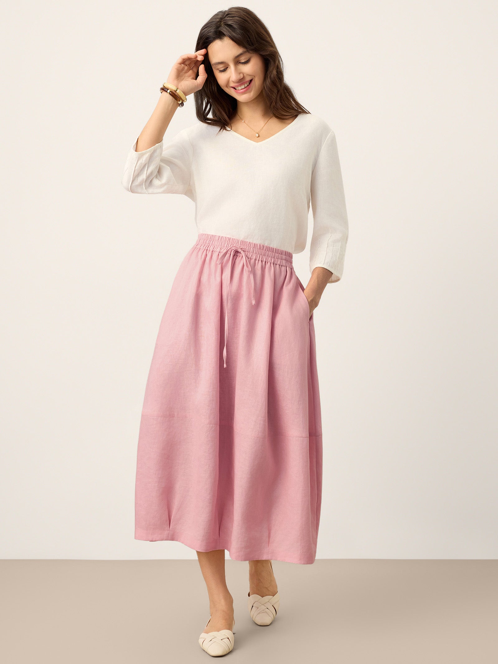 100% Linen Drawstring Lantern Maxi Skirt with Pockets ROXANNE