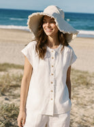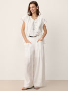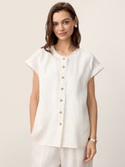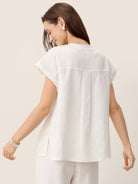 100% Linen Frayed-Trim Drop-Shoulder Top INDIRA