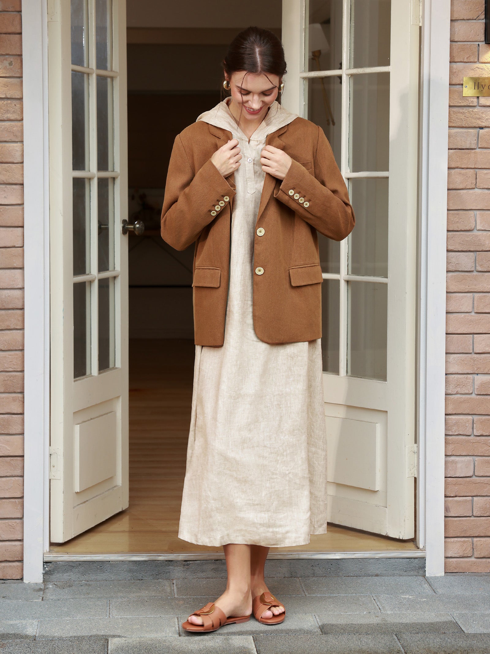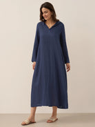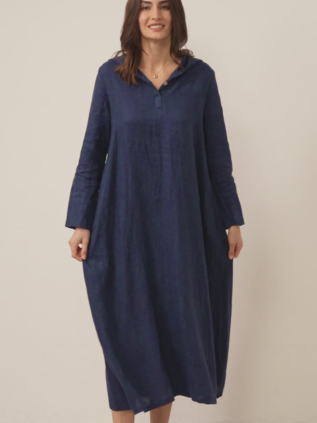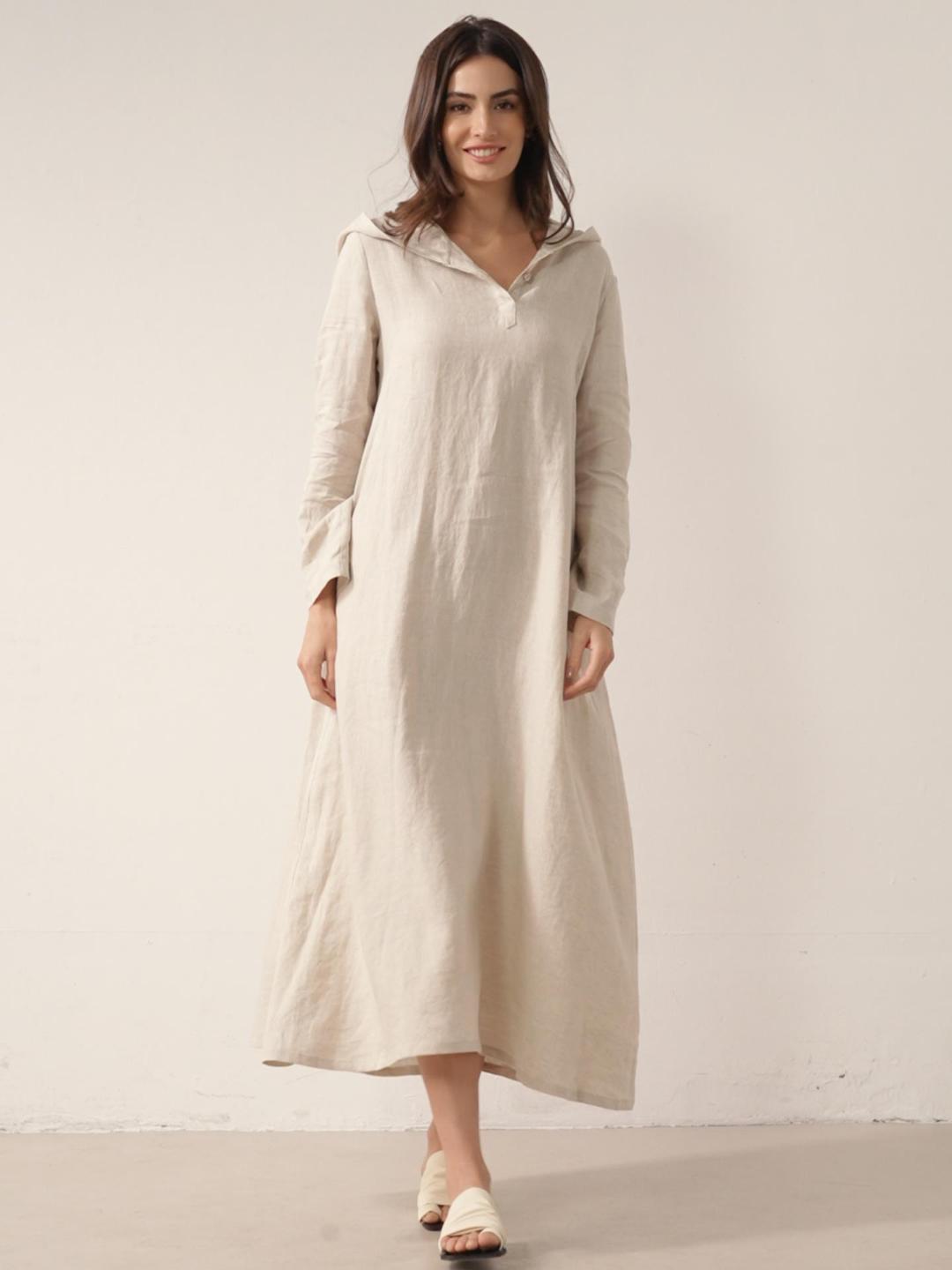 100% Linen Hooded Pullover Maxi Dress REBECCA