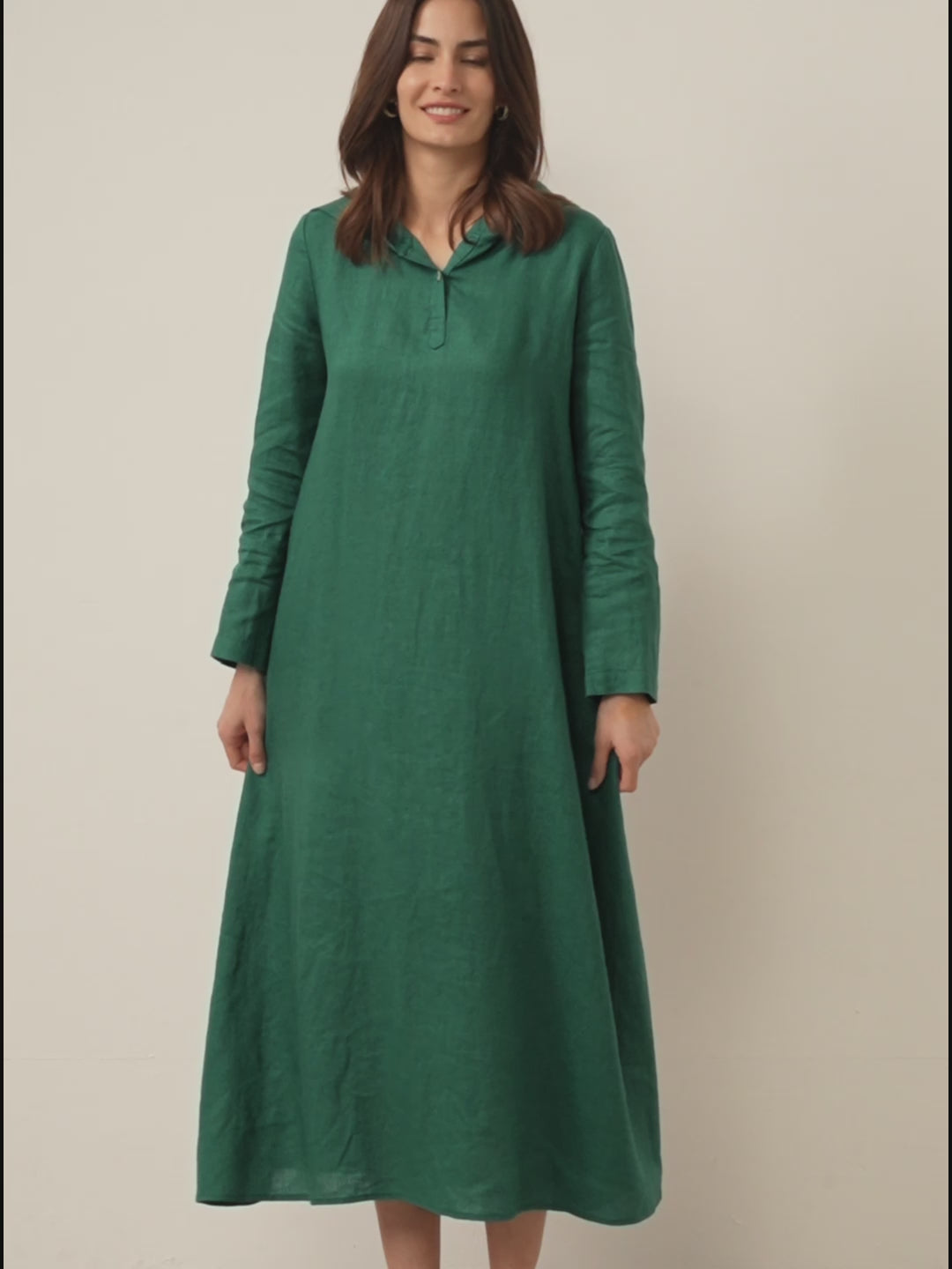 Long sleeves and A-line silhouette combine beautifully in this maxi dress, featuring a regular fit with a shoulder seam cut.