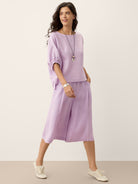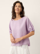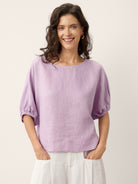 100% Linen Lace Inset Sculpted Cuff Top QUILLA