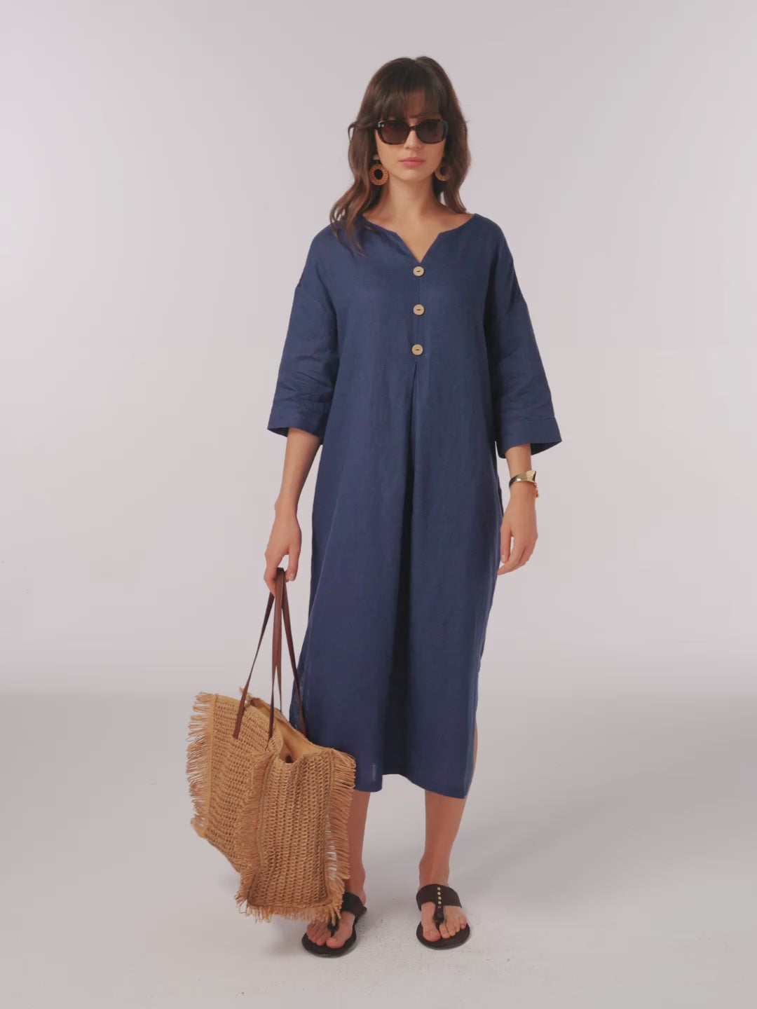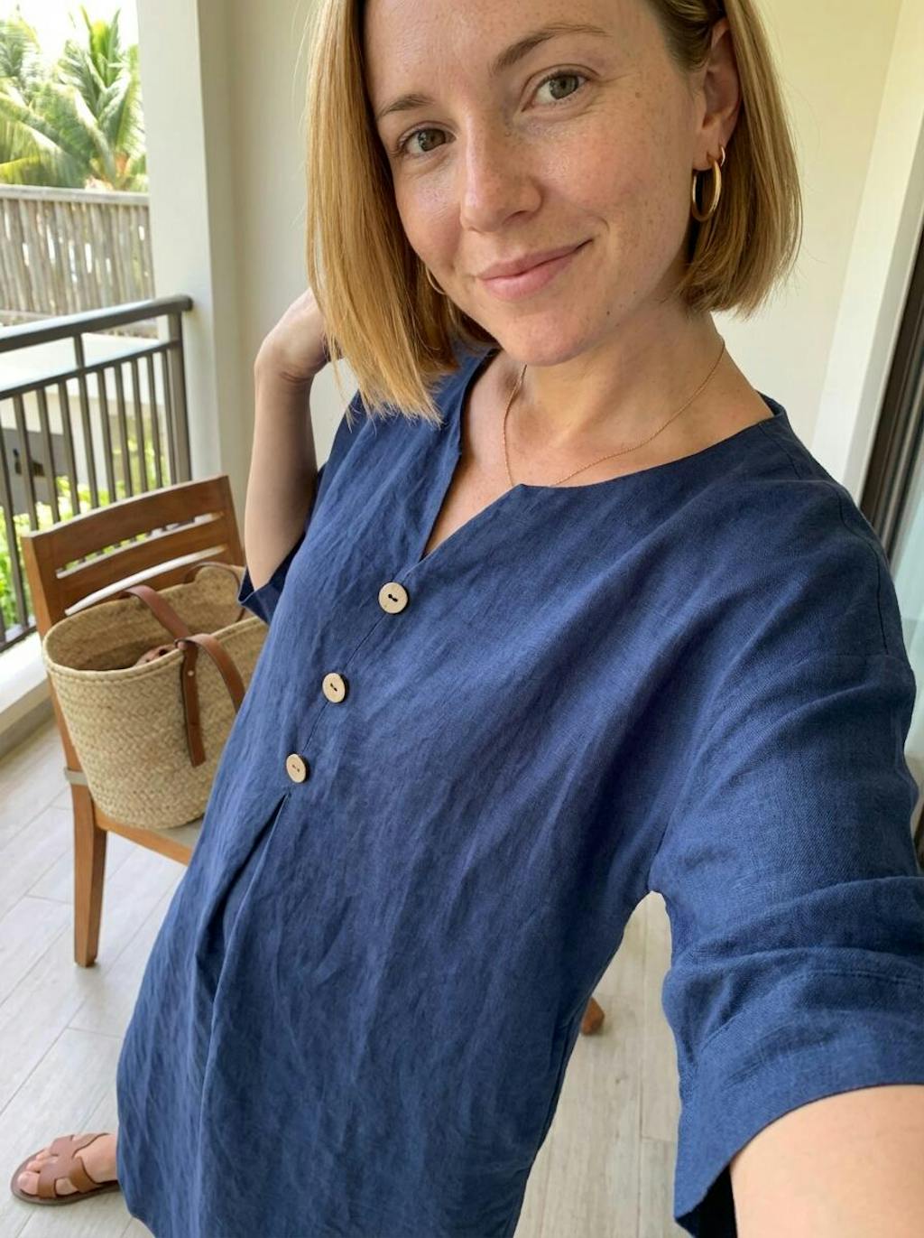 - Artisanal Coconut Button Placket: Three natural coconut buttons and subtle pleats create texture and forgiving space for all body types
