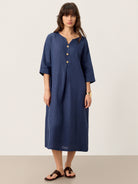 100% Linen Notch Neck Inverted Pleat Maxi Dress MATILDE