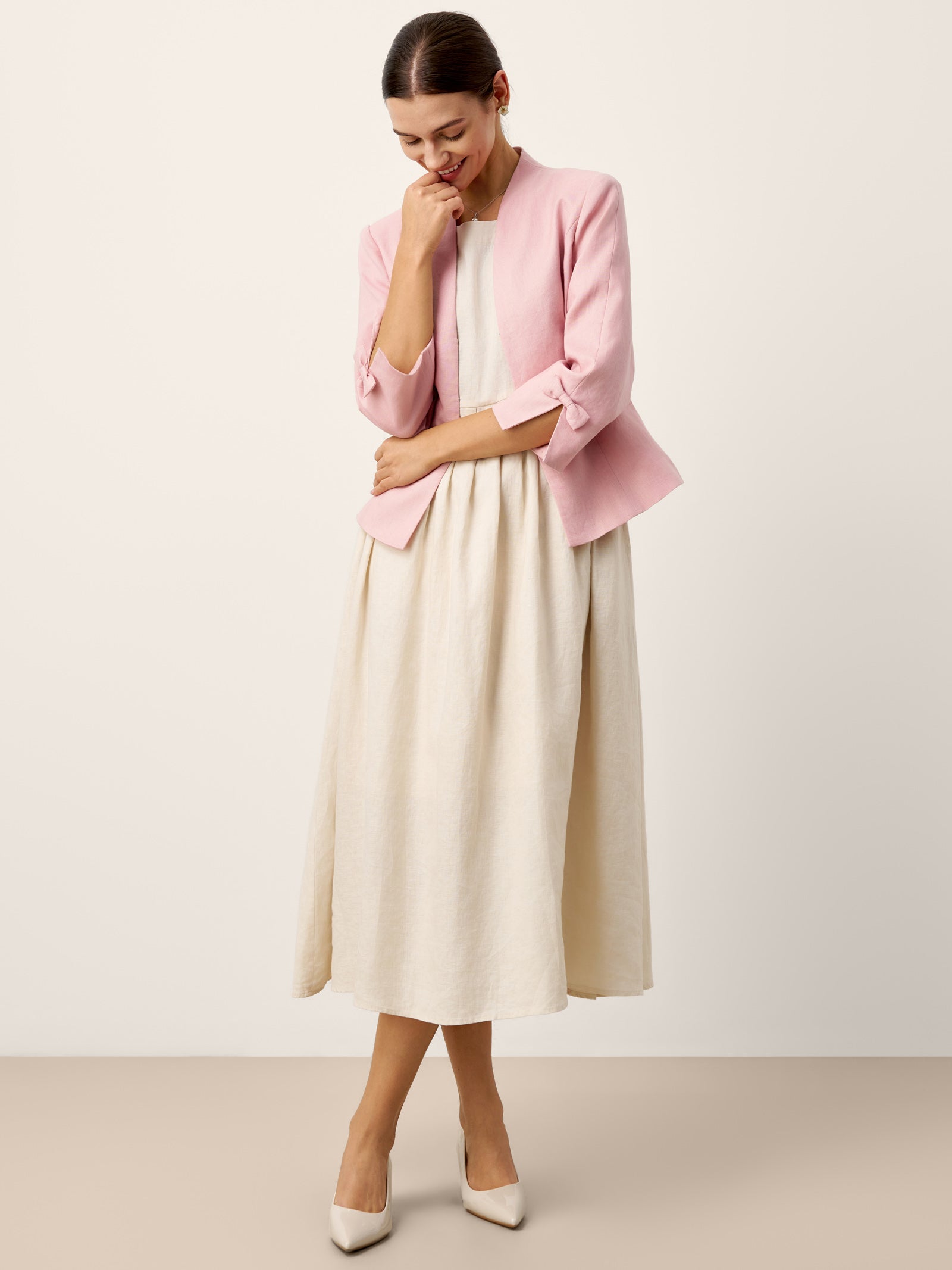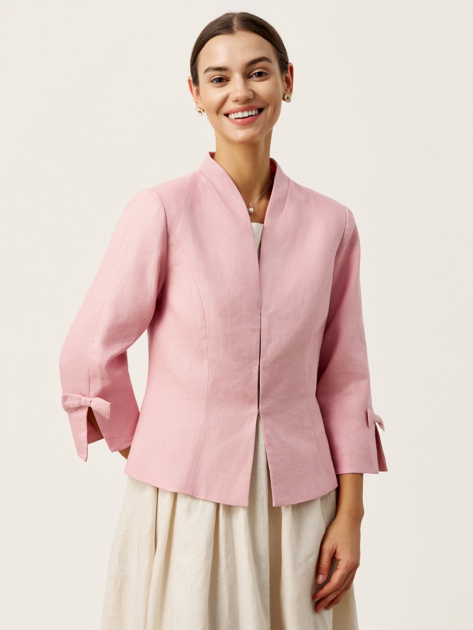 - Three-Quarter Bow Sleeves: Reveals wrists with a slit-and-bow detail for playful yet polished movement