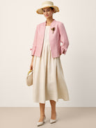 100% Linen Open Front Fitted Waist Jacket FINOLA