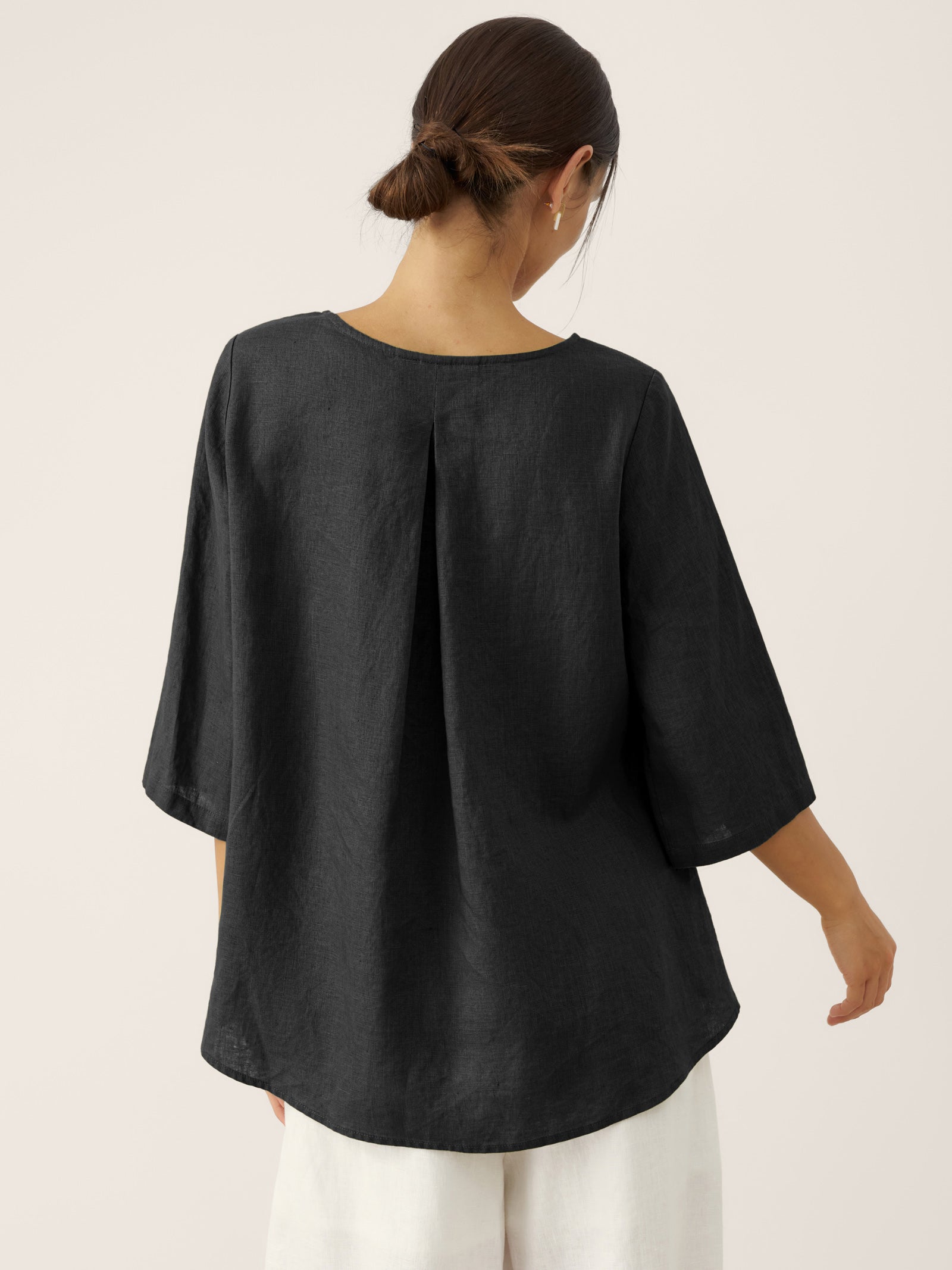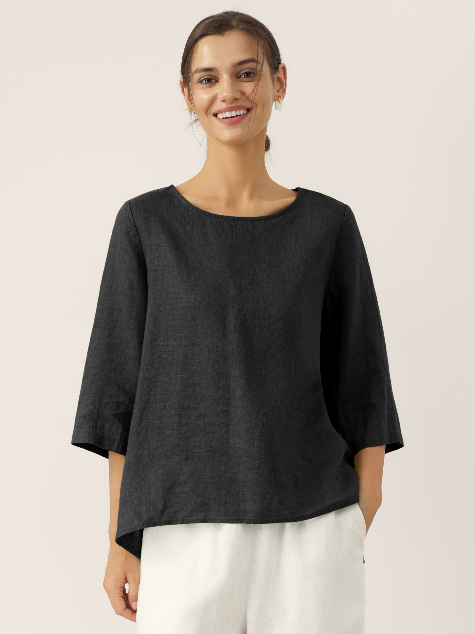 100% Linen Round Neck Asymmetrical Hem Top BRIANNA