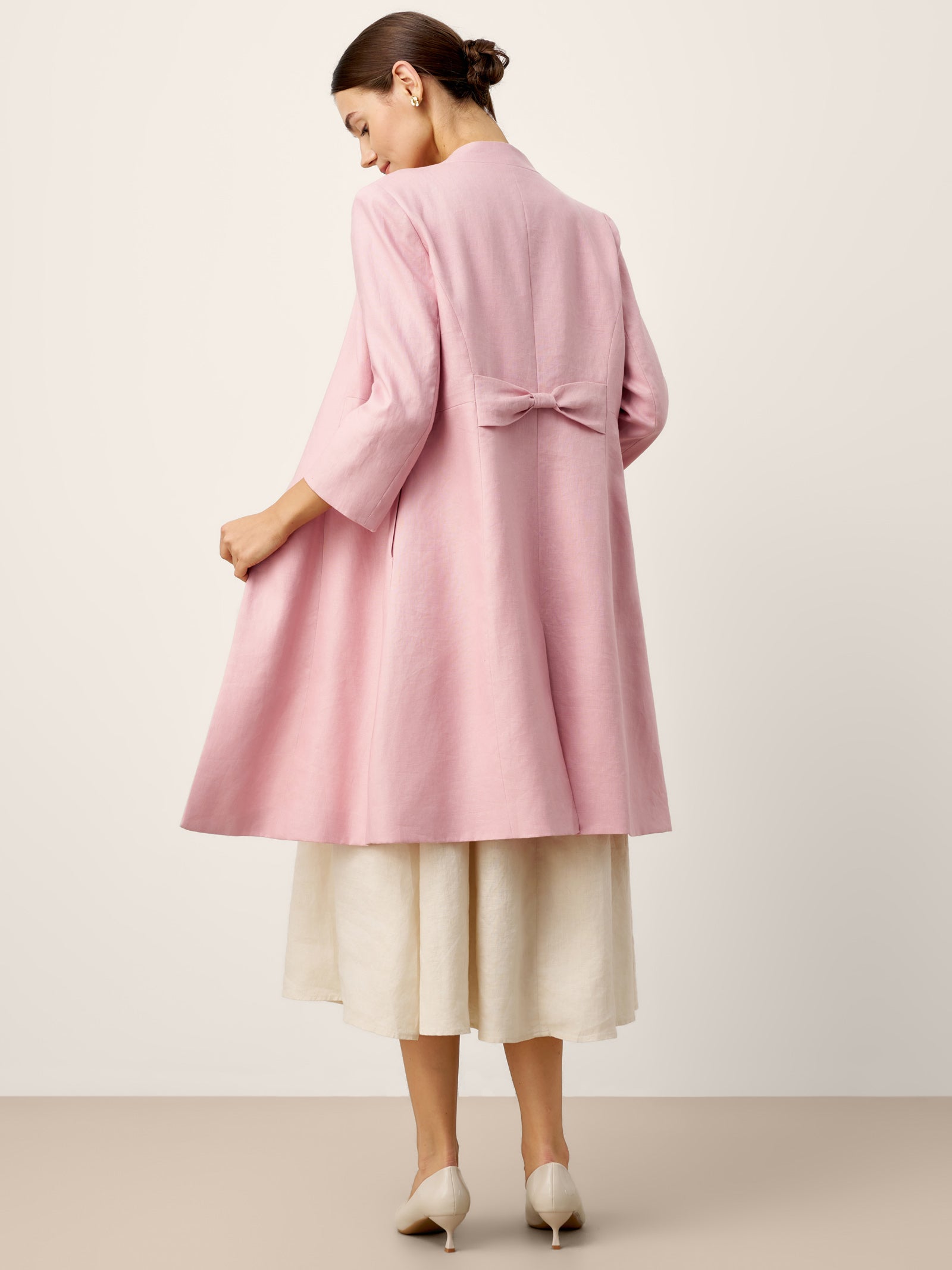 • Signature Back Bow Detail: Self-fabric bow at the back adds a refined feminine accent, elevating the minimalist design without overpowering the silhouette.