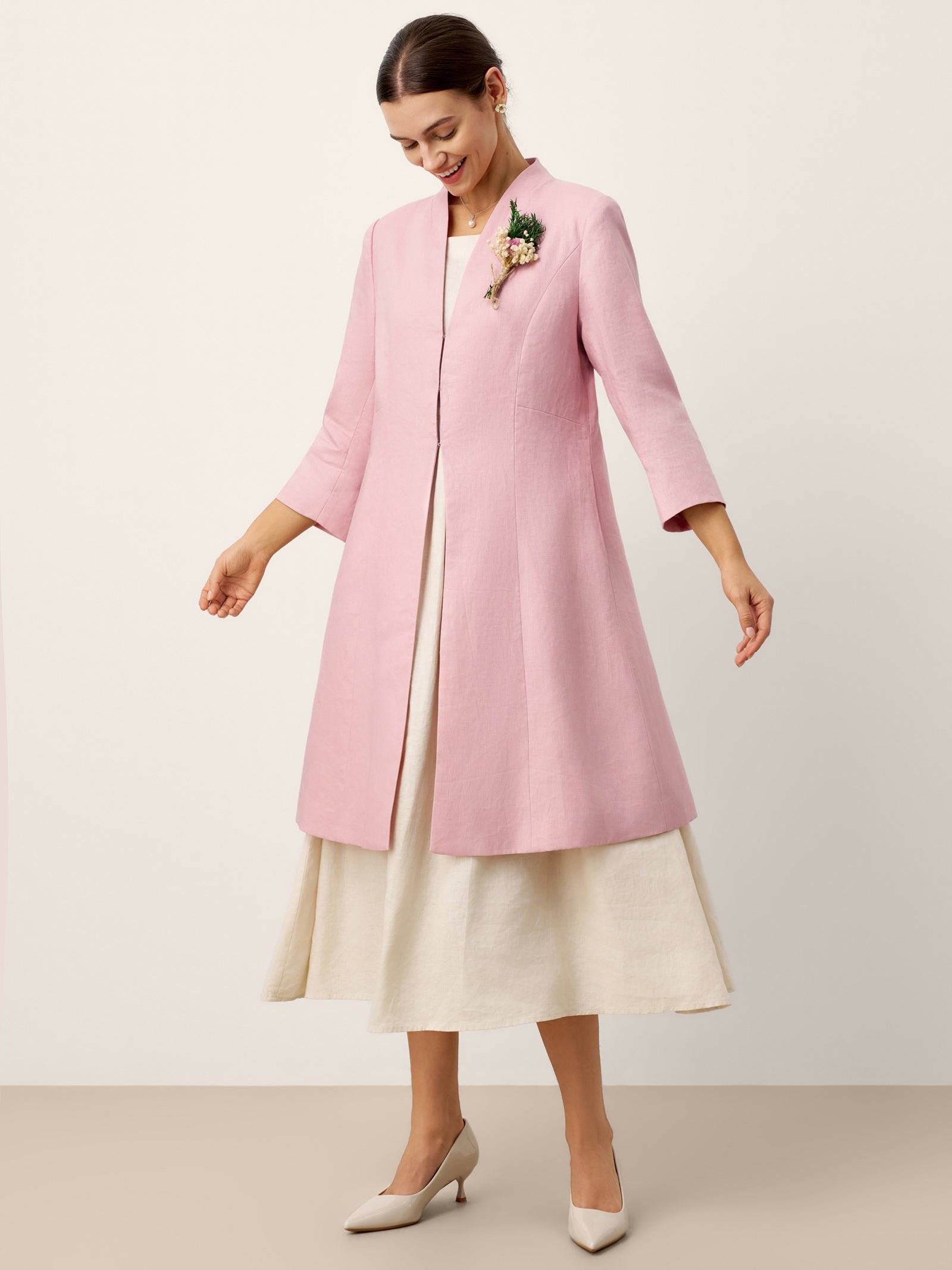 • Waist-Defining Tailoring: Subtle waist shaping enhances structure and prevents the long silhouette from appearing loose or heavy, flattering a wide range of body types.