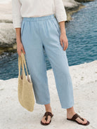 100% Linen Tapered Cropped Pull-On Trousers LORETTA