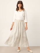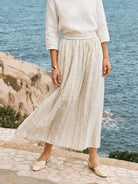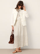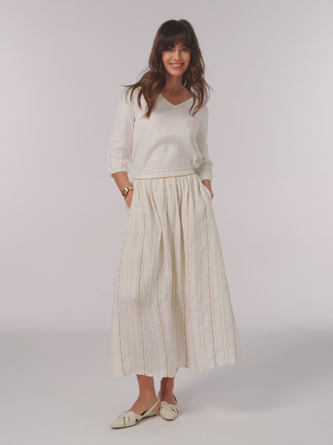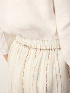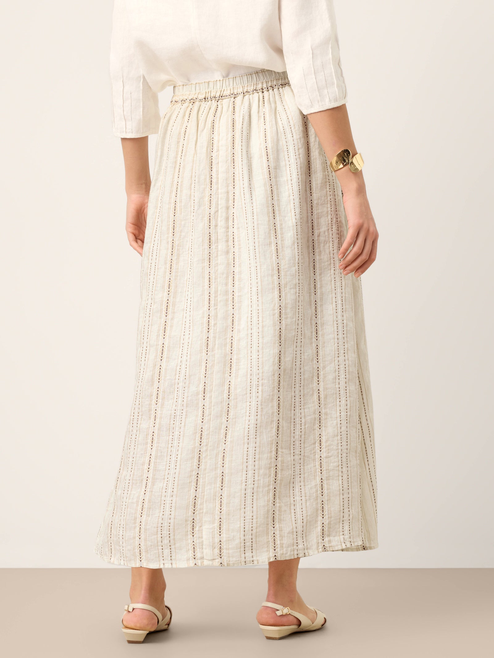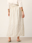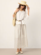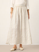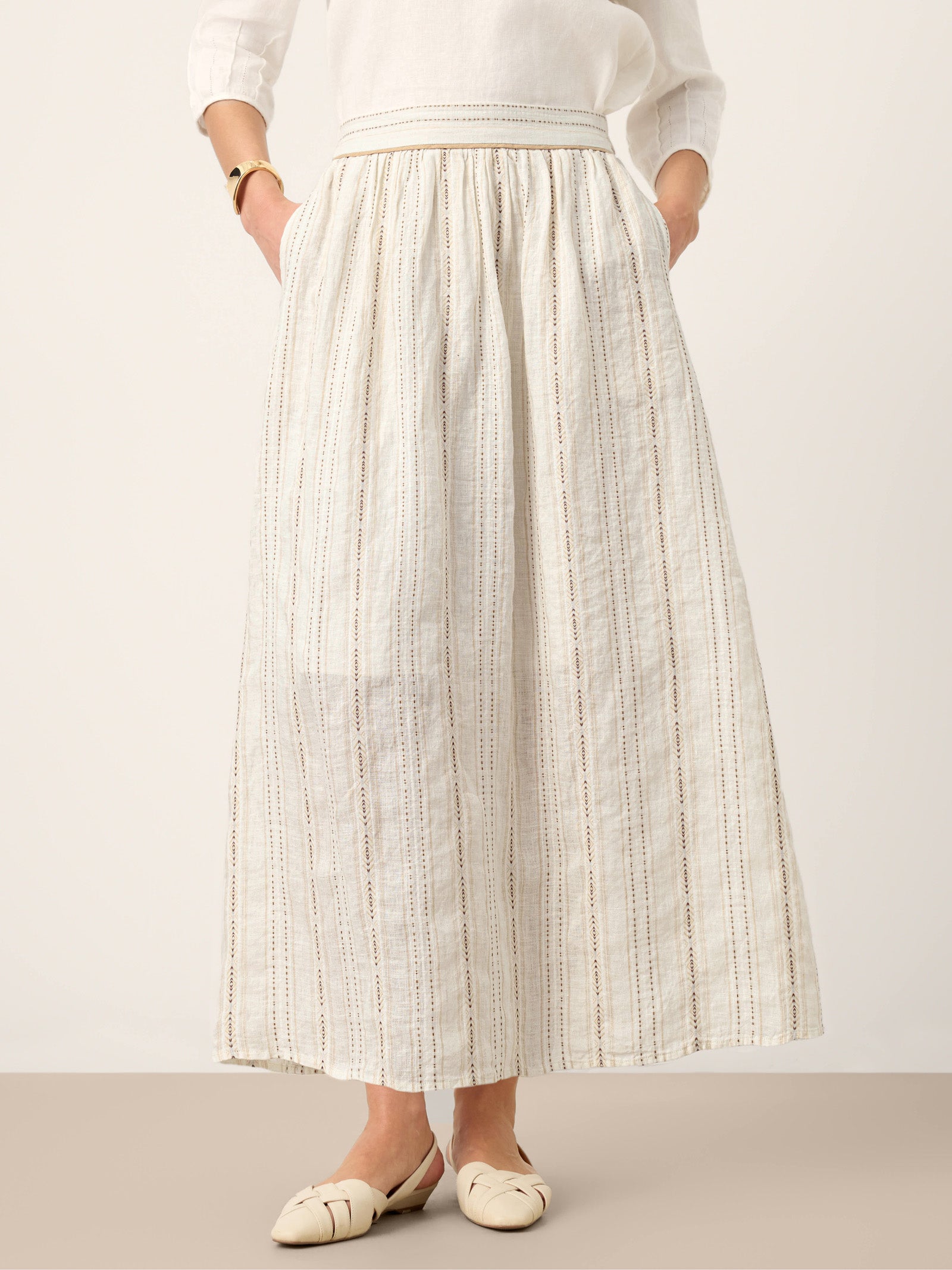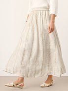 Embrace effortless elegance in our bohemian linen A-line skirt, where earthy oat stripes meet a whisper-soft contrast trim, creating a breezy silhouette that moves with ease and flatters natural curves in sunlit simplicity.