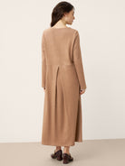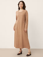 With a gently flowing A-line cut, this dress drapes naturally to flatter all body types, offering both comfort and a timeless shape.
