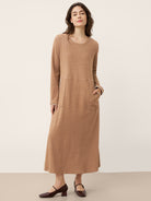 This linen-cotton maxi dress drapes like a gentle sigh, with colorblock pockets and waist-seam sculpting that transforms simplicity into poetry—each frayed edge and rolled hem whispering of sun-drenched adventures and unhurried moments.