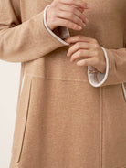 The round neckline and long sleeves offer a versatile look that softly frames the neck and shoulders, finished with cuffs that echo the pocket details.