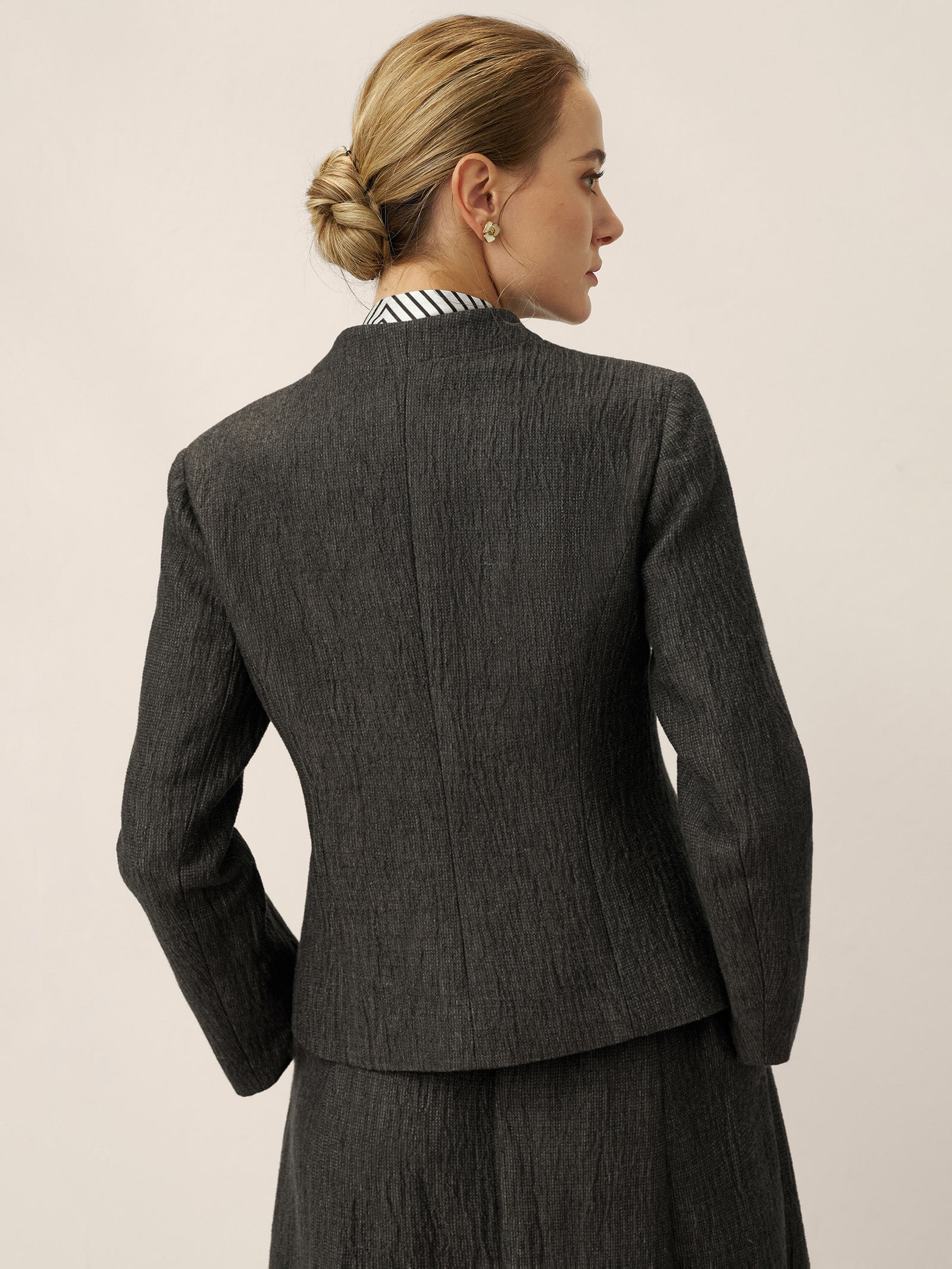 Linen Mandarin Collar Button-Up Shirt Jacket KIMBERLY