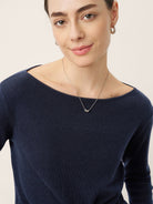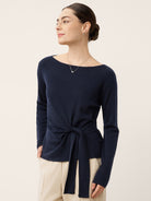 Merino Wool Belted Waist Boat Neck Top NATALIA