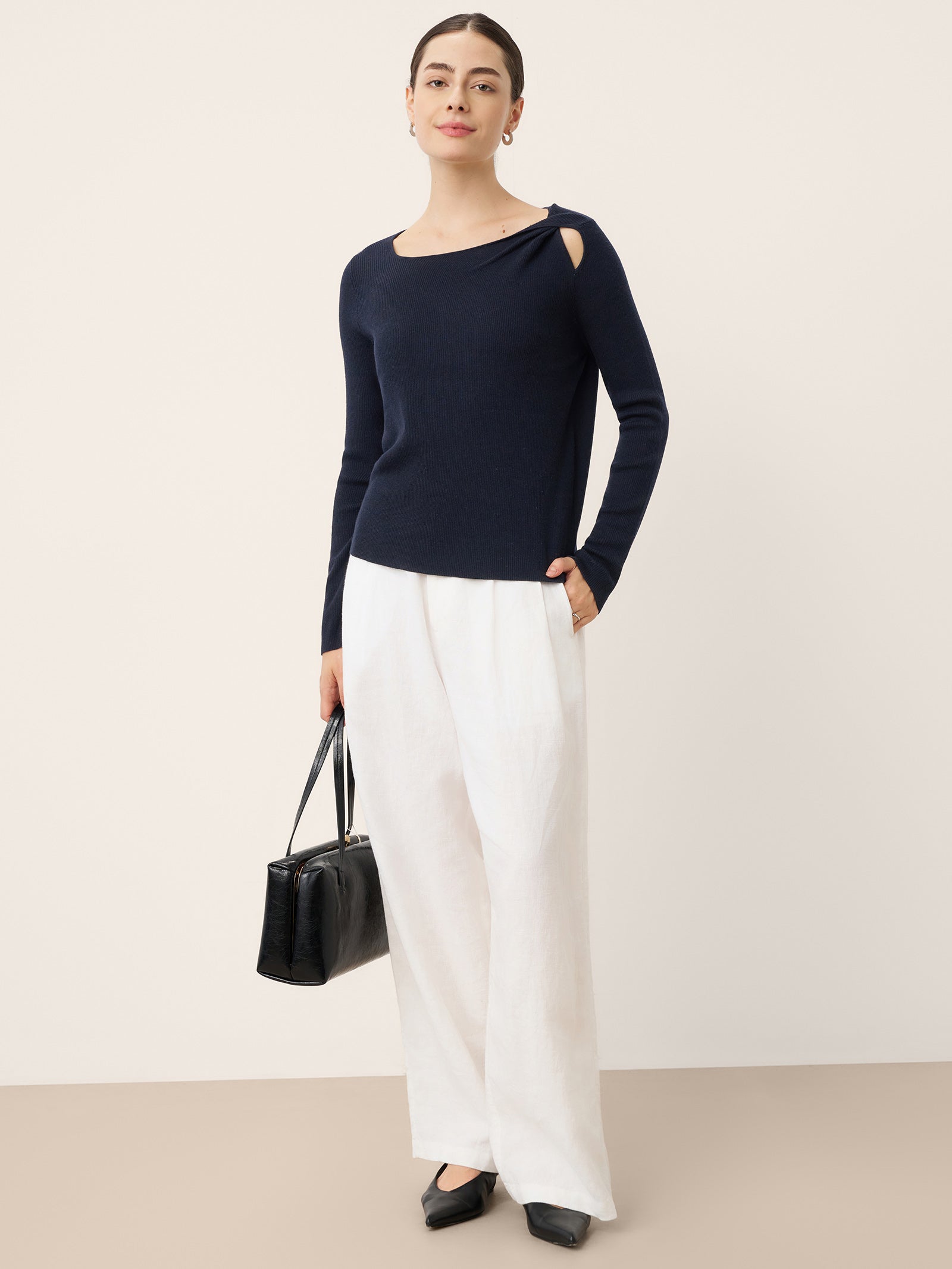 - Flattering Boat Neckline: Frame the collarbone and shoulders elegantly with a crisp, elongating boat neck cut.