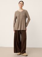 A carefully balanced blend of premium fibers—cashmere, TENCEL™, and modal—creates a cloud-like fabric that feels soft, smooth, and effortless against the skin.